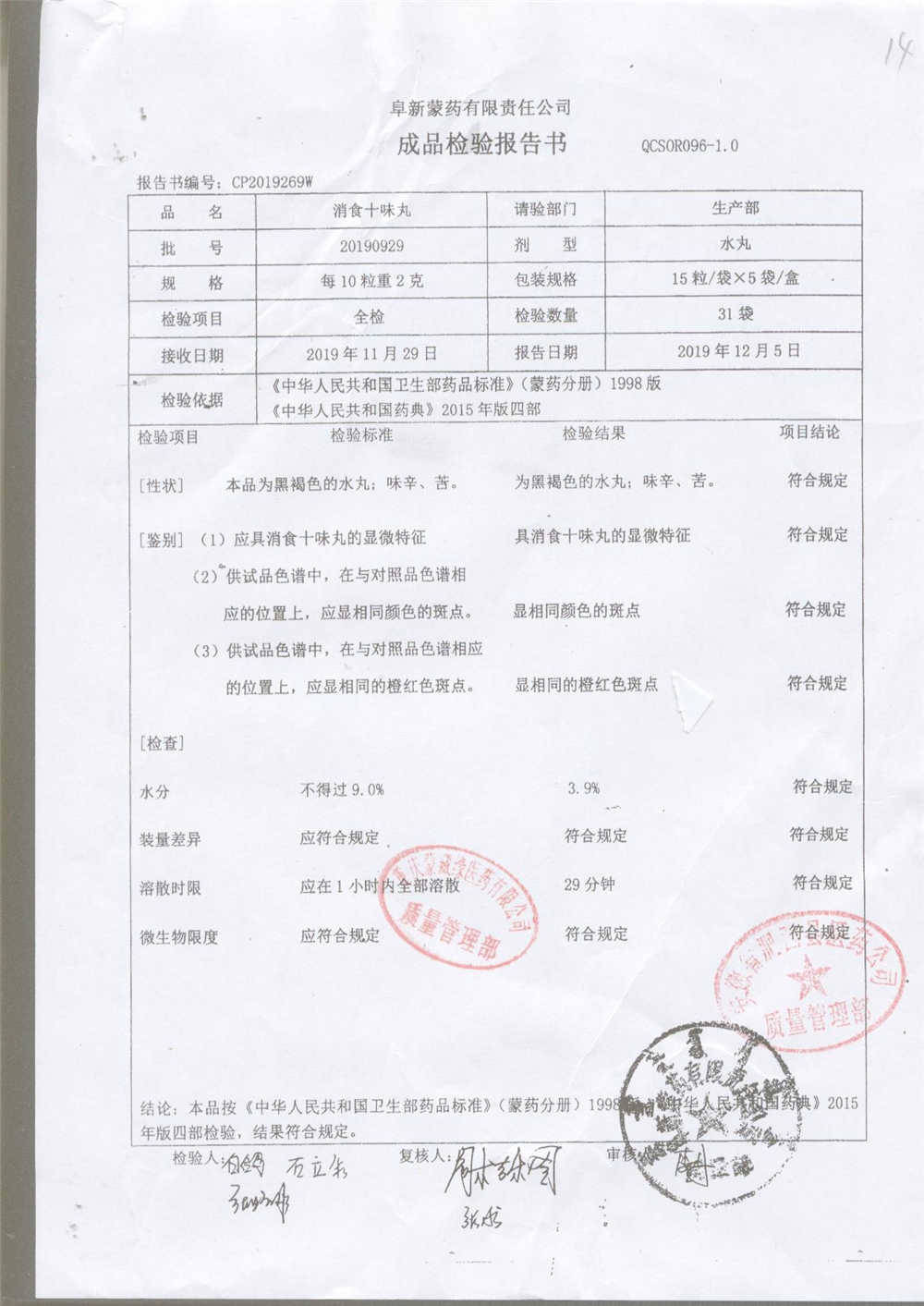 药检报告