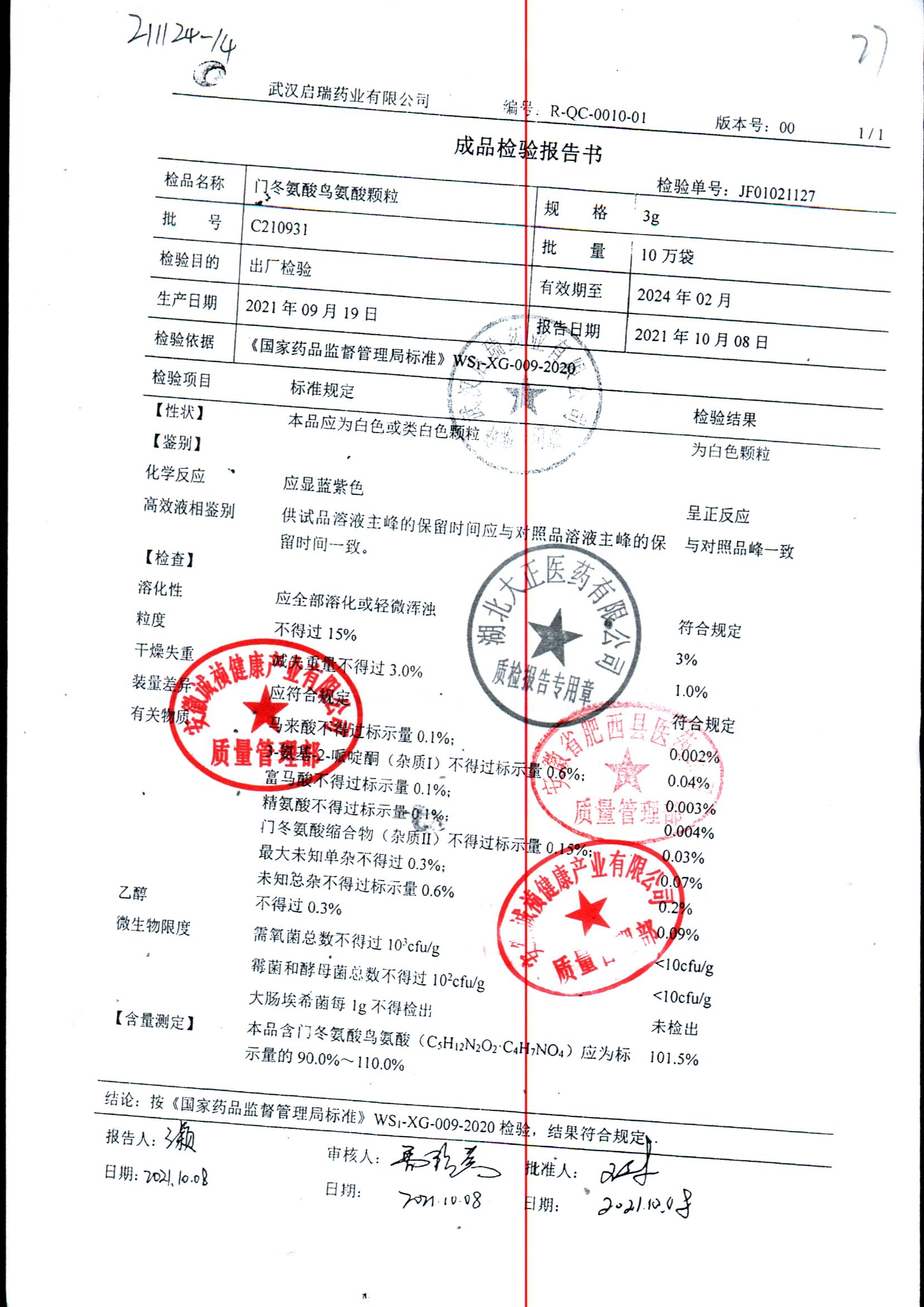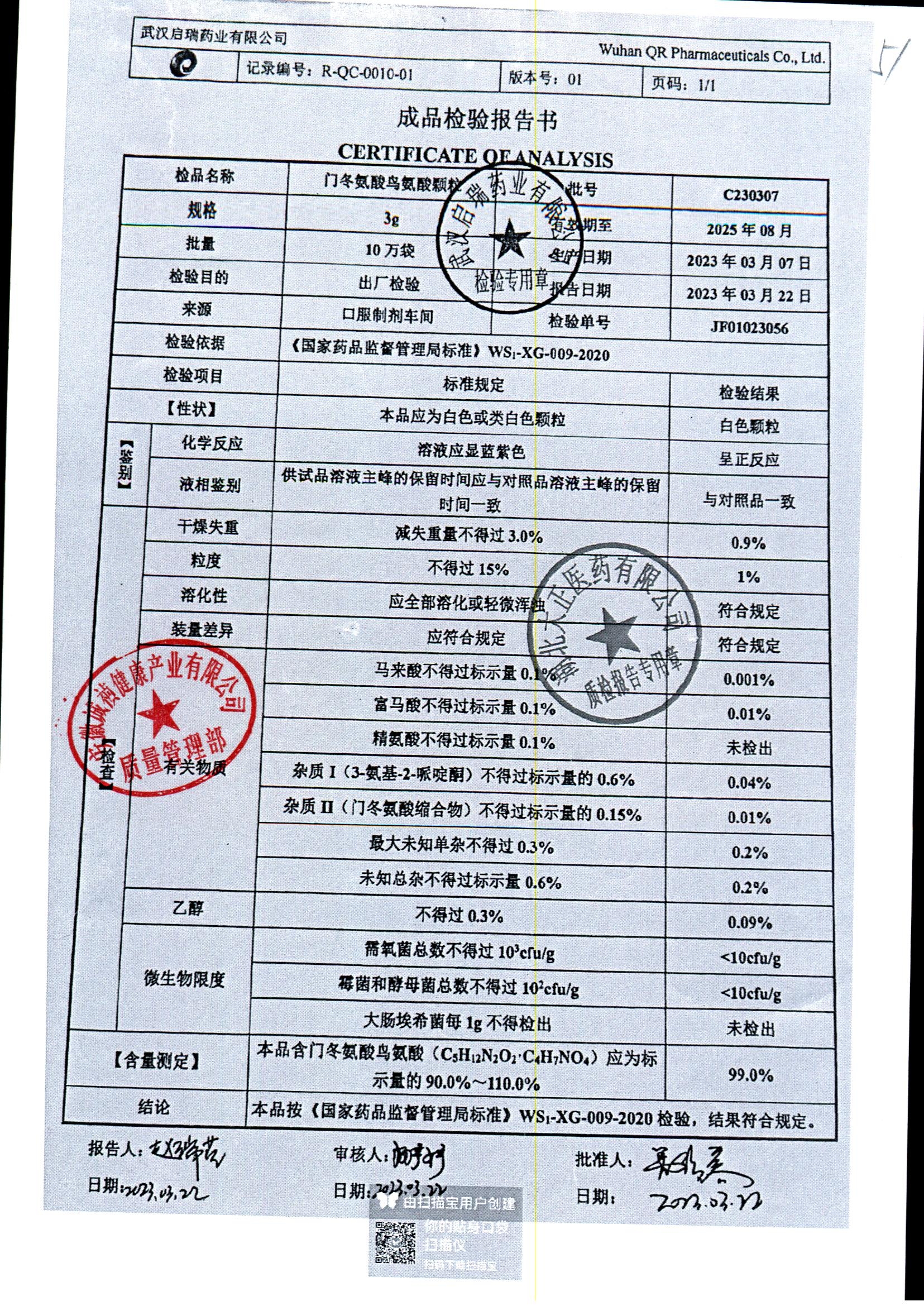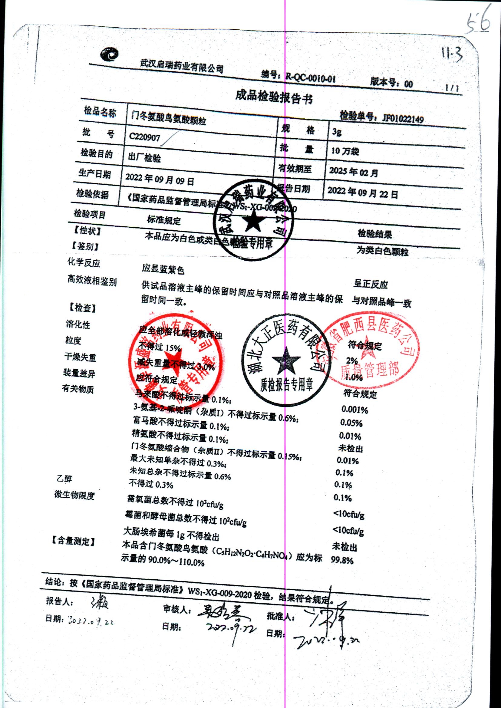 | 门冬氨酸鸟氨酸颗粒 | 3g*10袋 | C221019 | 查看详情 |