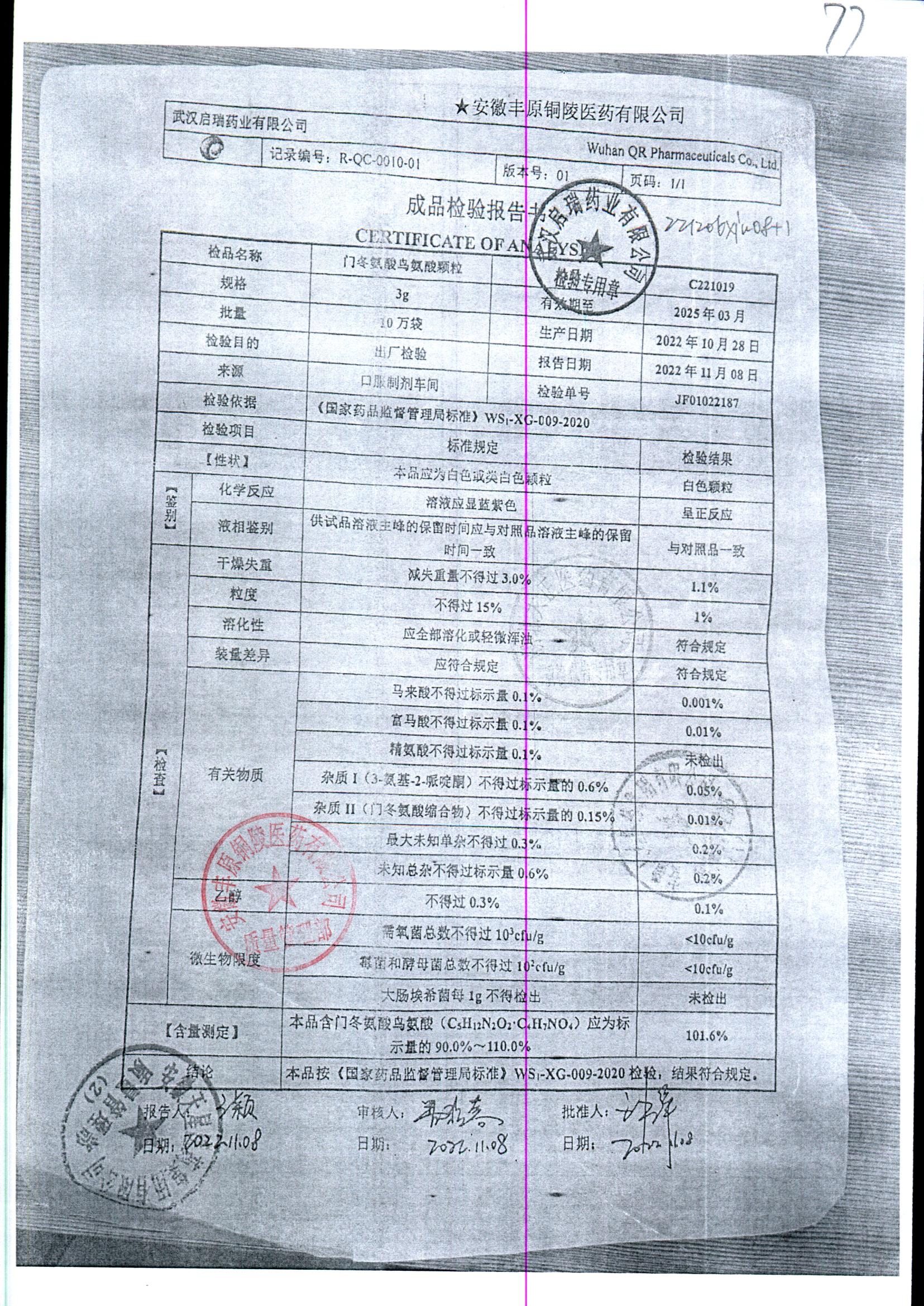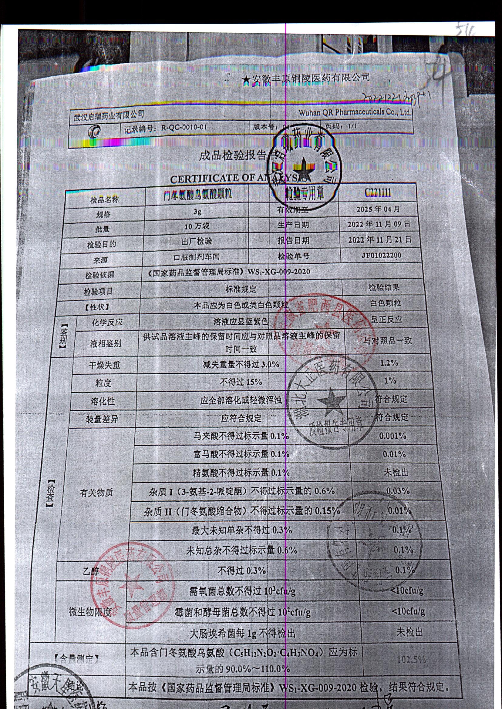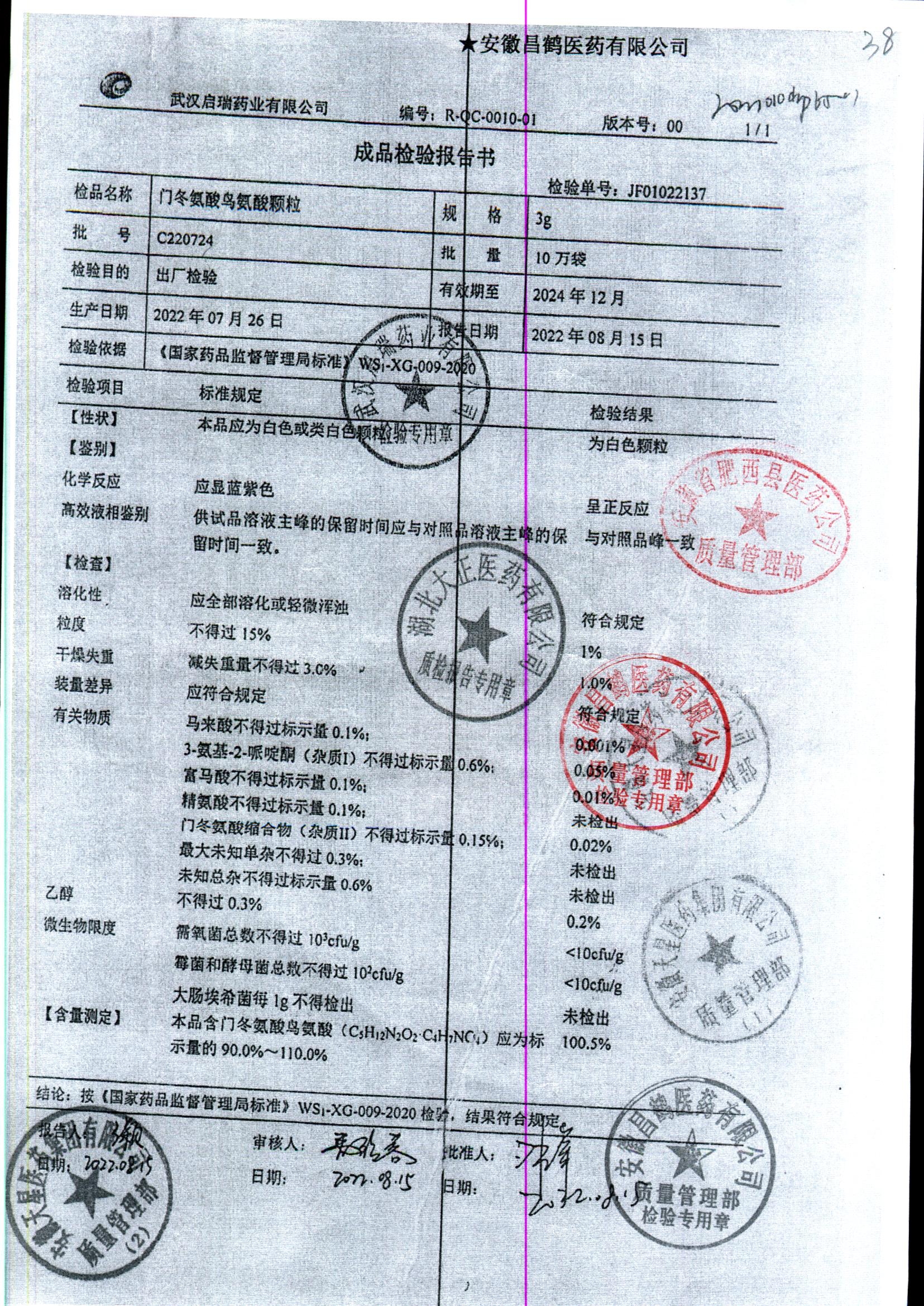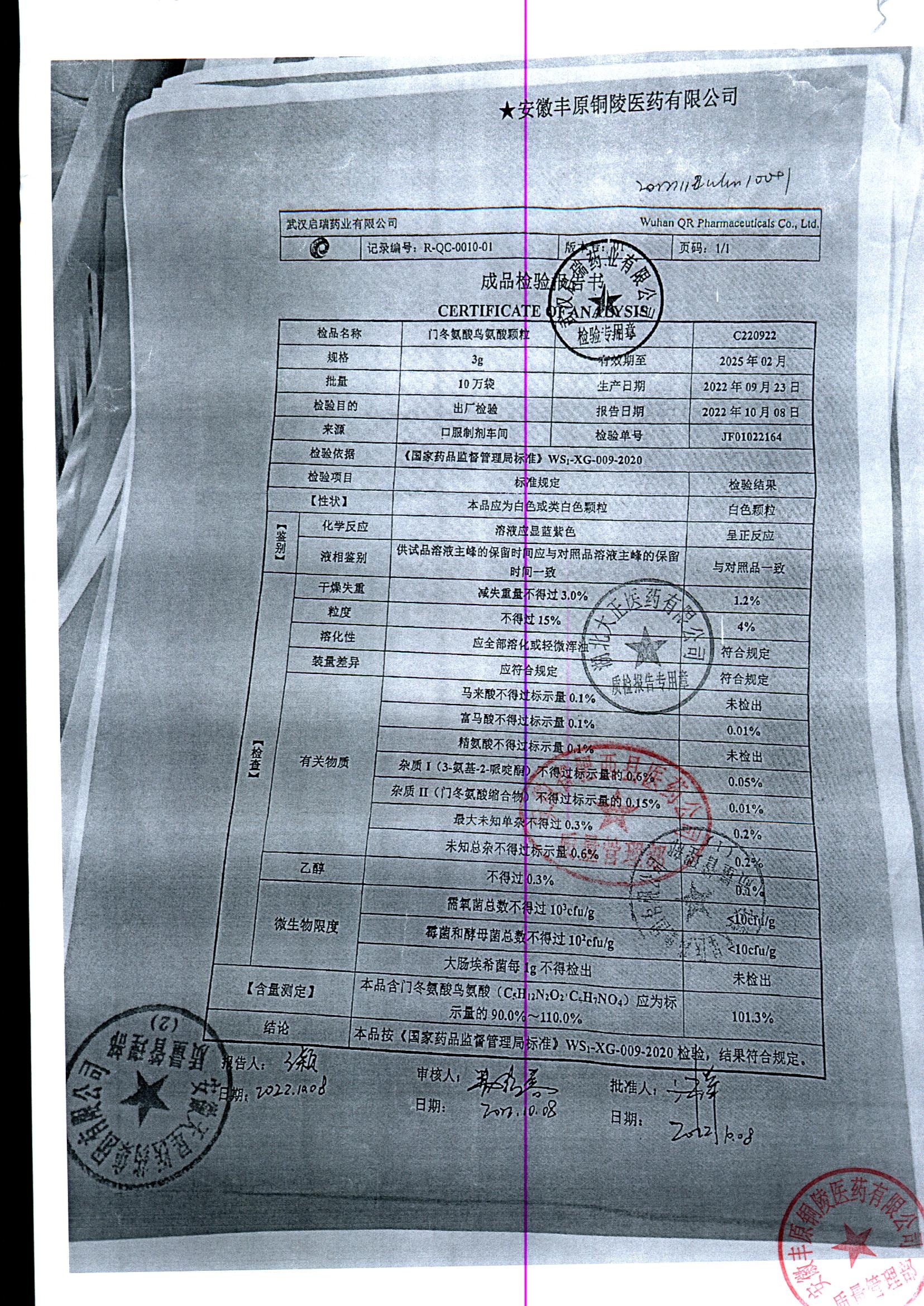| 门冬氨酸鸟氨酸颗粒 | 3g*10袋 | C221019 | 查看详情 |