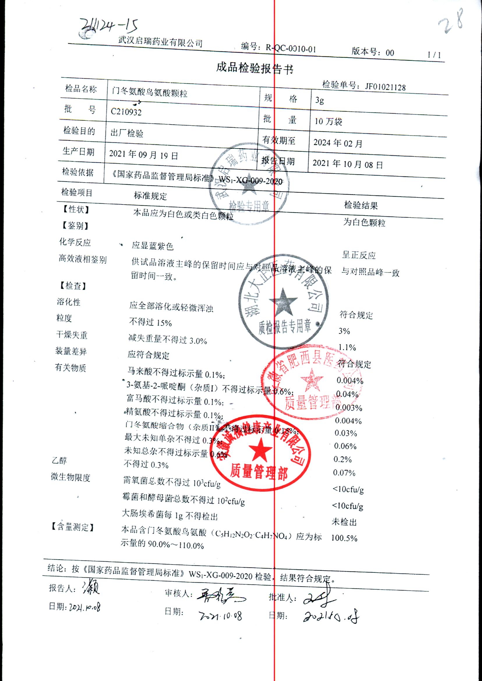 | 门冬氨酸鸟氨酸颗粒 | 3g*10袋 | C201231 | 查看详情 |
