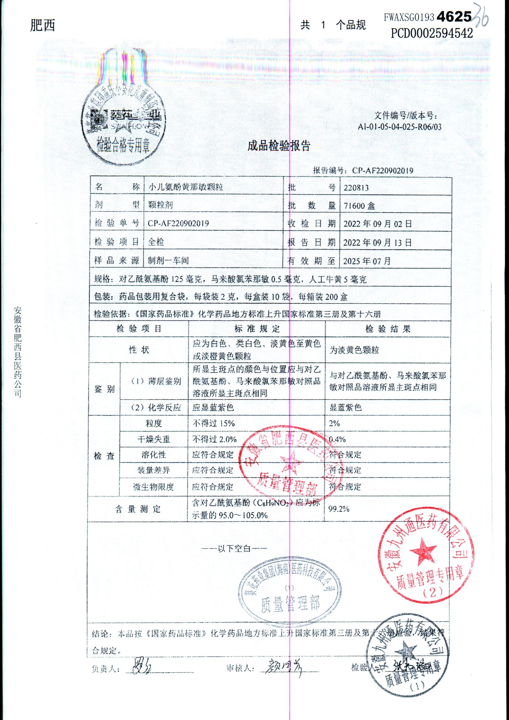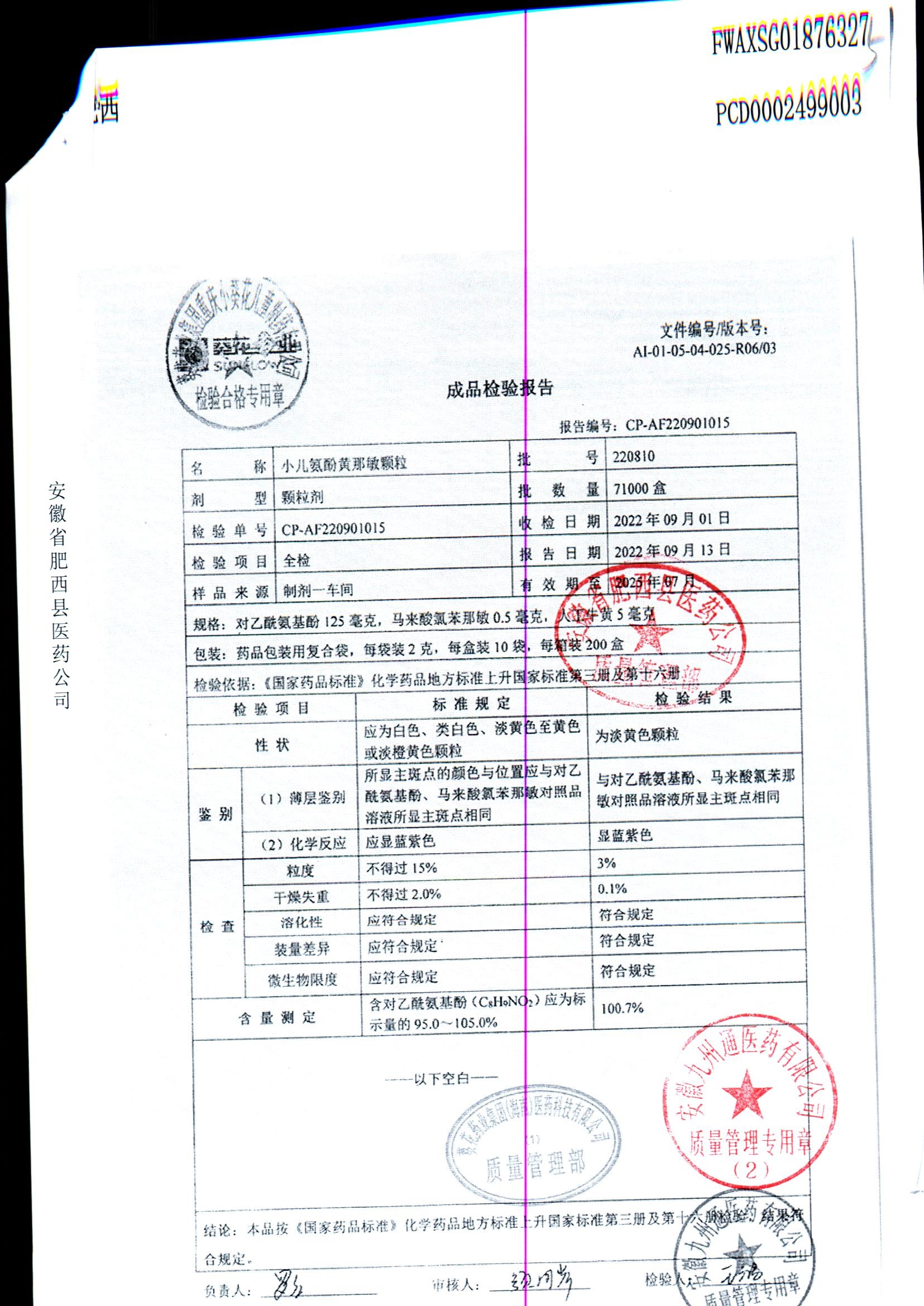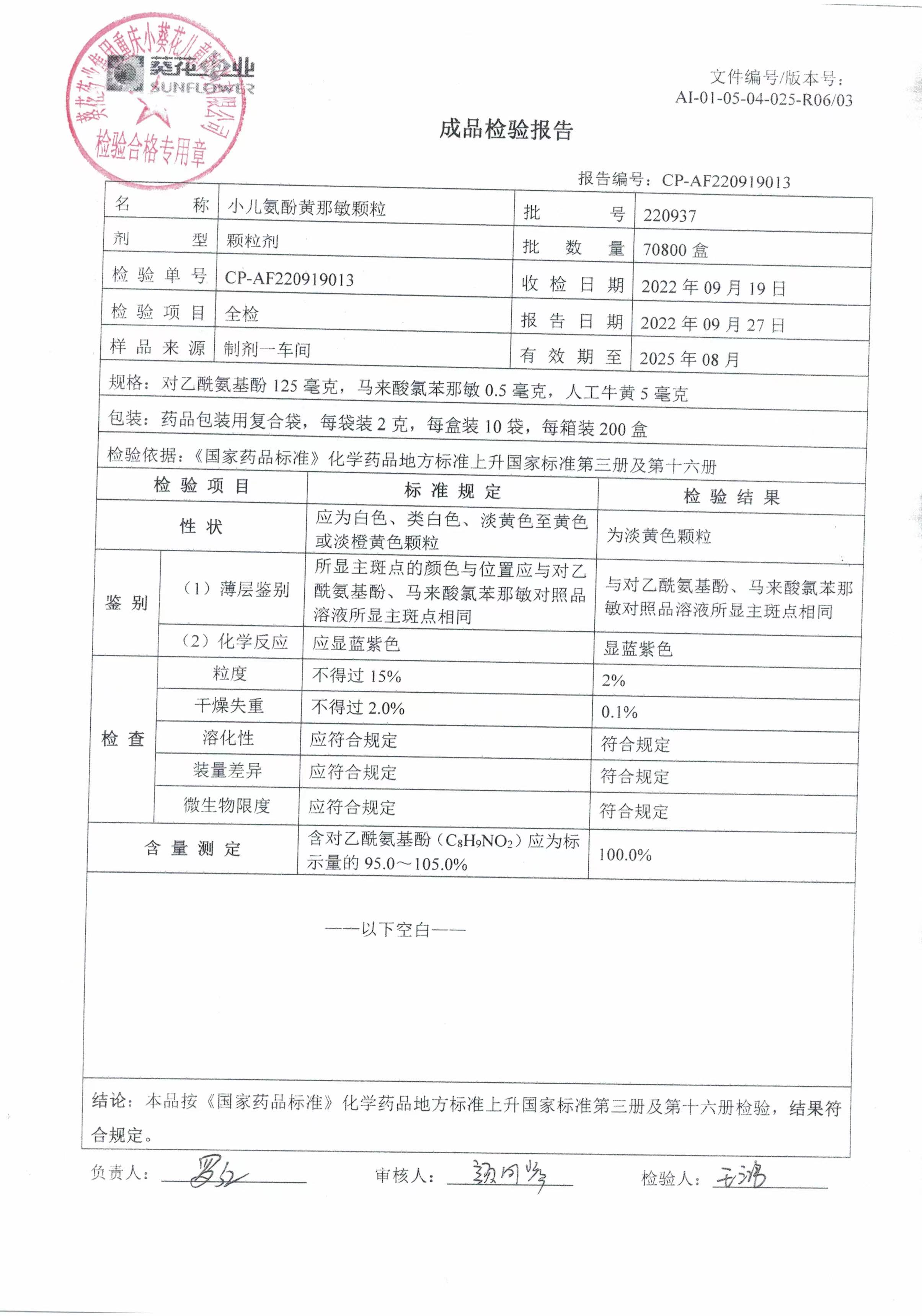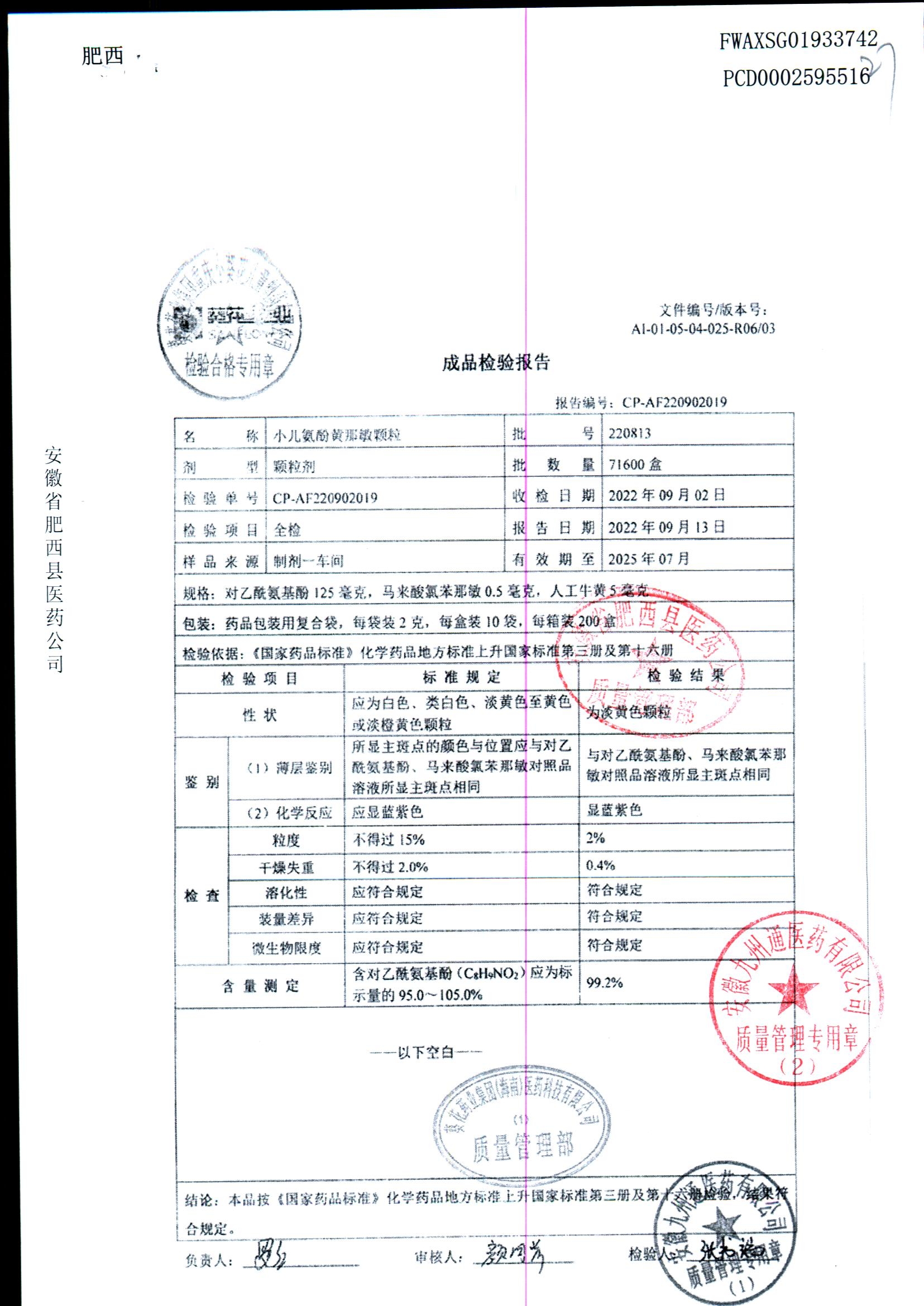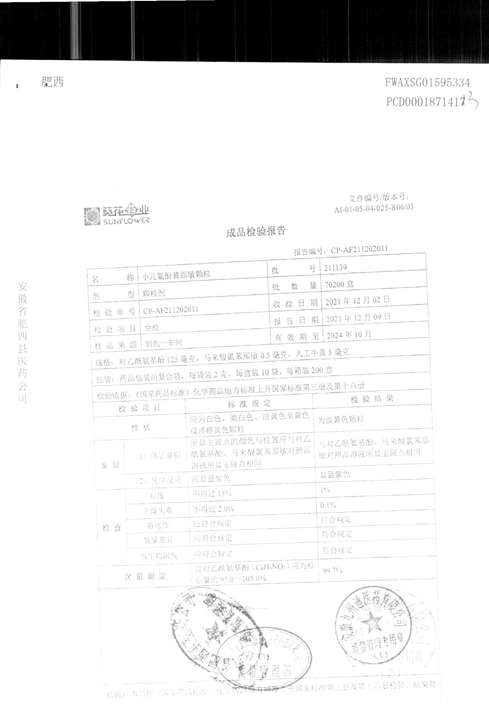 | 小儿氨酚黄那敏颗粒 | 2g*10袋 | 210907 | 查看详情 |
