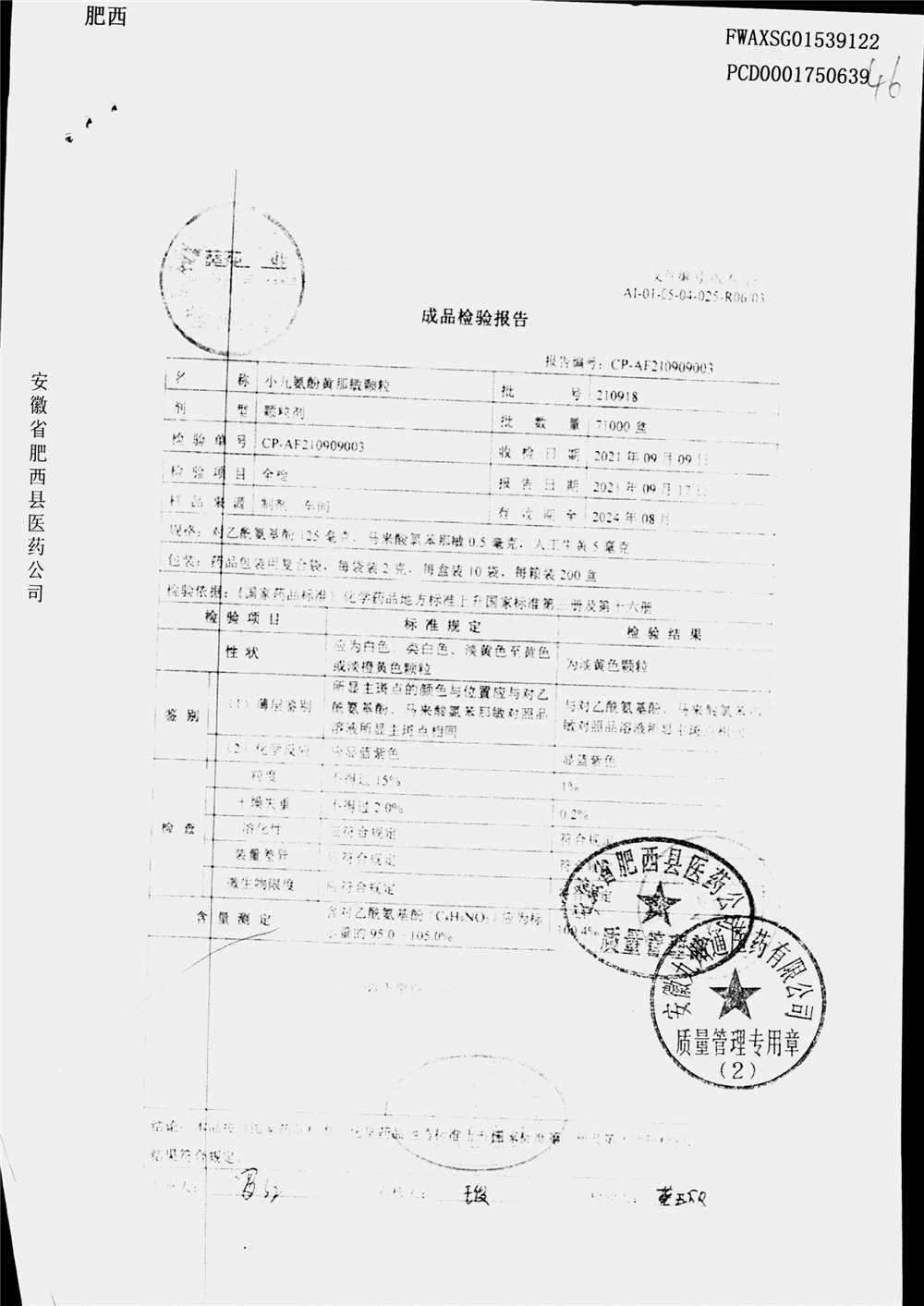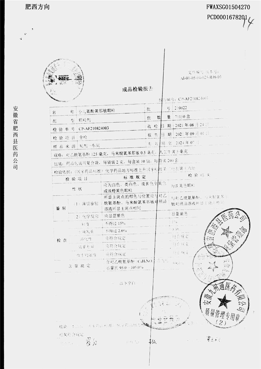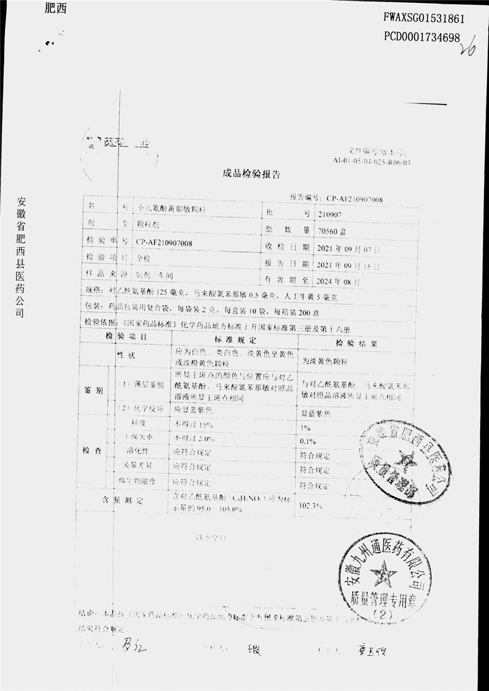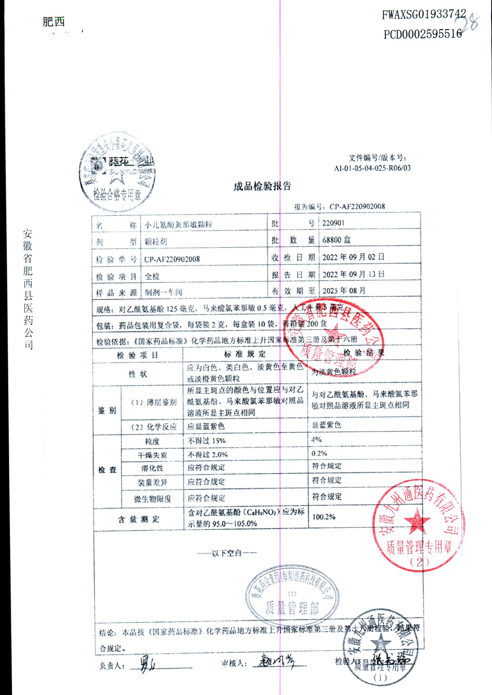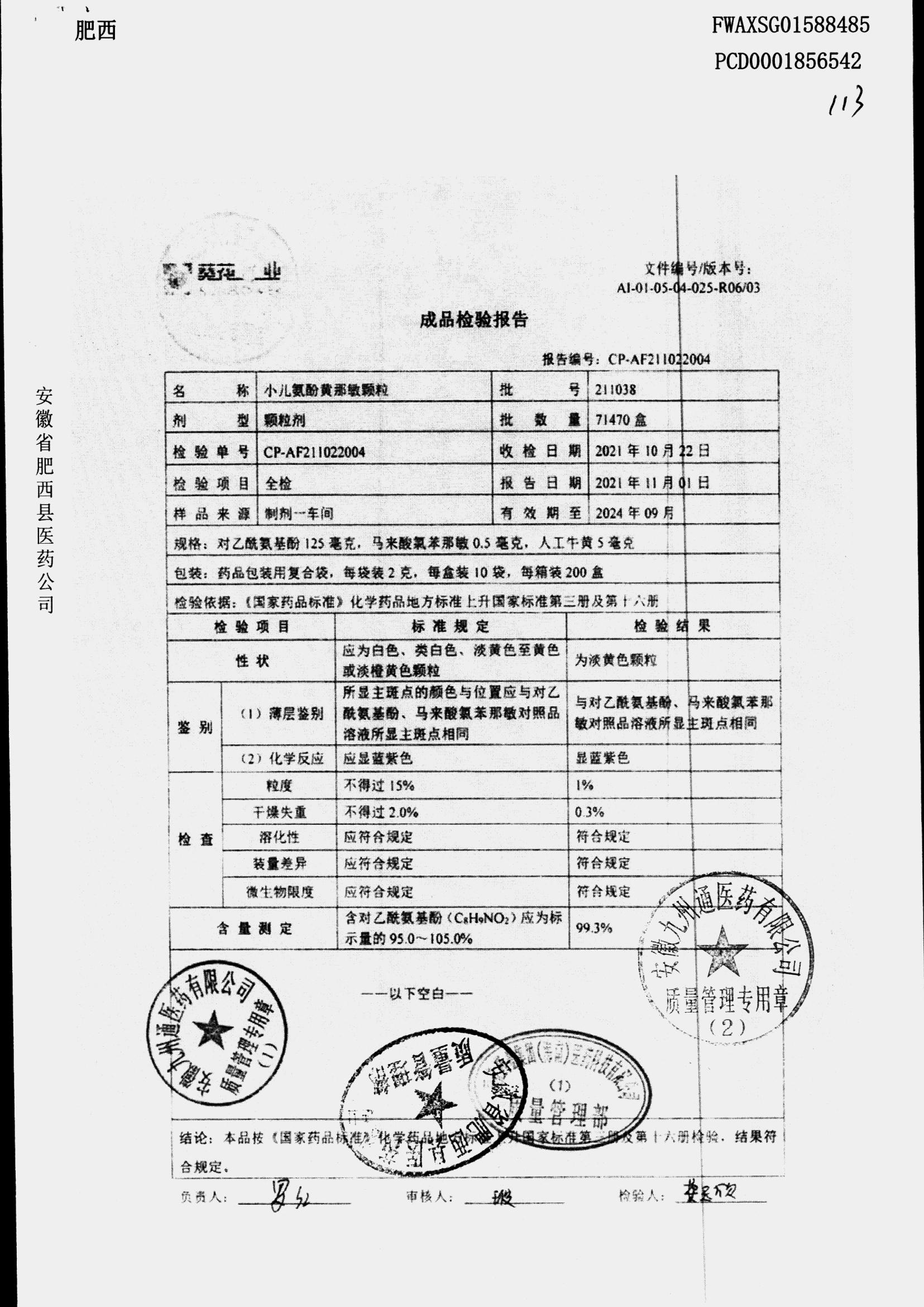 | 小儿氨酚黄那敏颗粒 | 2g*10袋 | 210907 | 查看详情 |