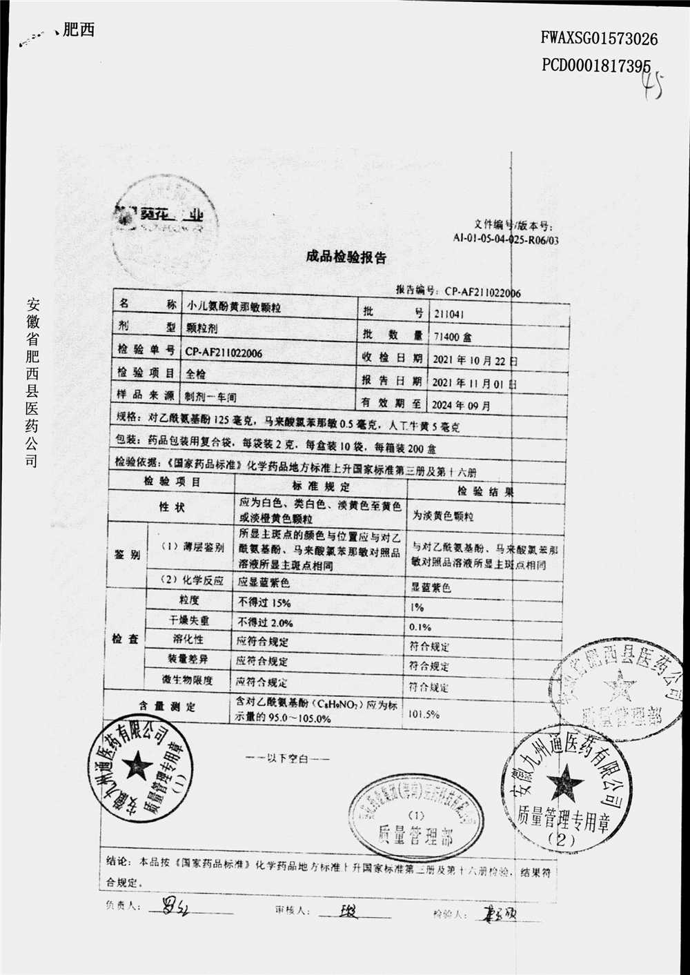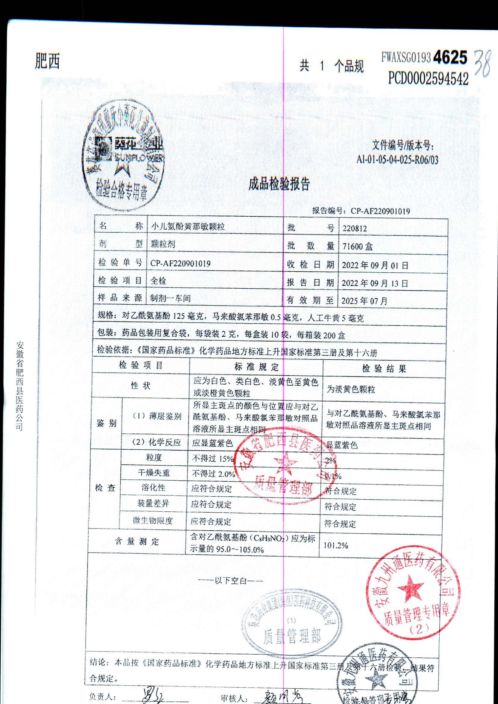 | 小儿氨酚黄那敏颗粒 | 2g*10袋 | 210919 | 查看详情 |