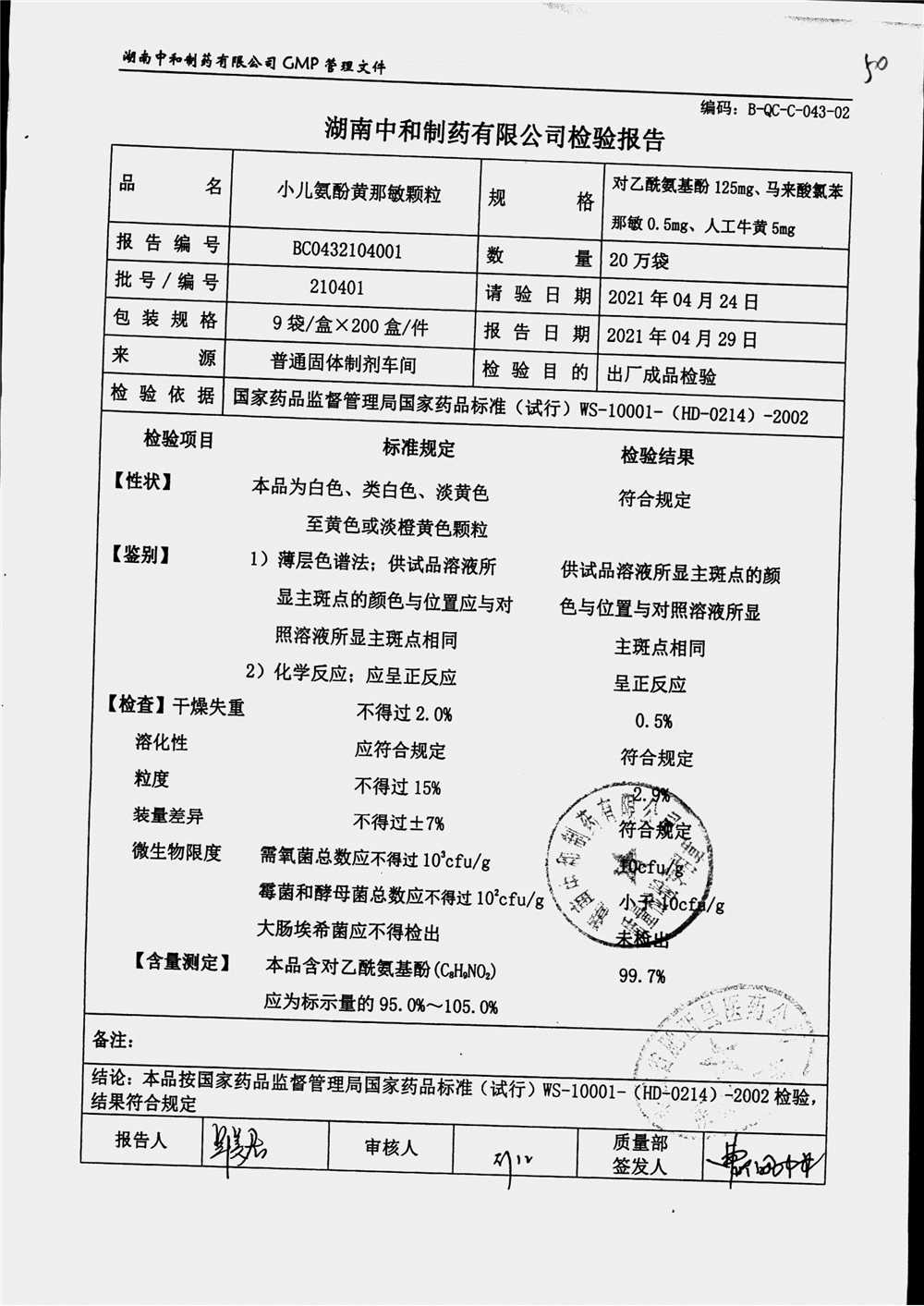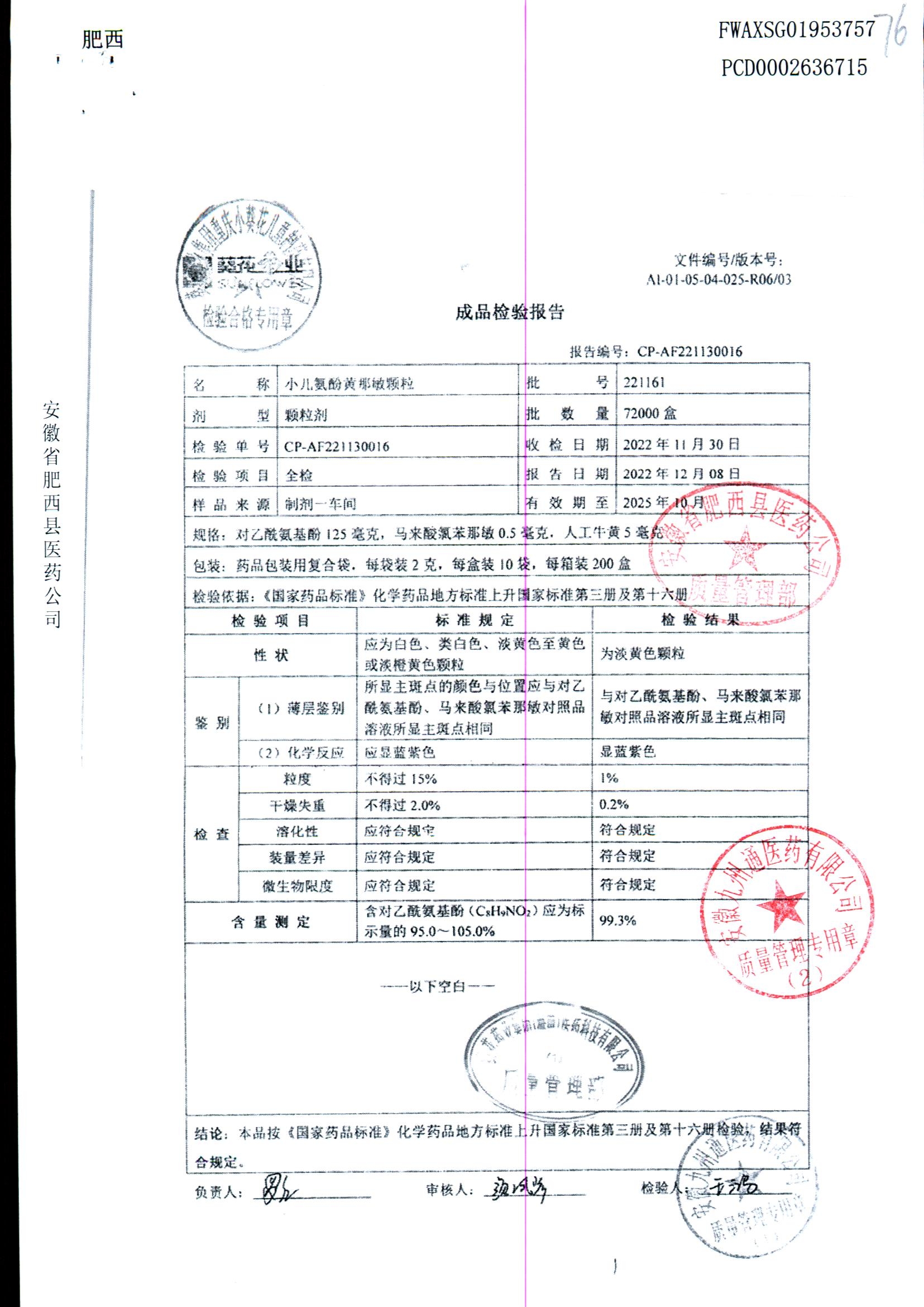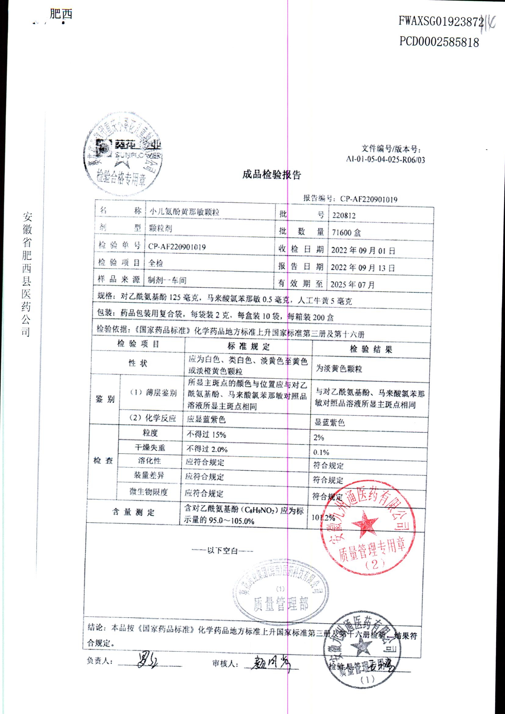 | 小儿氨酚黄那敏颗粒 | 2g*10袋 | 210816 | 查看详情 |