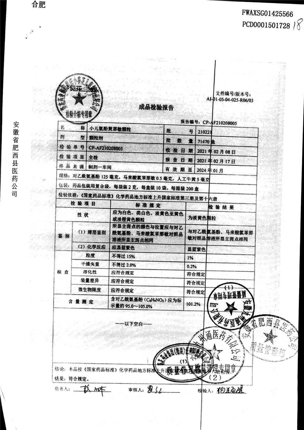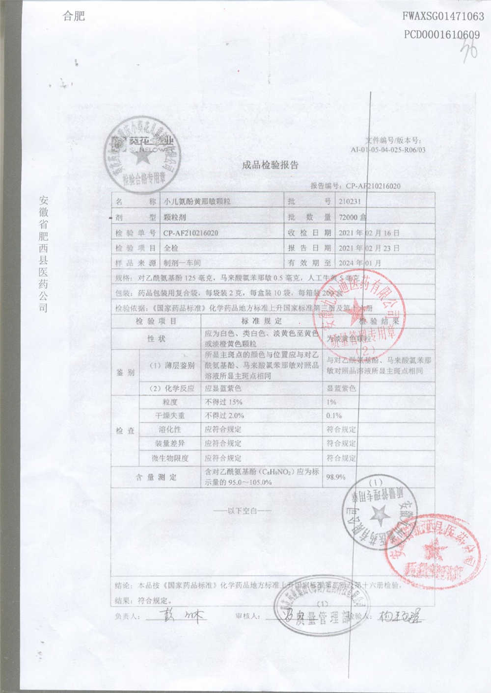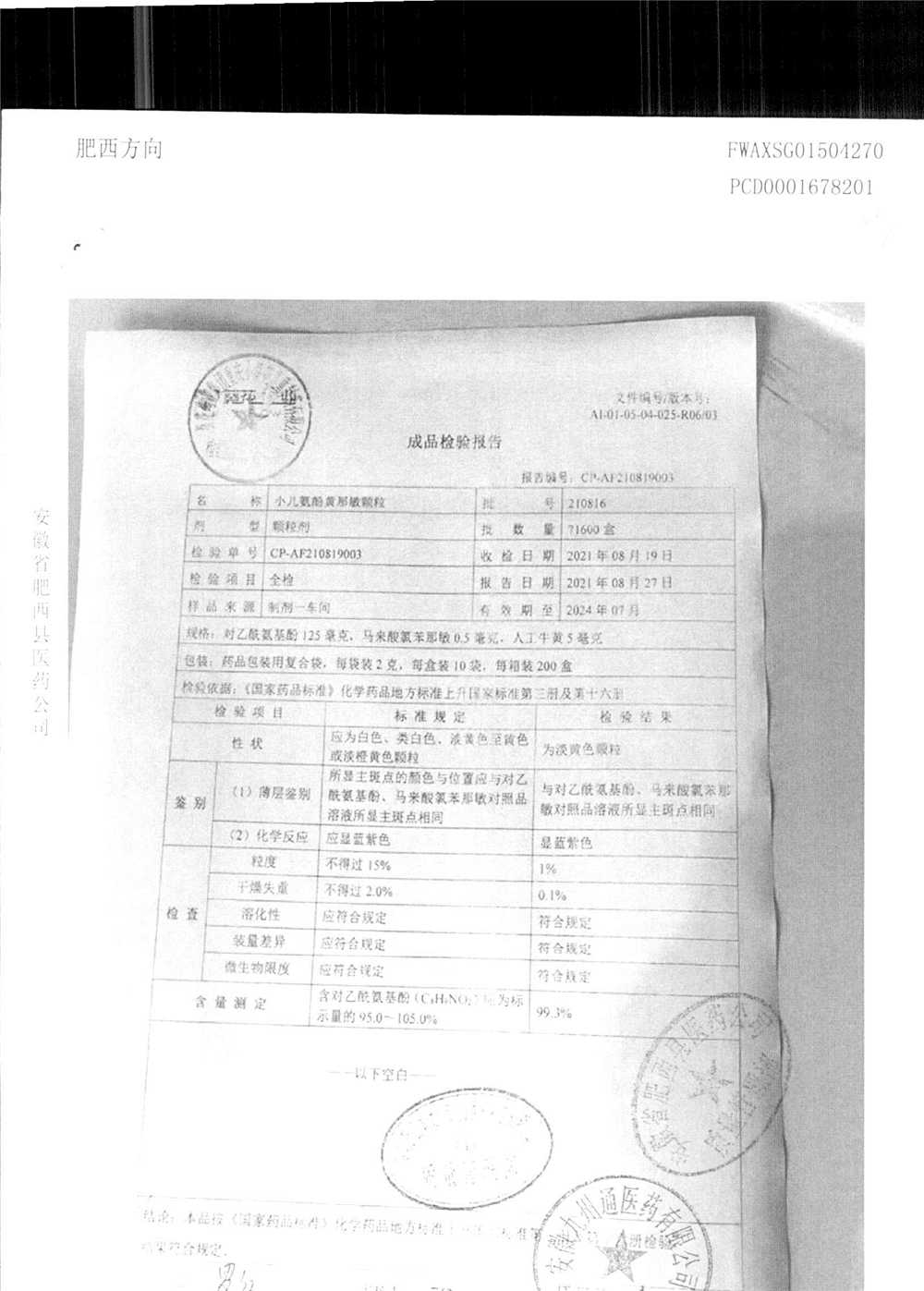 | 小儿氨酚黄那敏颗粒 | 2g*10袋 | 210816 | 查看详情 |