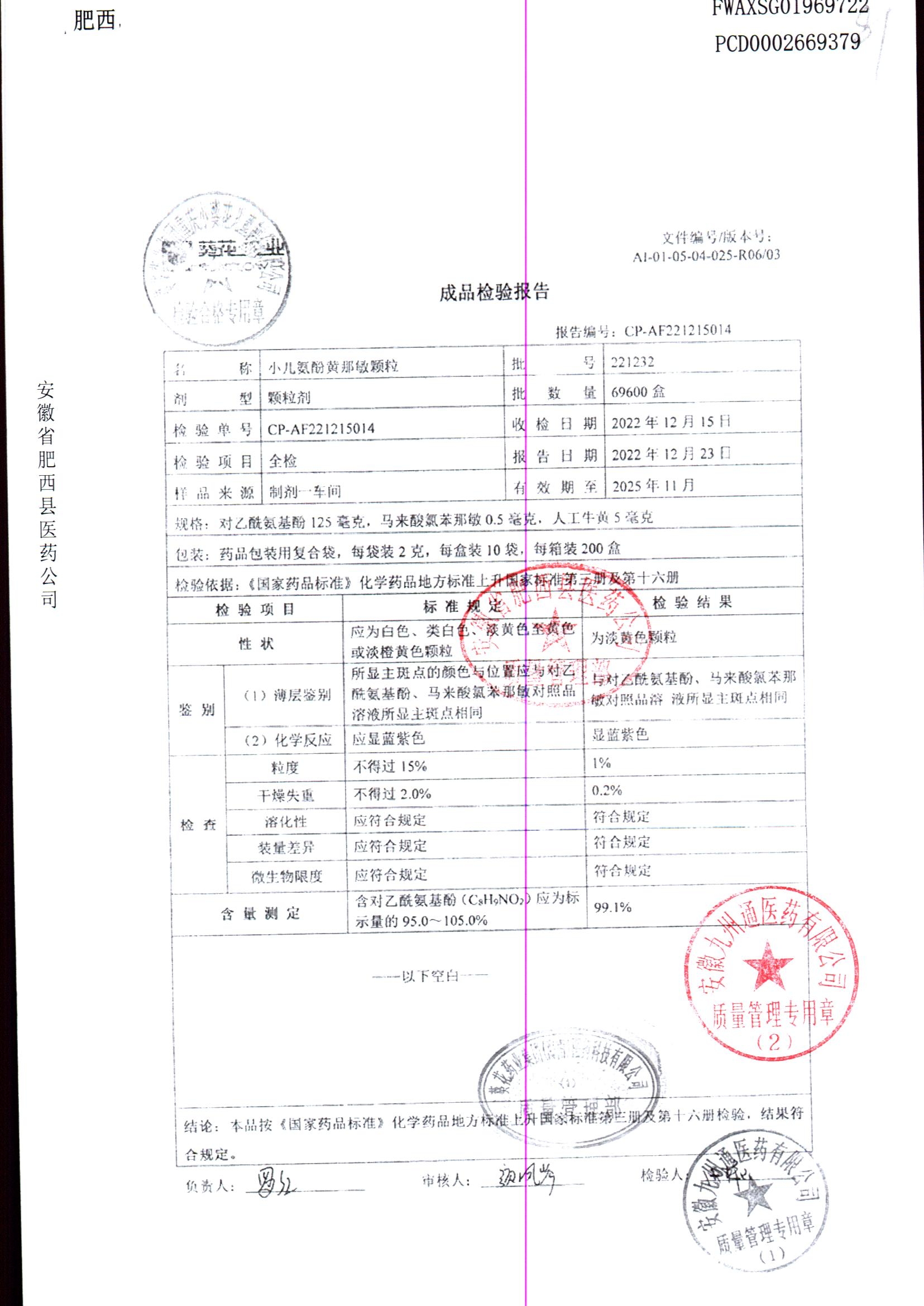 | 小儿氨酚黄那敏颗粒 | 2g*10袋 | 220812 | 查看详情 |