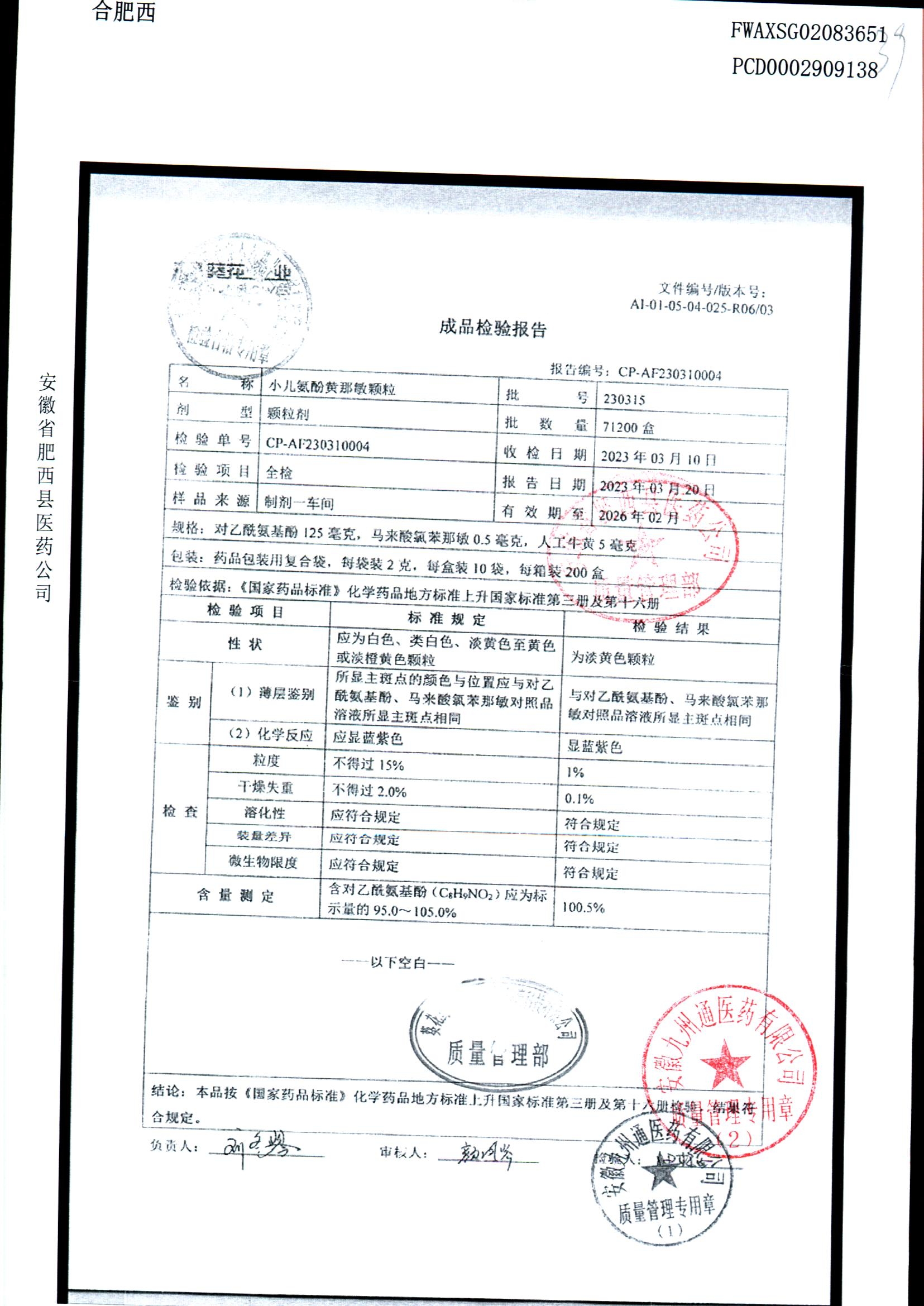 | 小儿氨酚黄那敏颗粒 | 2g*10袋 | 230315 | 查看详情 |