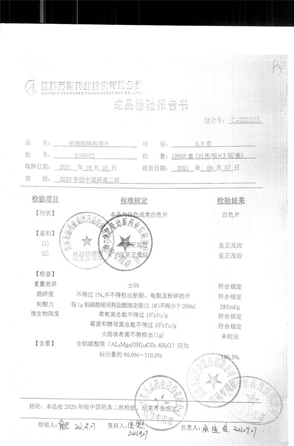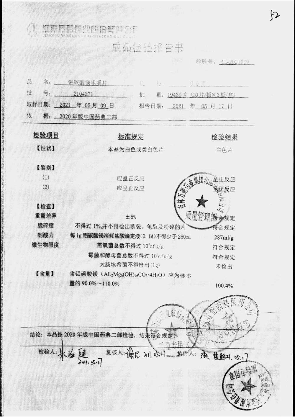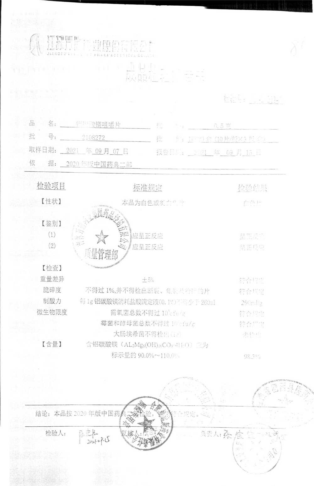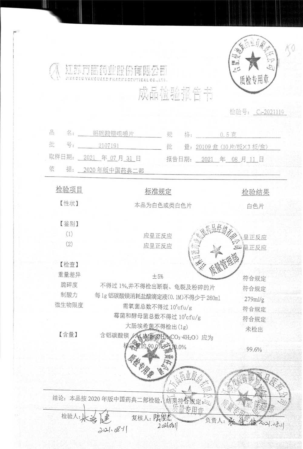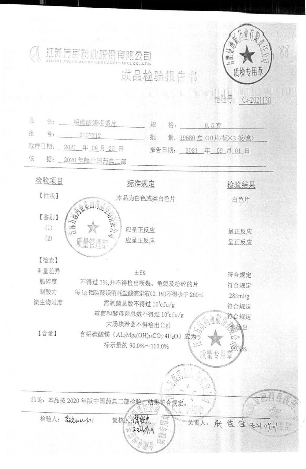 | 铝碳酸镁咀嚼片 | 0.5g*10片*3板 | 2106301 | 查看详情 |