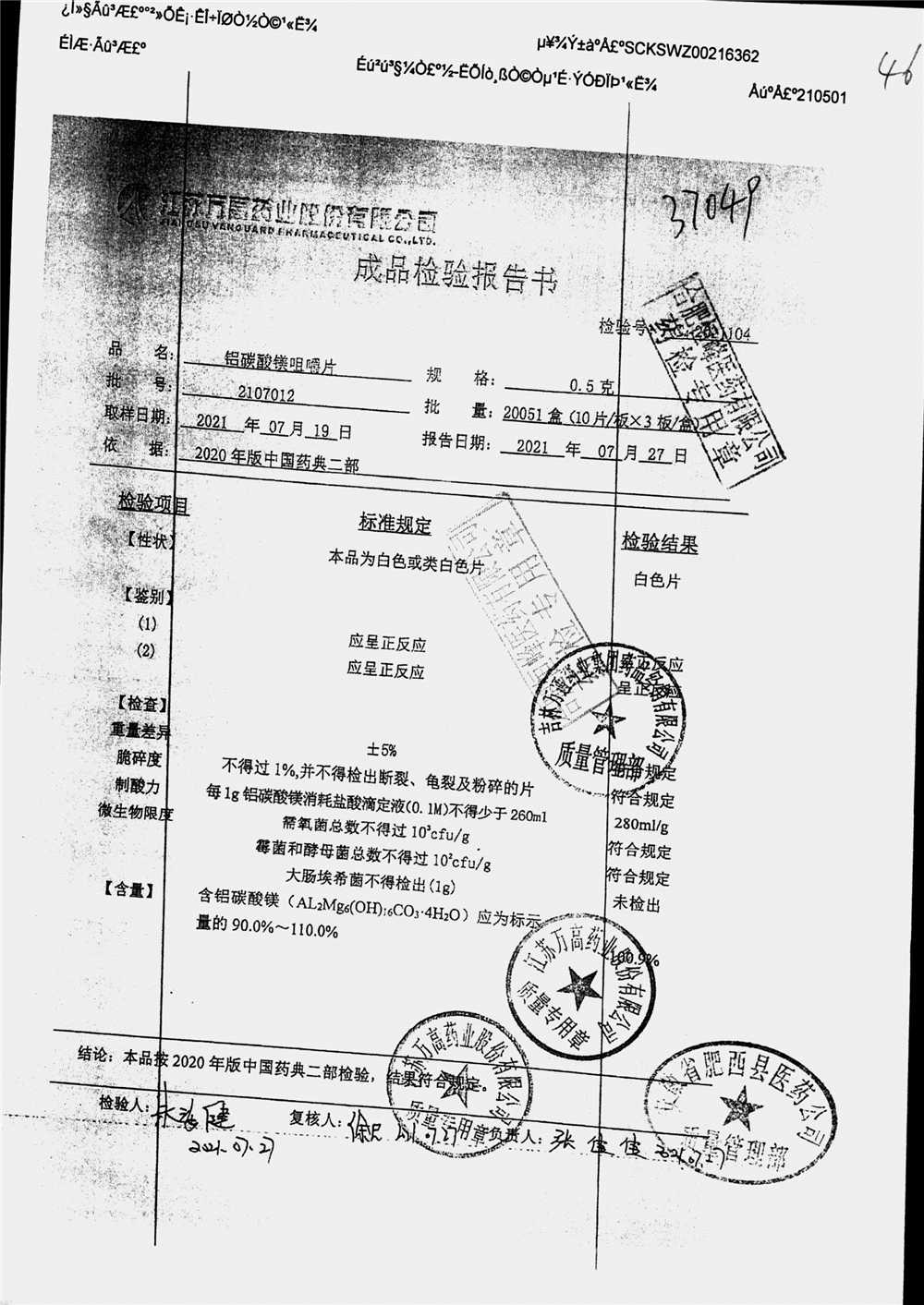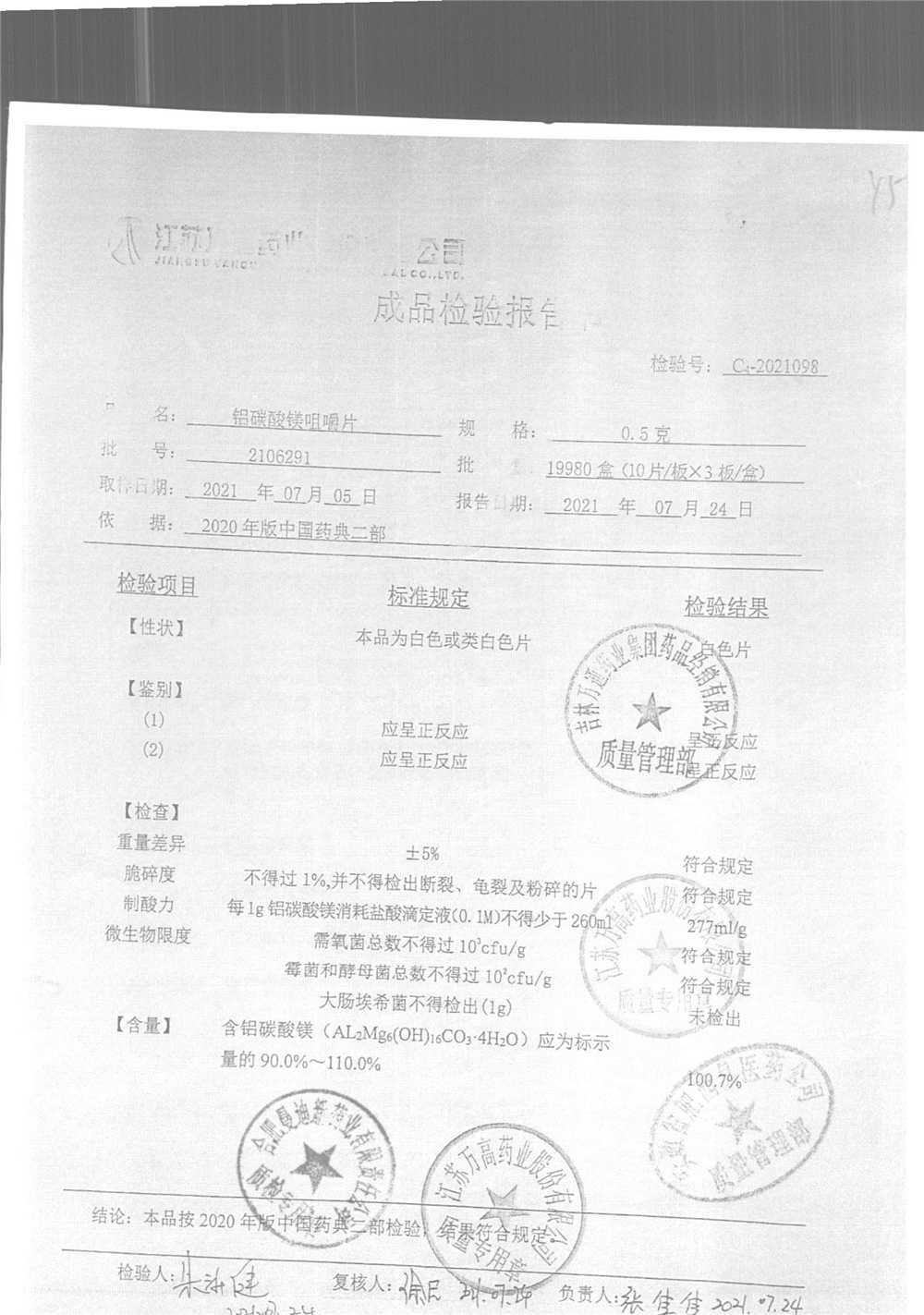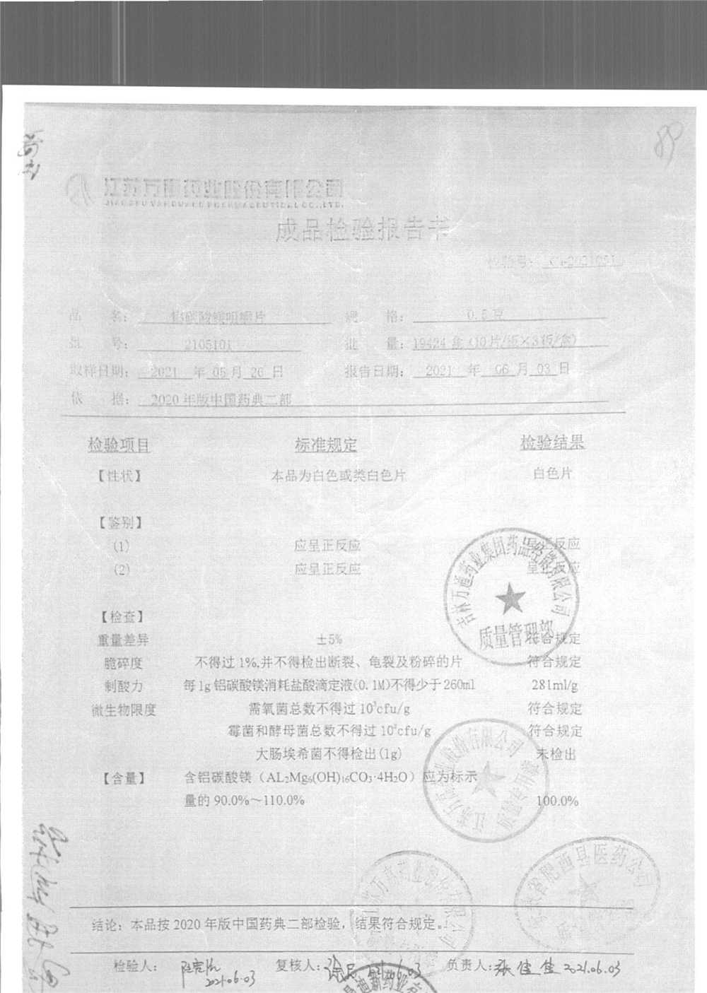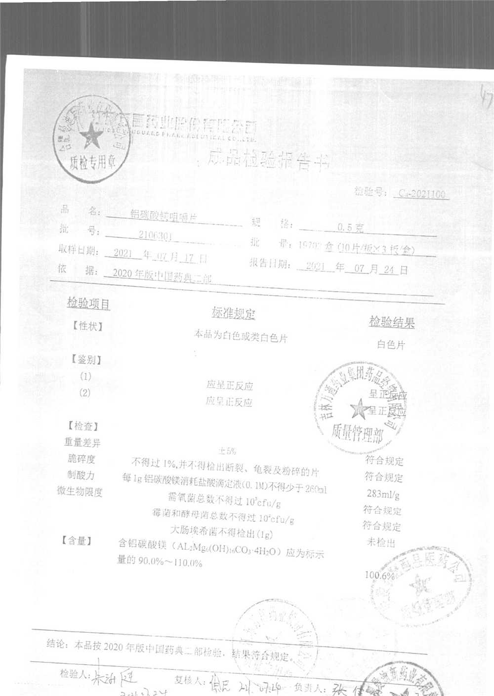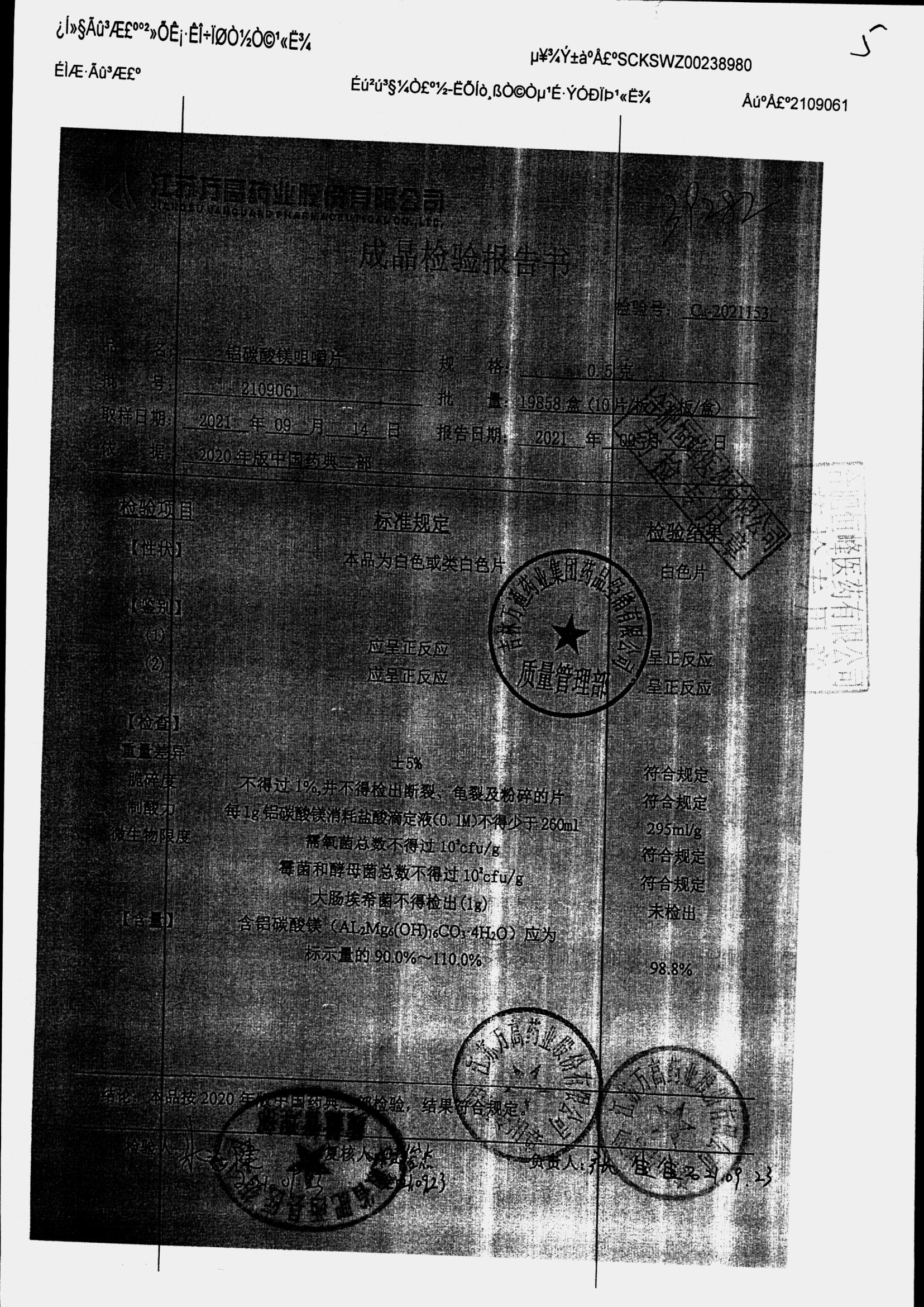 | 铝碳酸镁咀嚼片 | 0.5g*10片*3板 | 2106301 | 查看详情 |