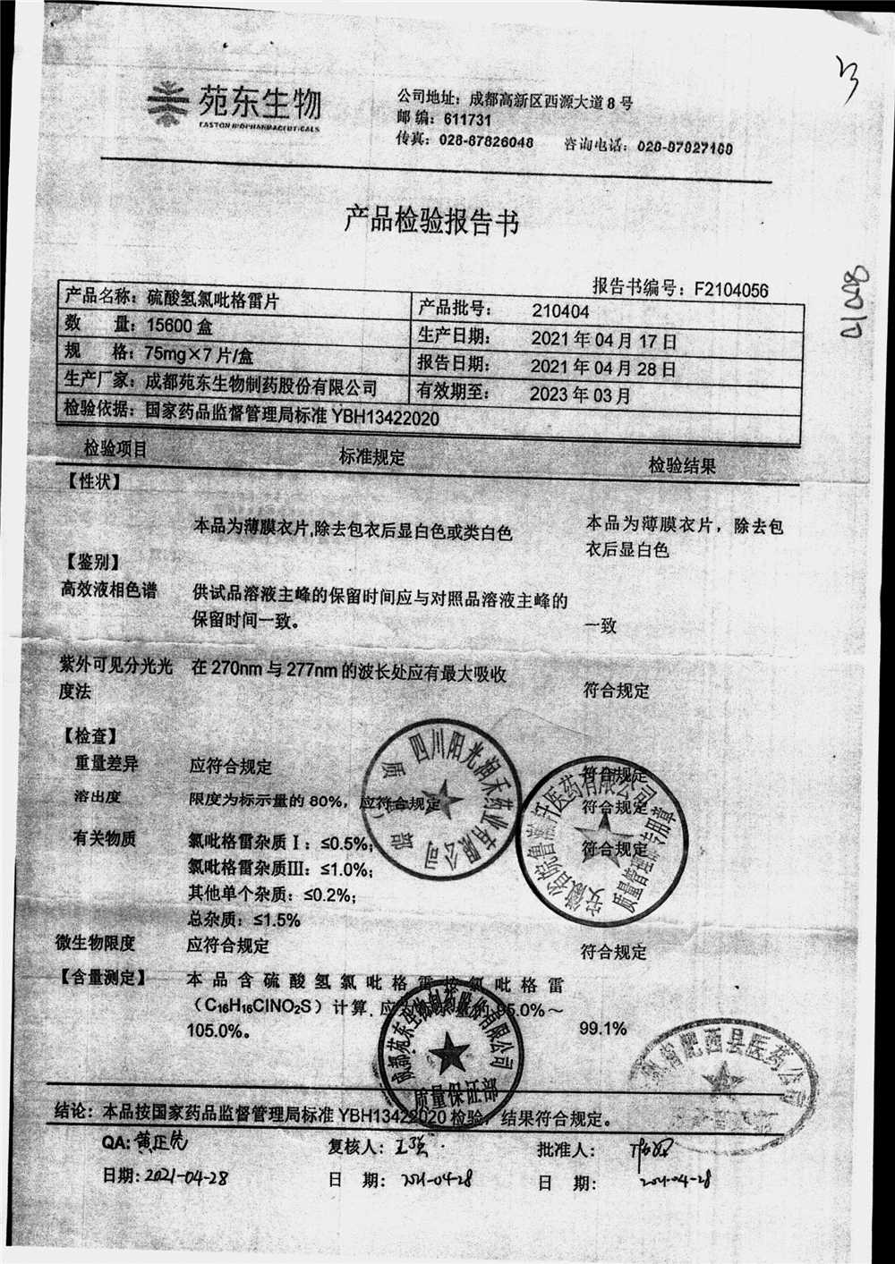 药检报告