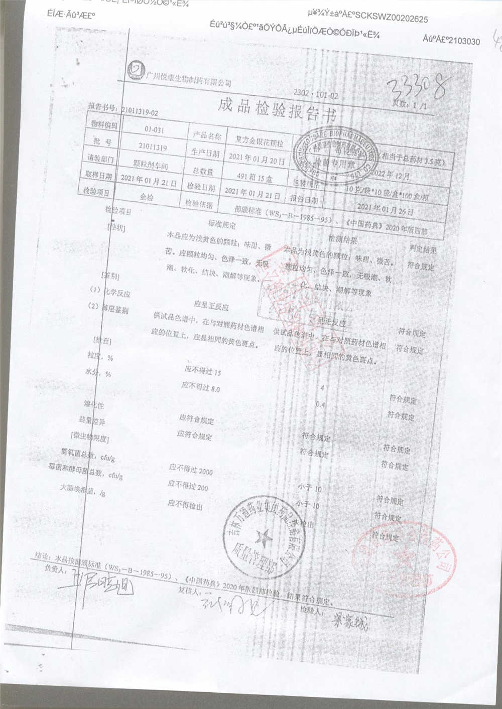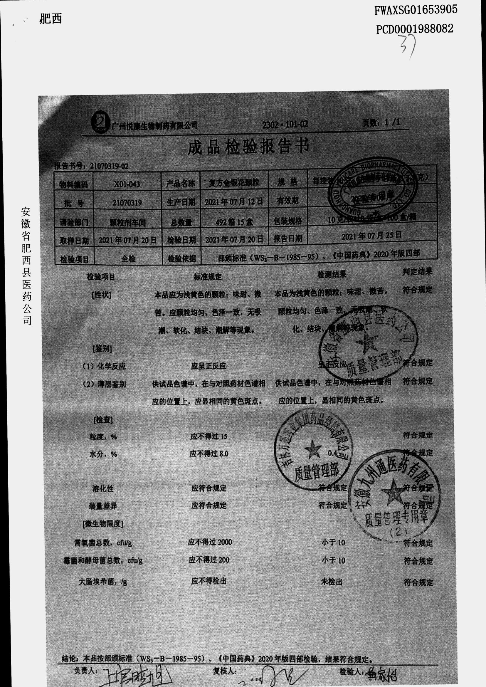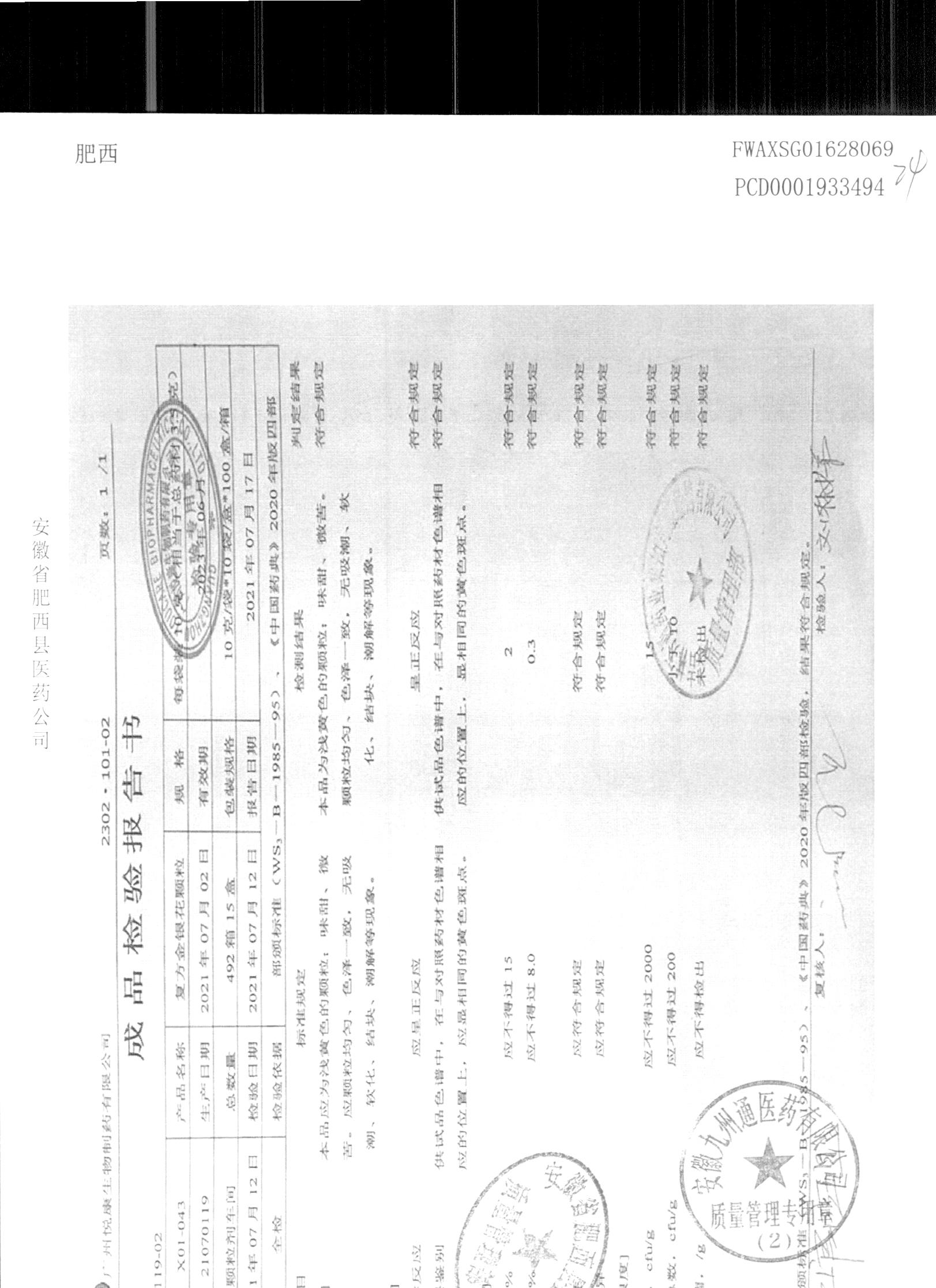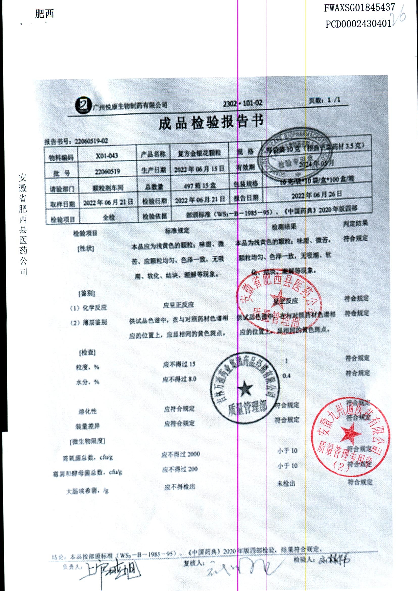 | 名称 | 规格 | 批号 | 药检报告 |