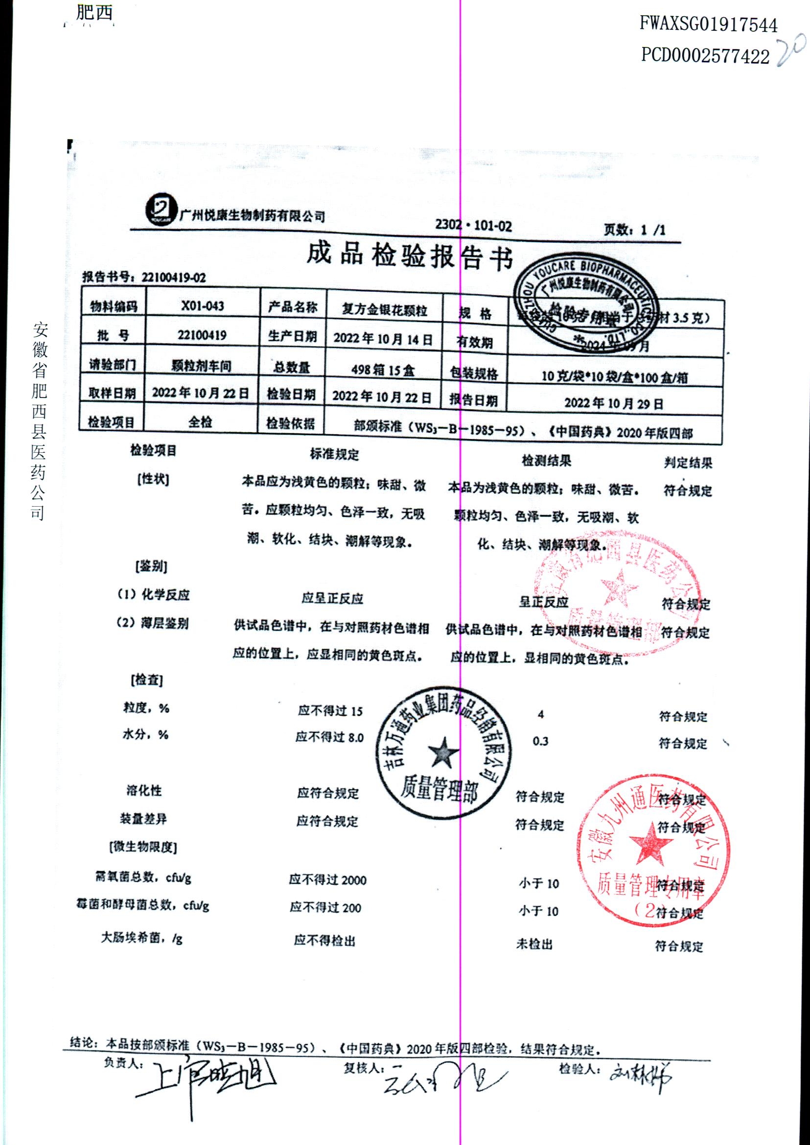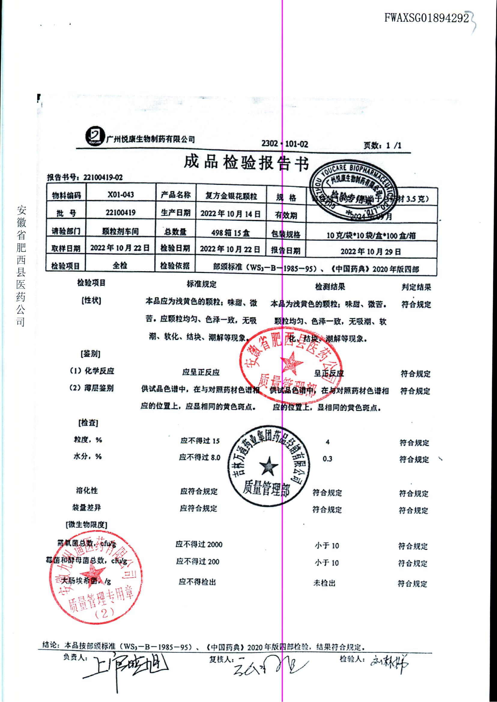 | 复方金银花颗粒 | 10g*10袋 | 22100419 | 查看详情 |