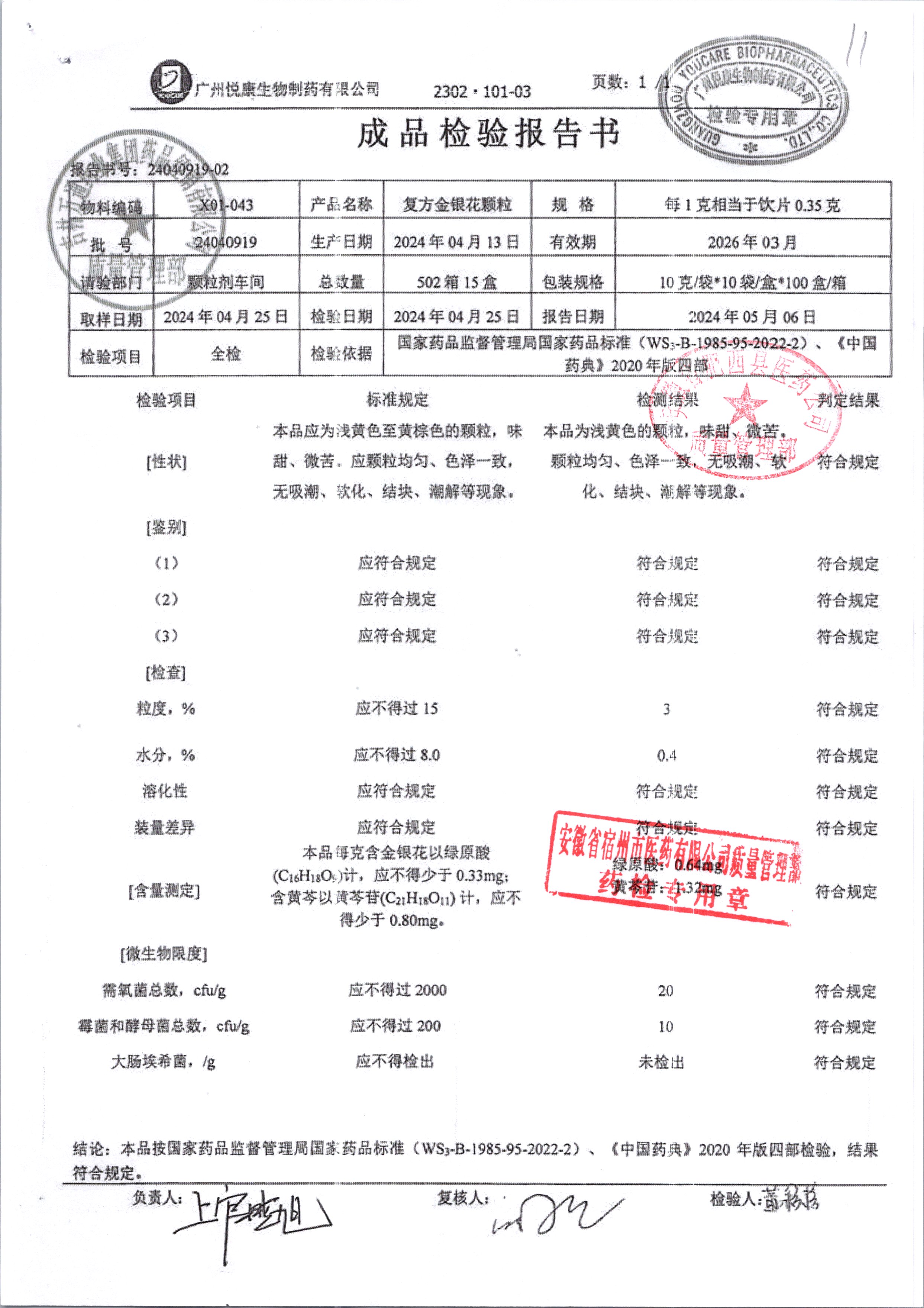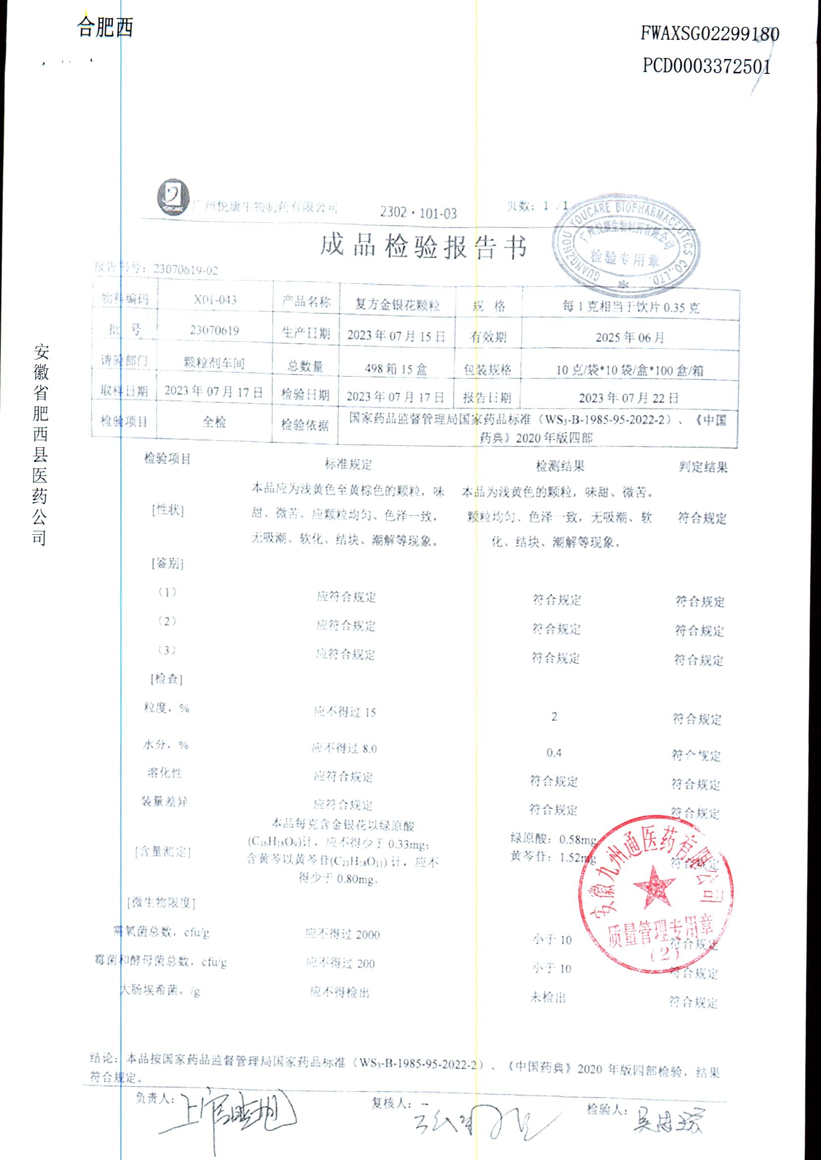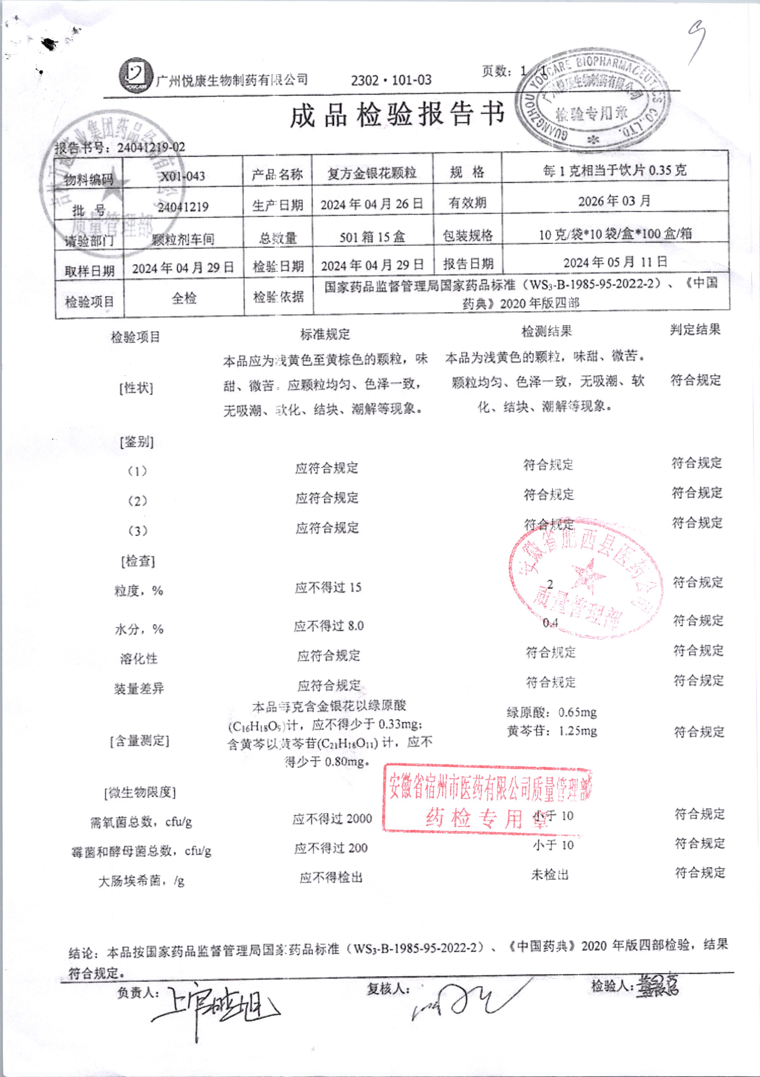 | 复方金银花颗粒 | 10g*10袋 | 24040919 | 查看详情 |