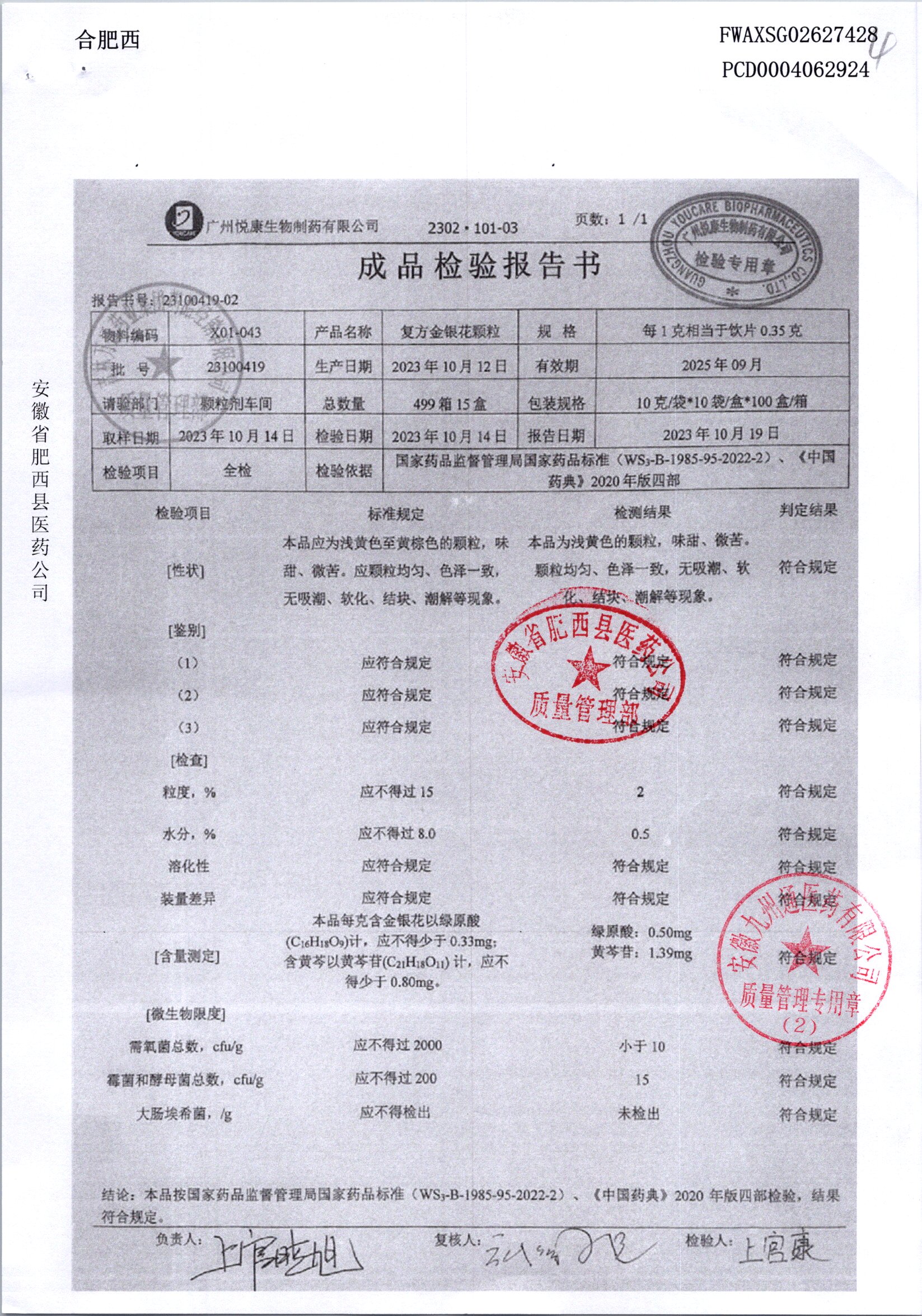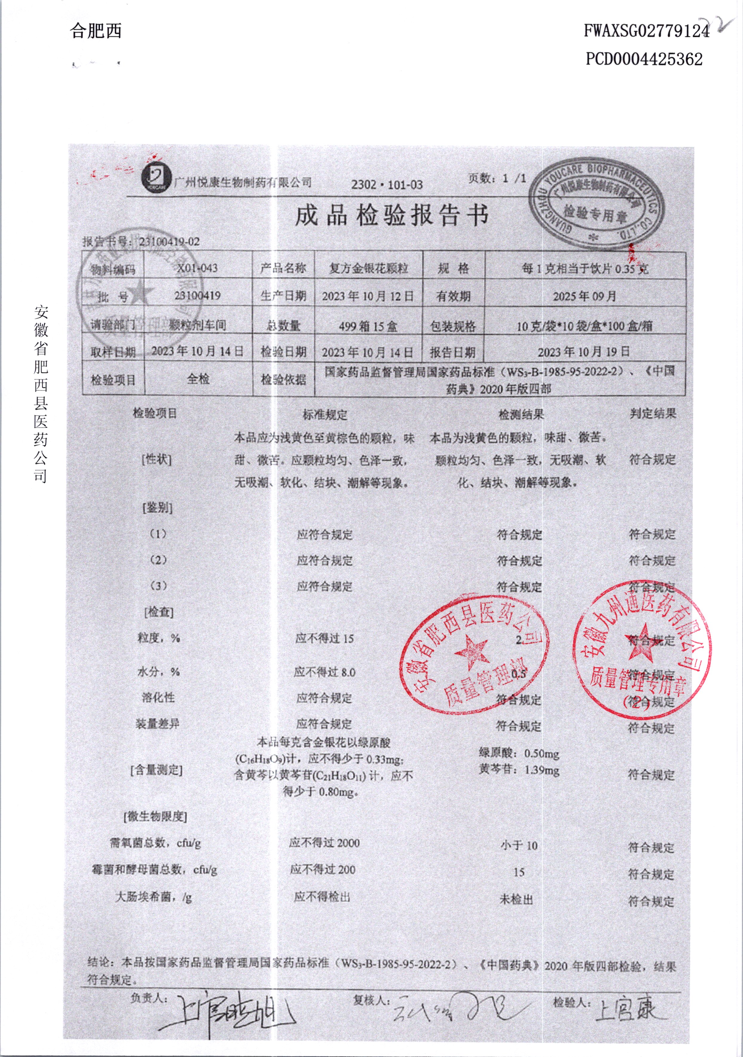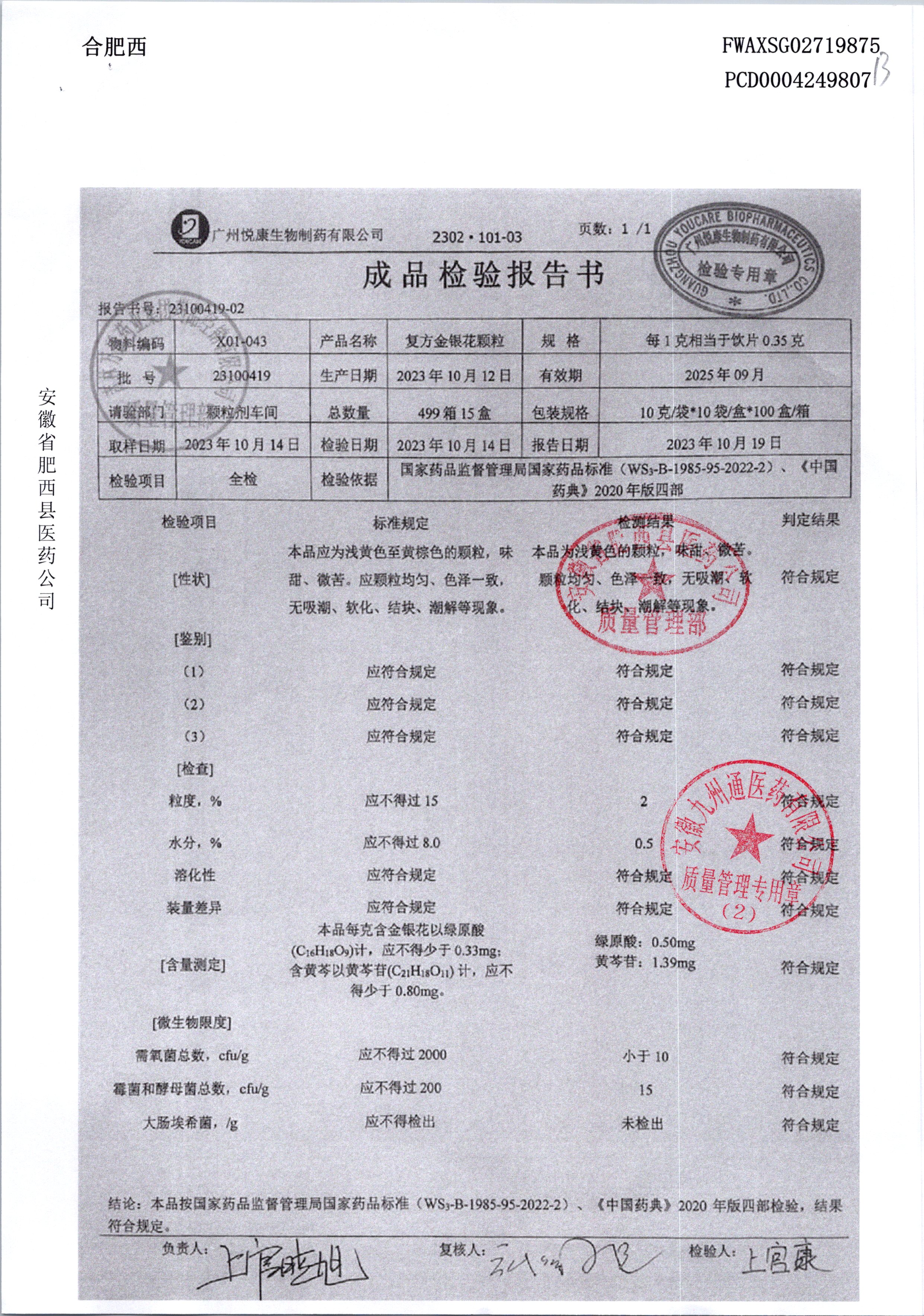 | 复方金银花颗粒 | 10g*10袋 | 24040919 | 查看详情 |