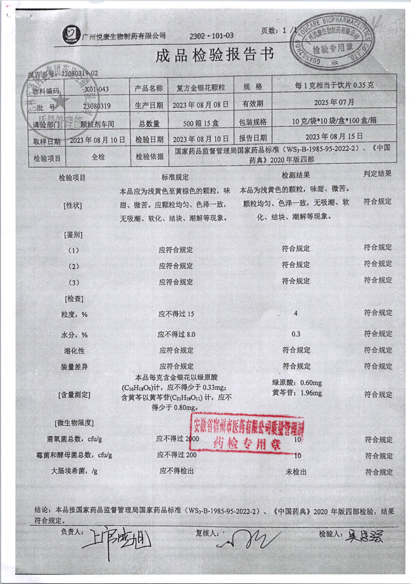 | 复方金银花颗粒 | 10g*10袋 | 23080319 | 查看详情 |