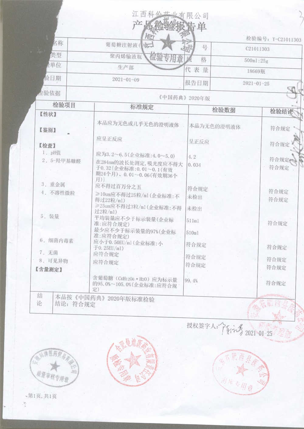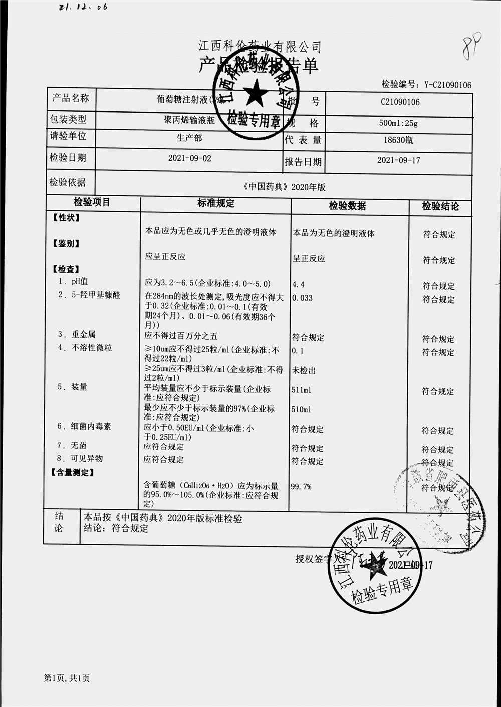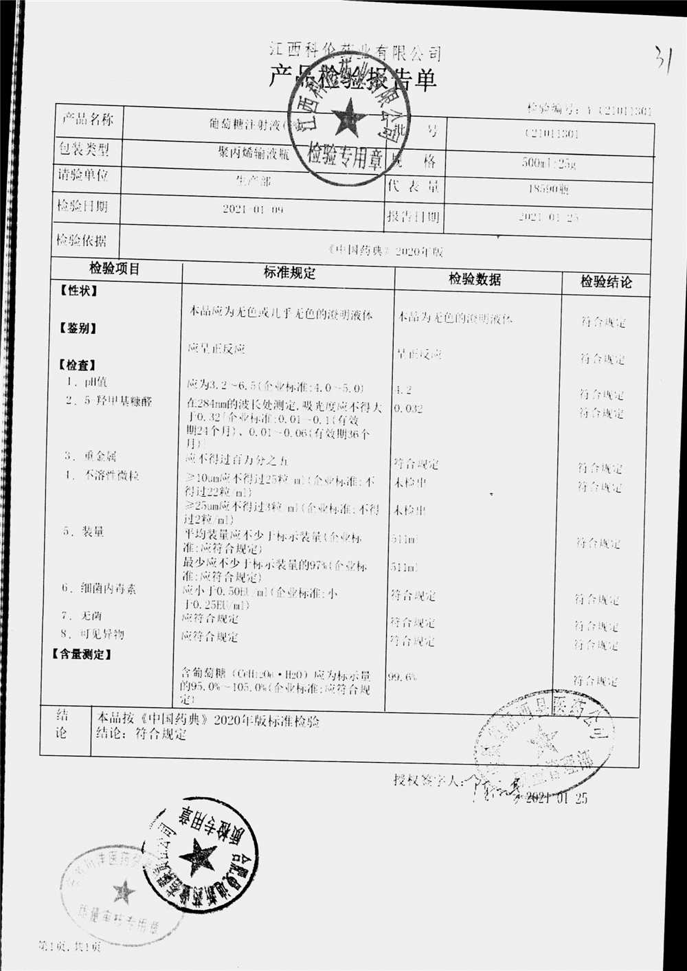 药检报告