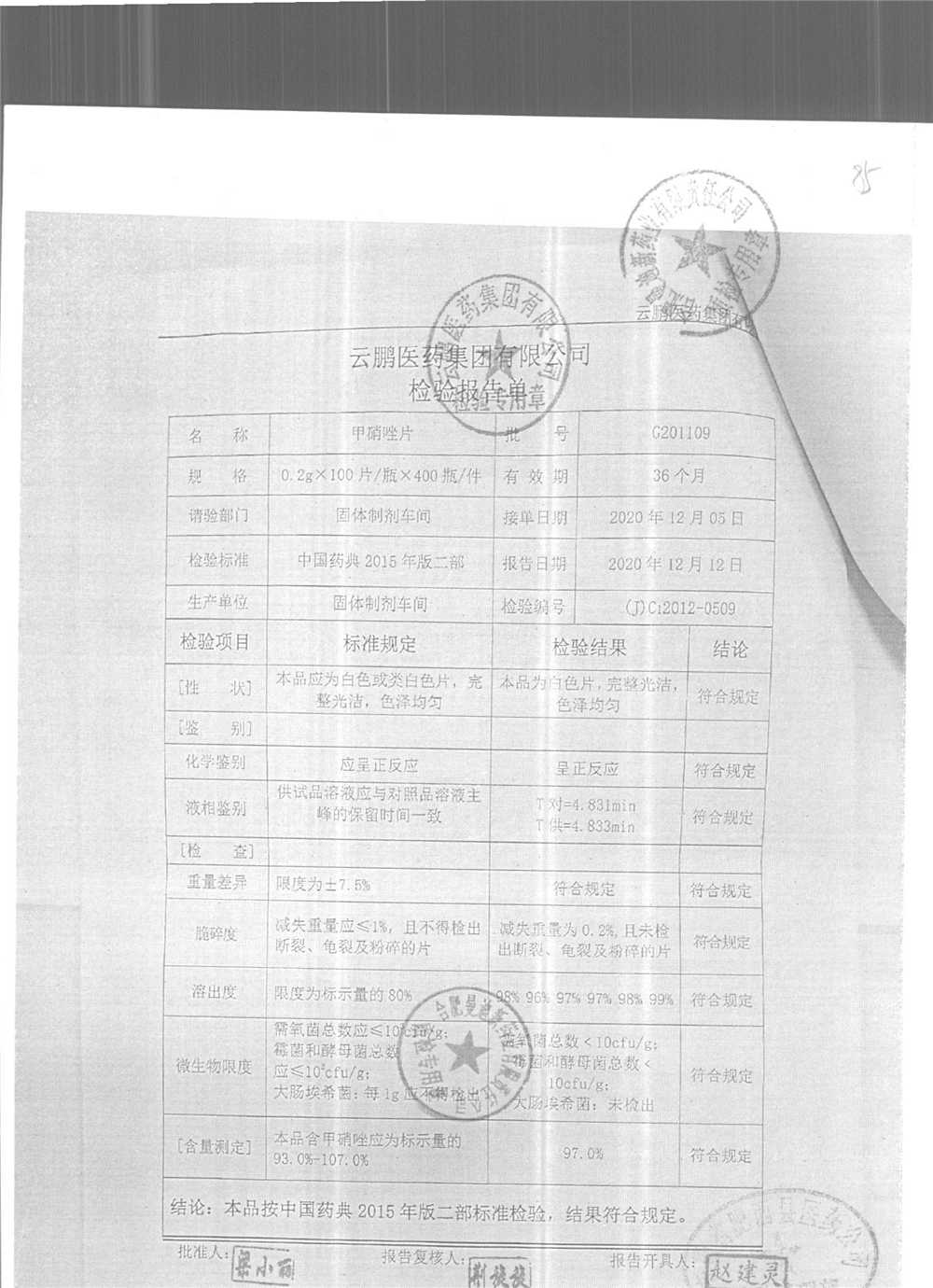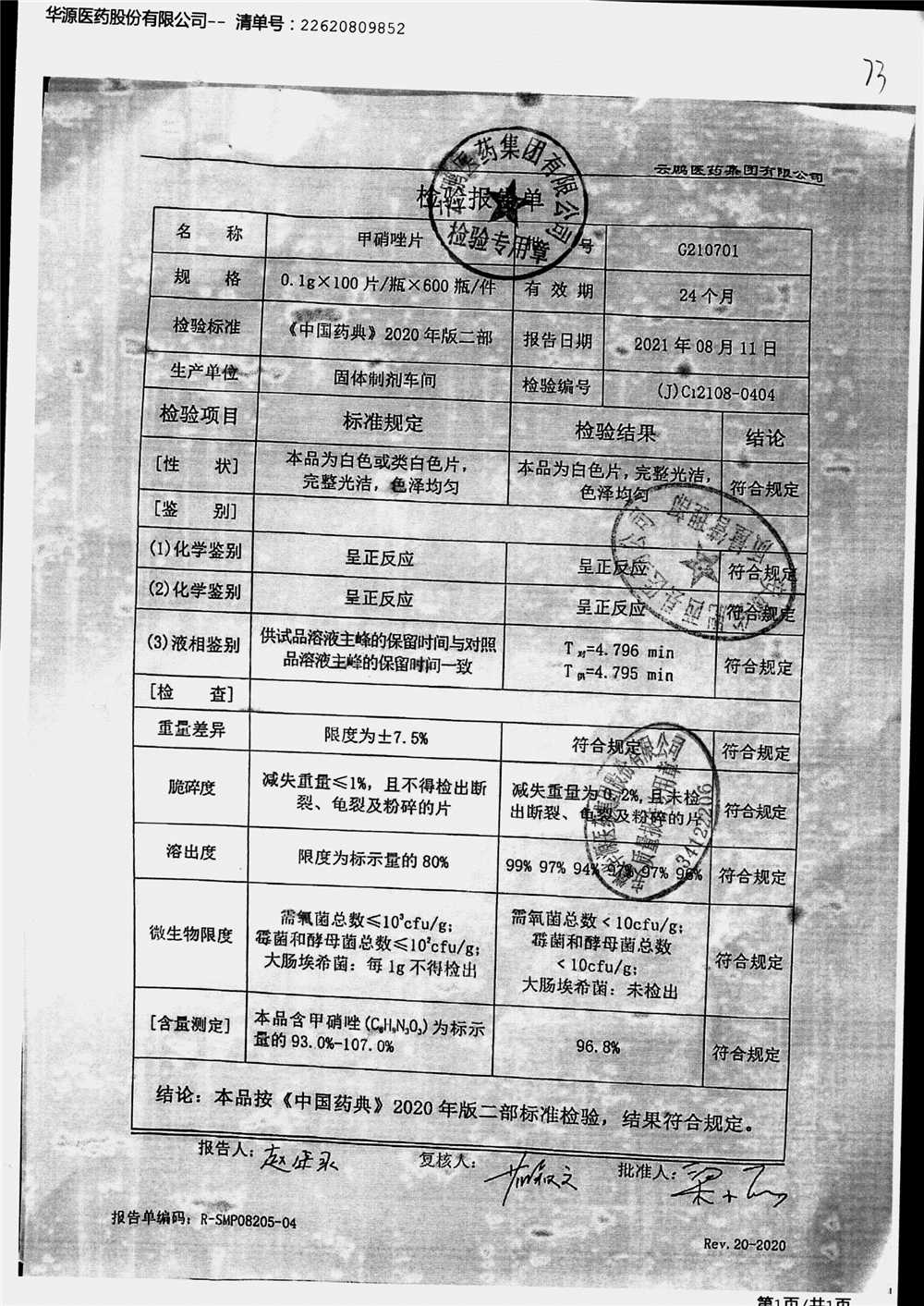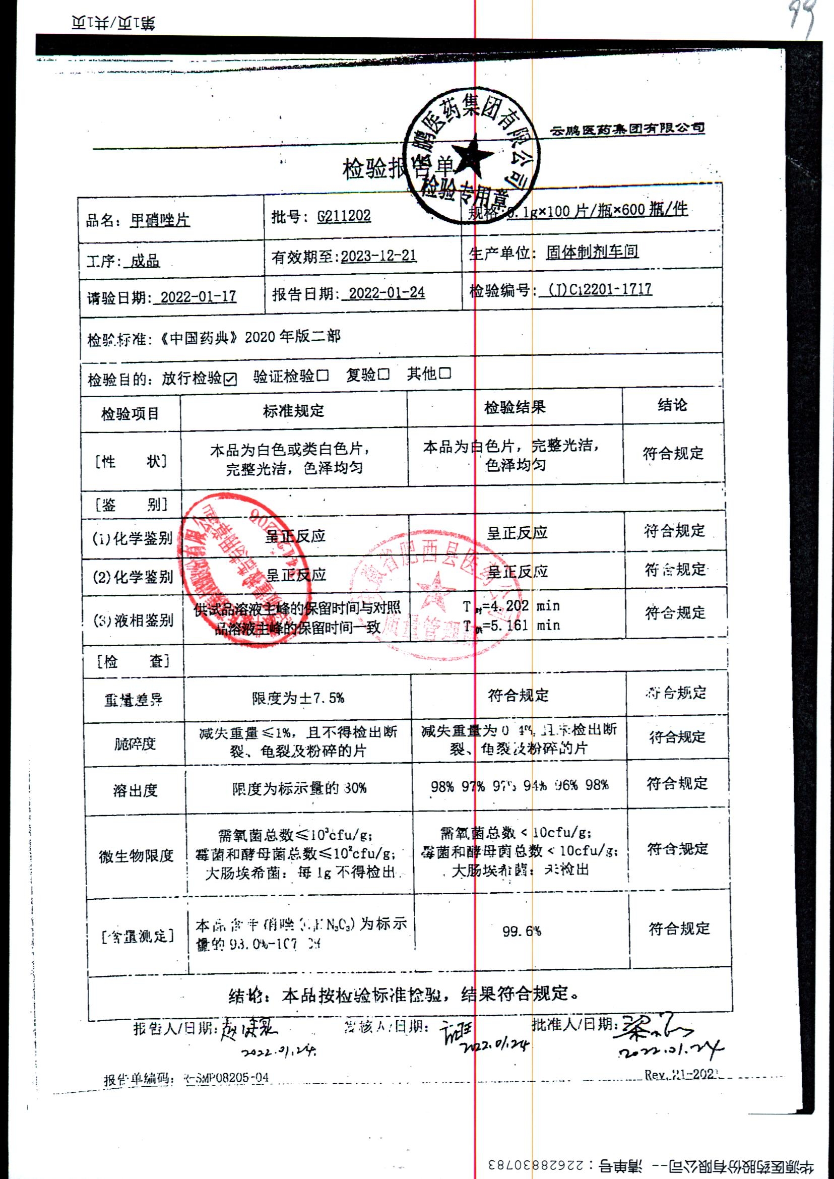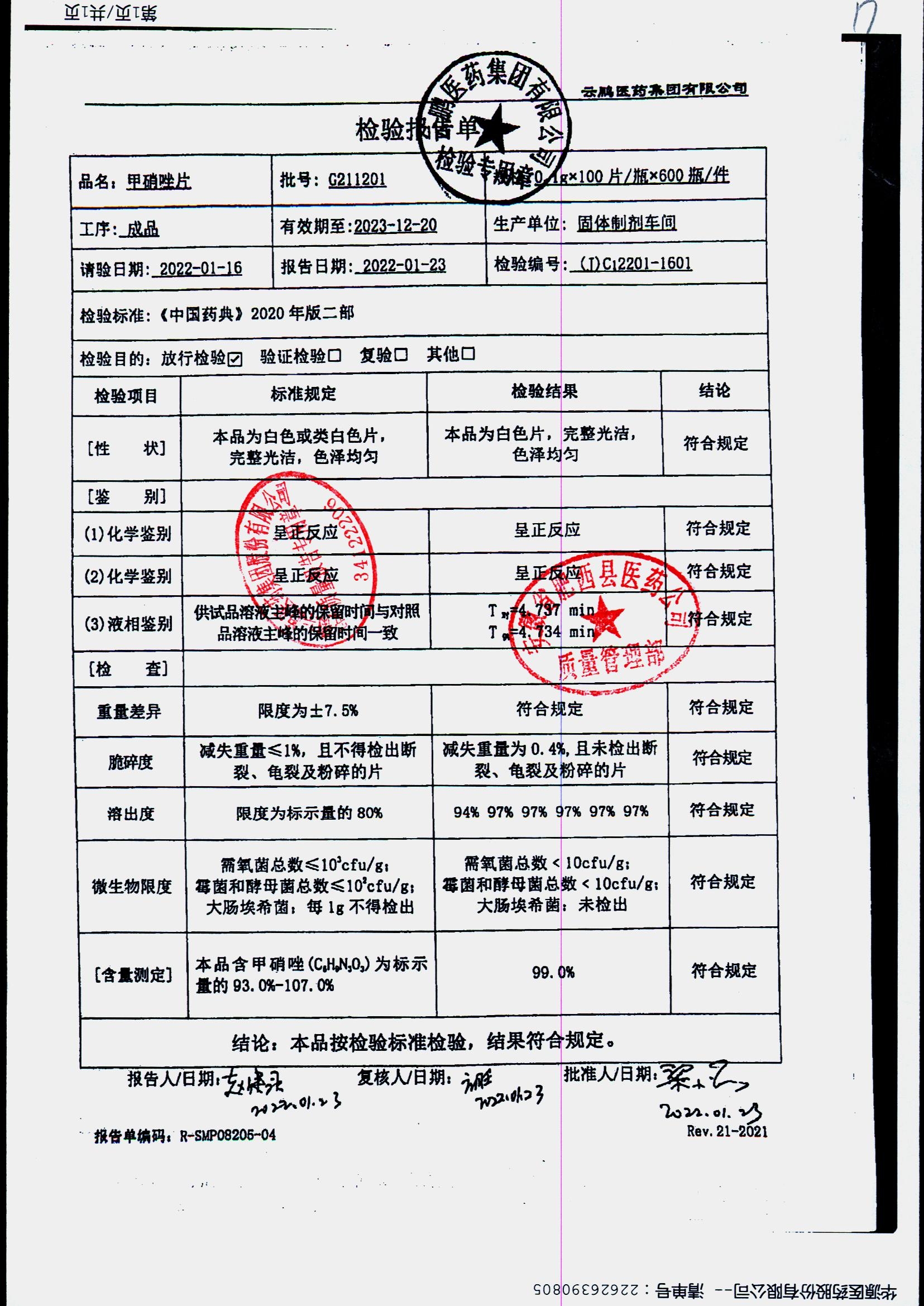 药检报告