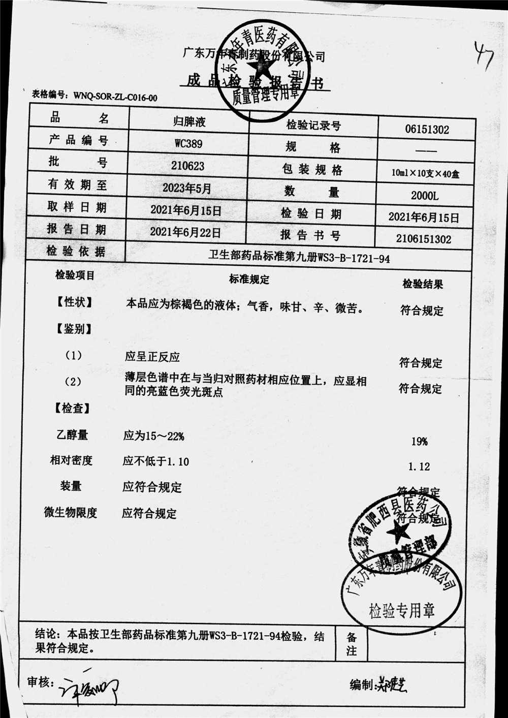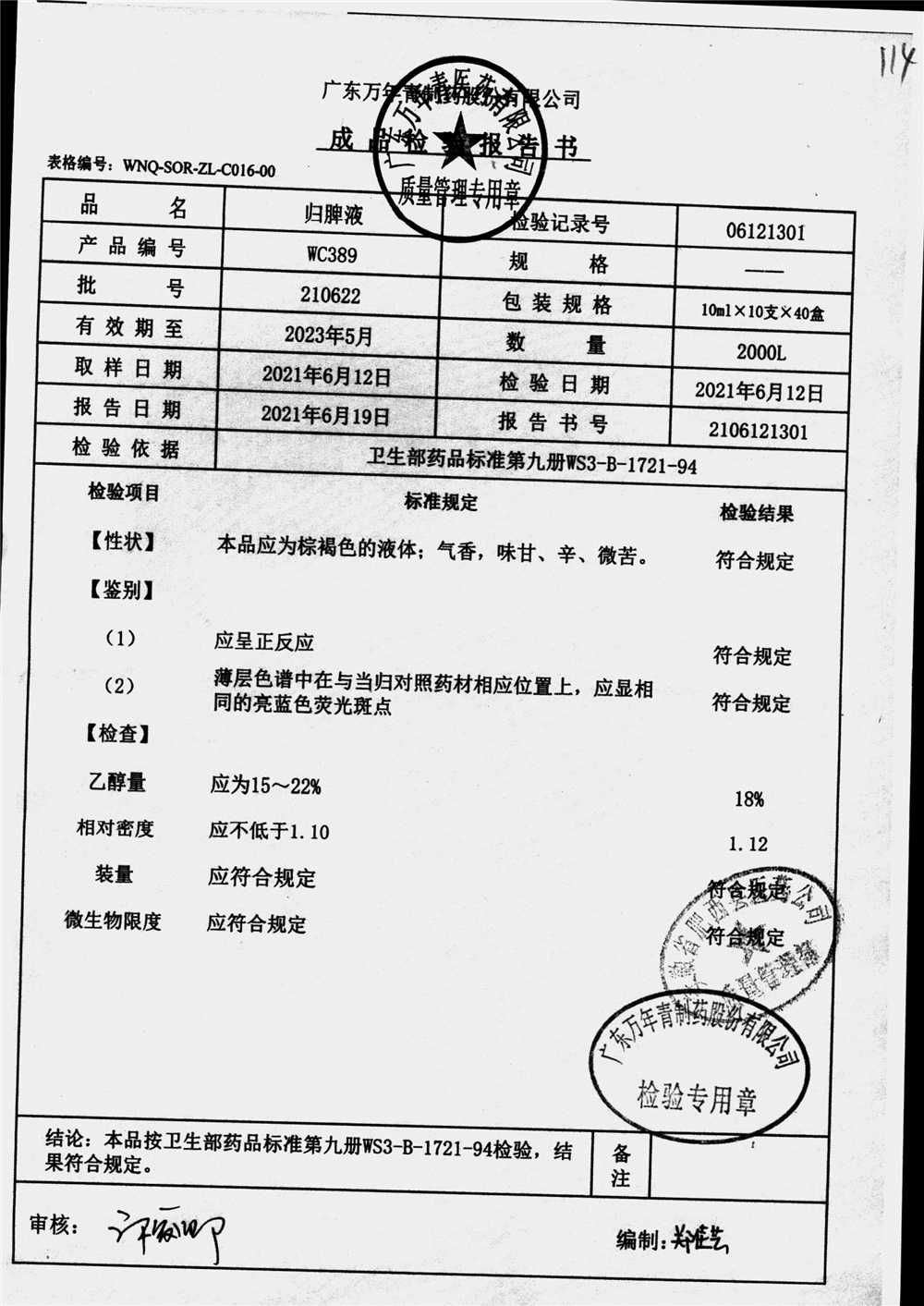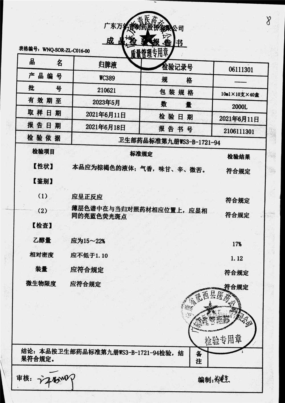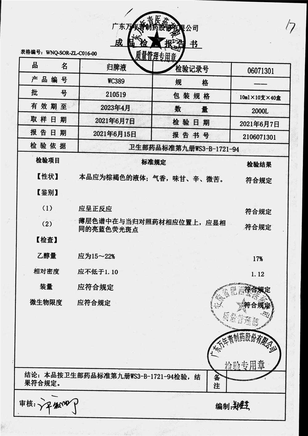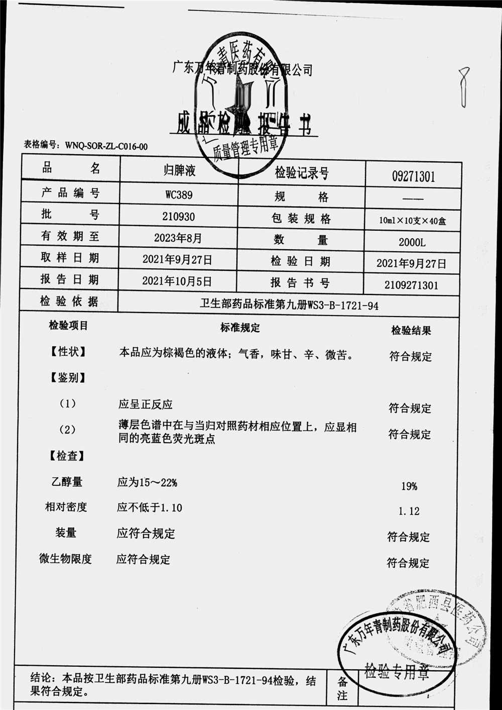 | 归脾液 | 10ml*10支 | 210930 | 查看详情 |