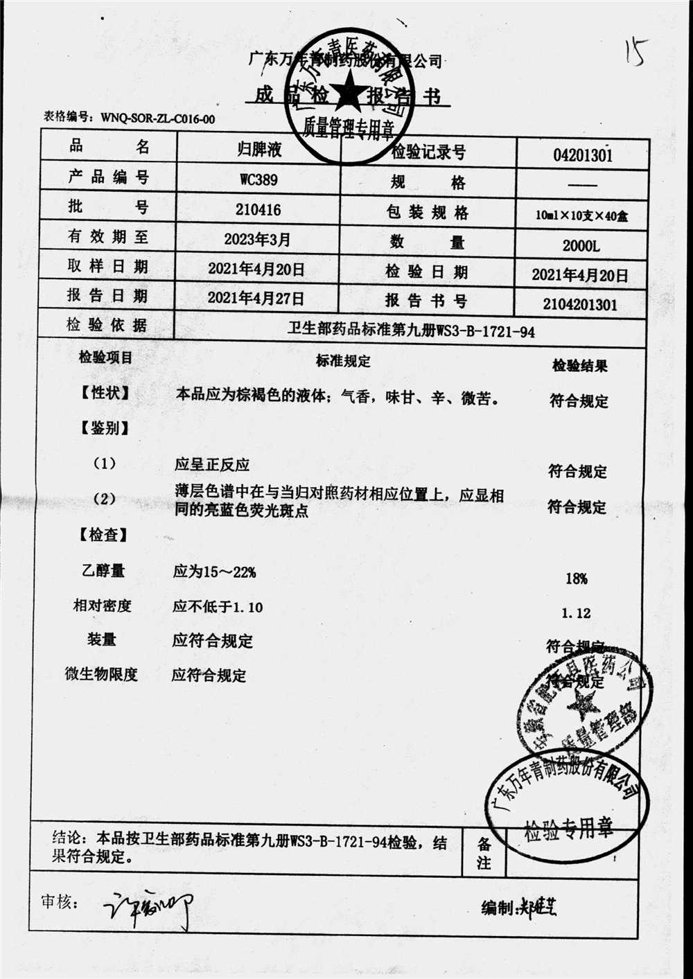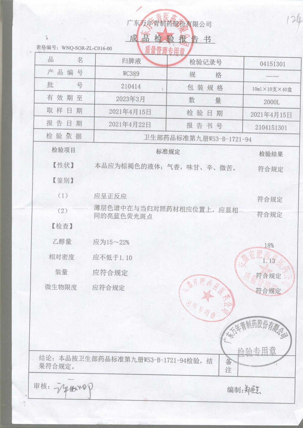 | 归脾液 | 10ml*10支 | 210416 | 查看详情 |