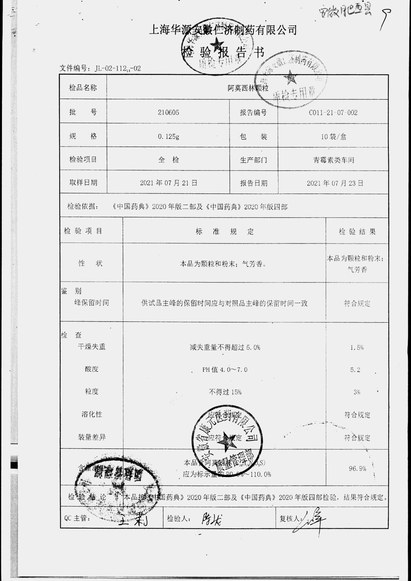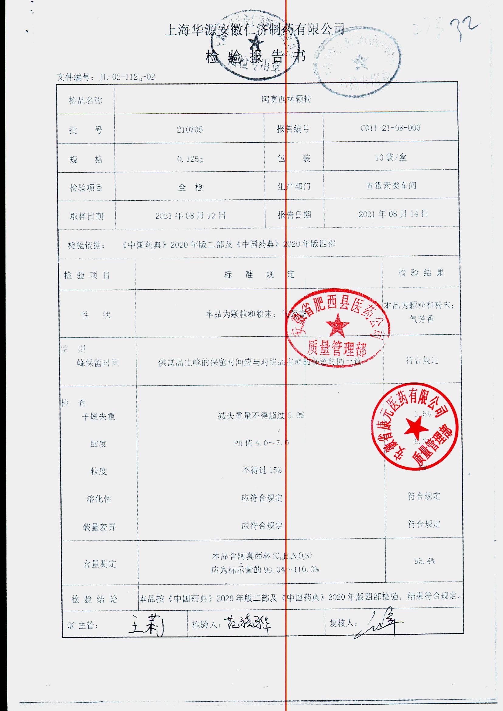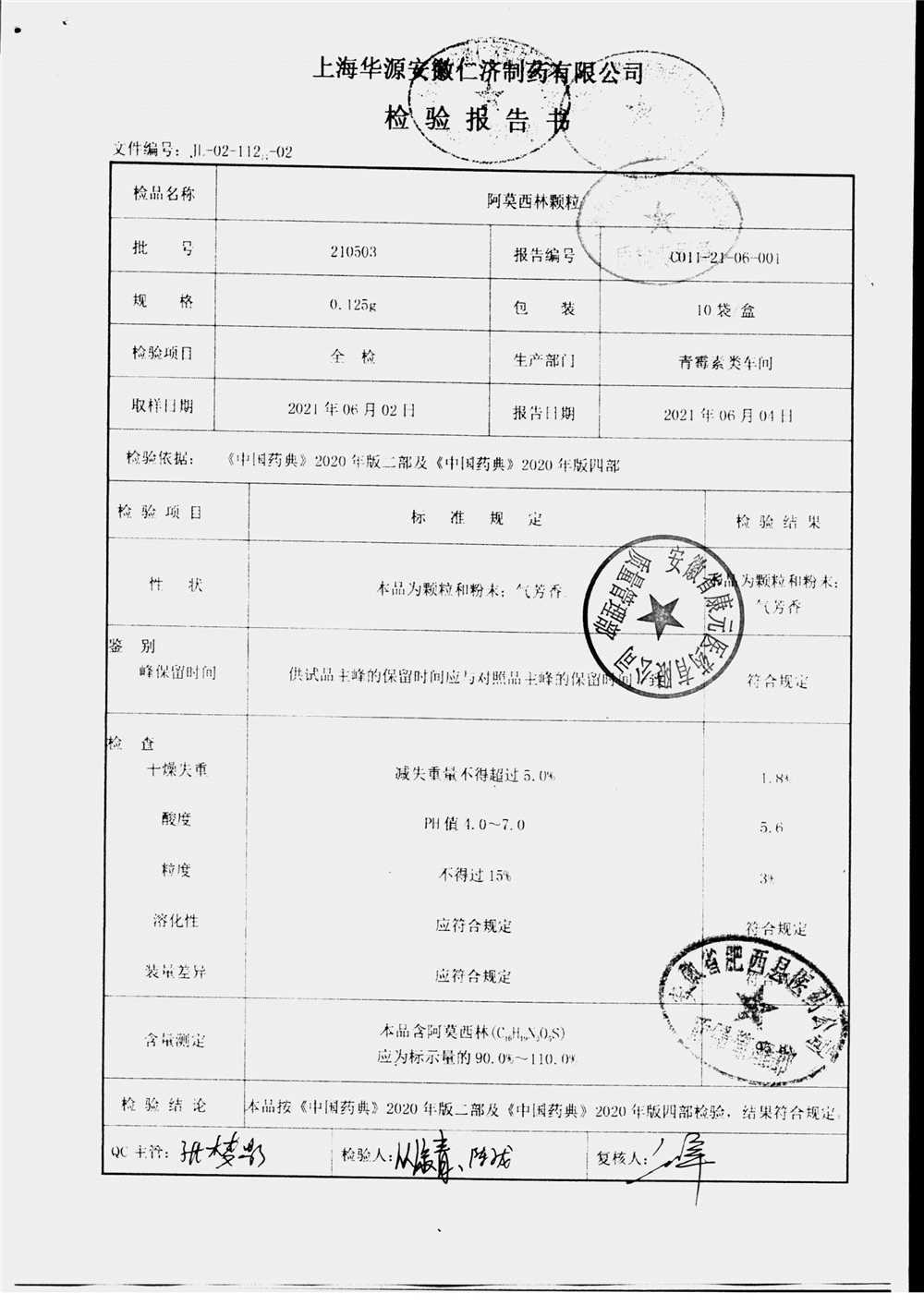 | 阿莫西林颗粒 | 0.125G*10袋 | 210605 | 查看详情 |