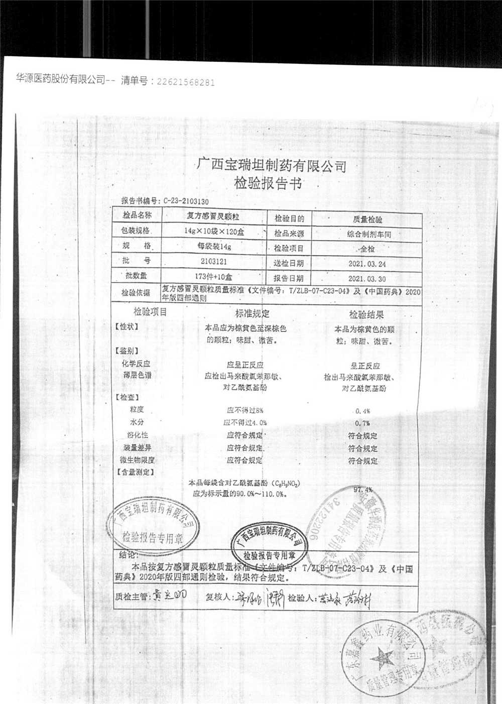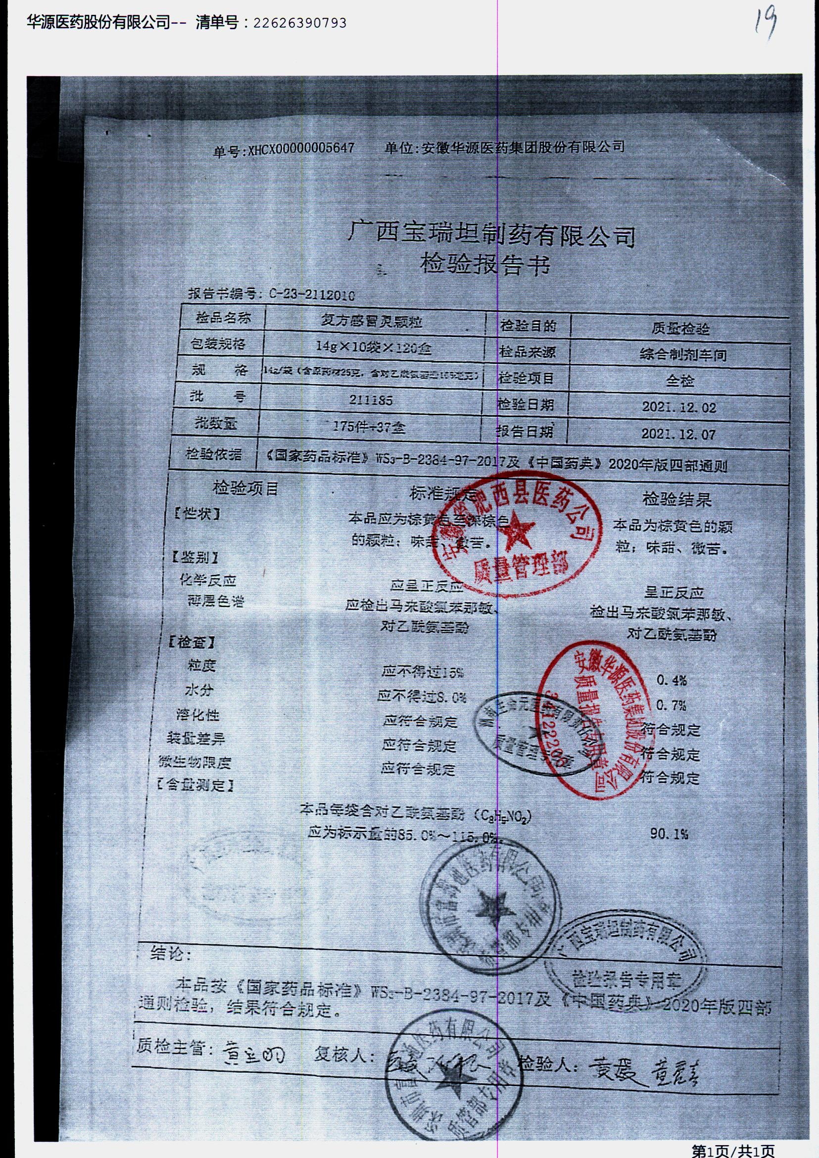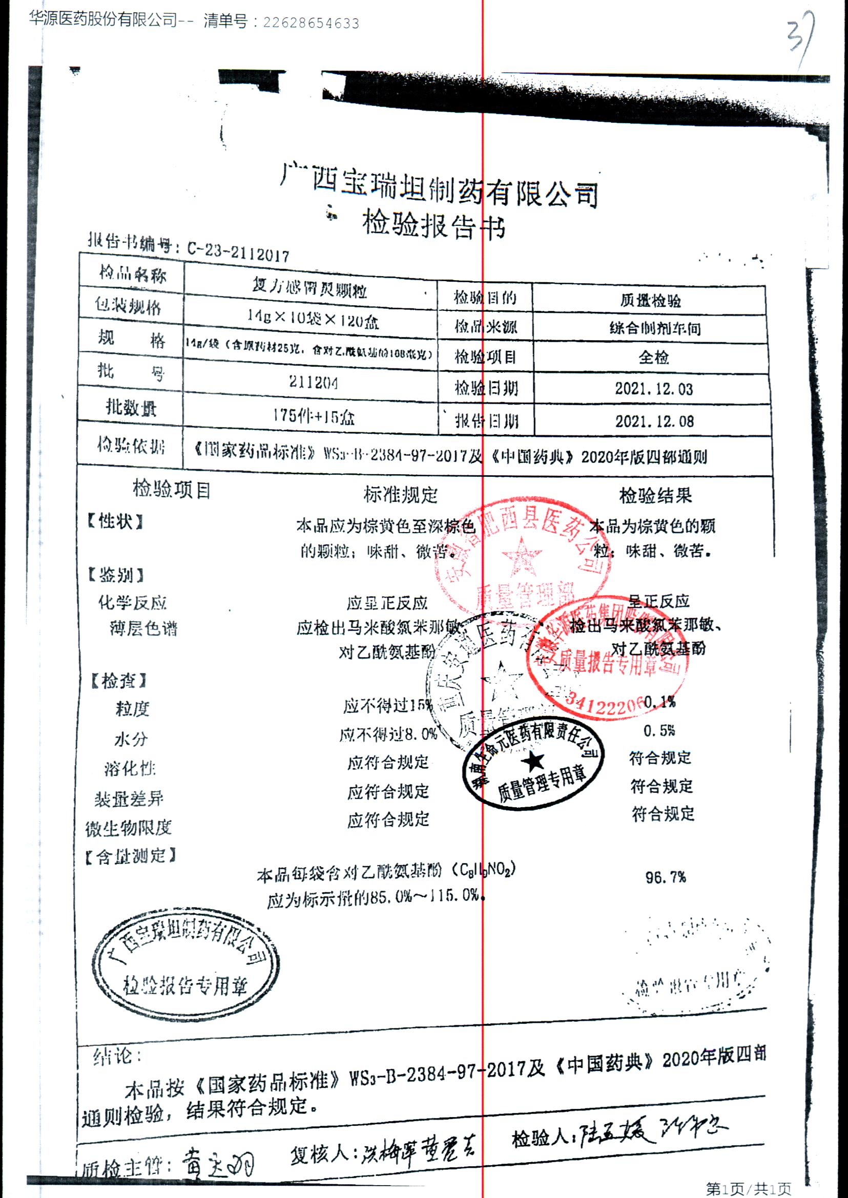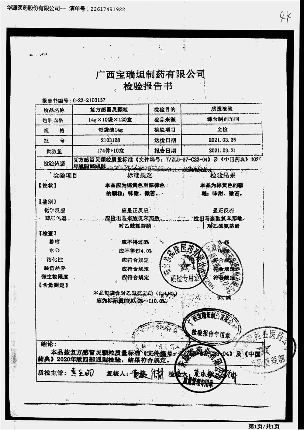 | 复方感冒灵颗粒 | 14g*10袋 | 211204 | 查看详情 |