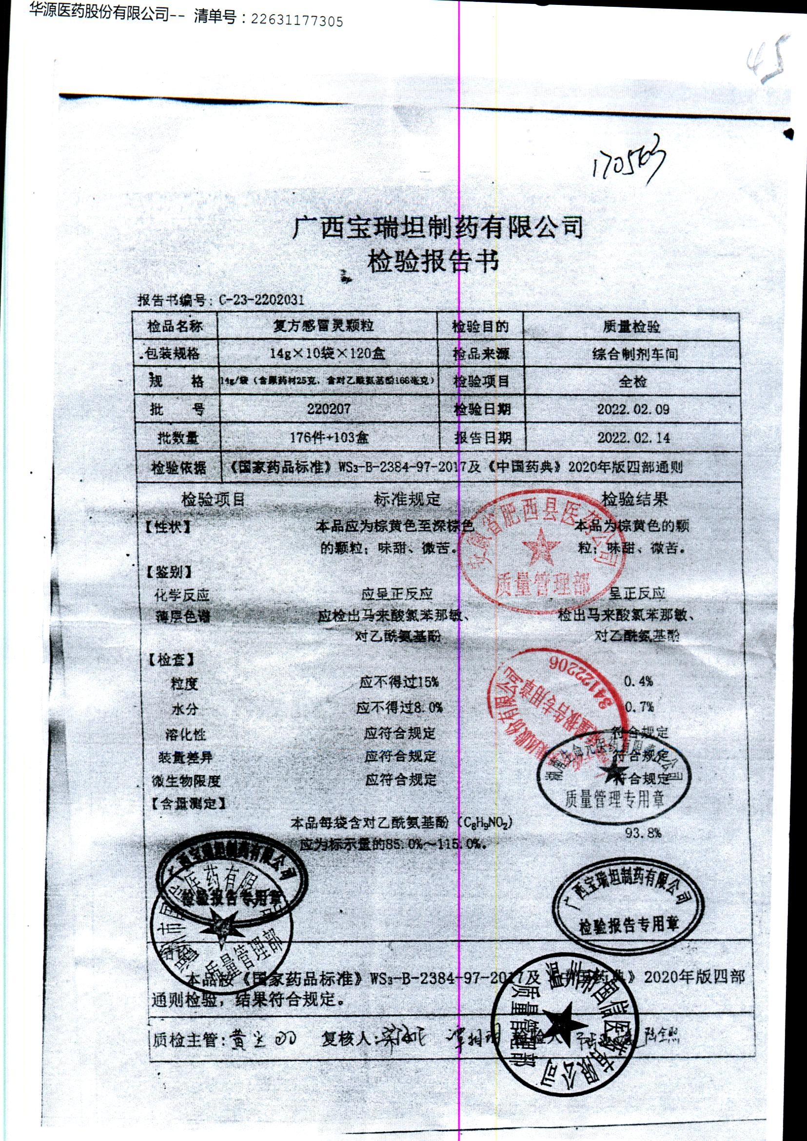 | 复方感冒灵颗粒 | 14g*10袋 | 220207 | 查看详情 |