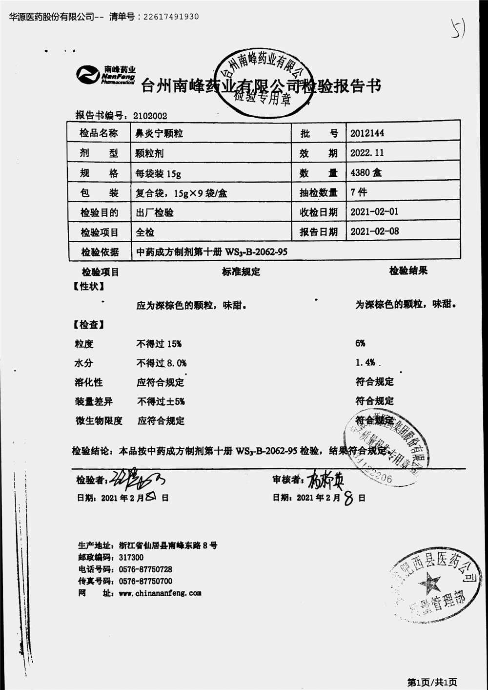 药检报告