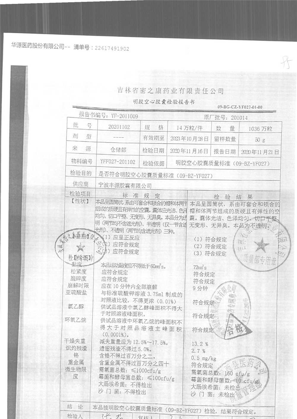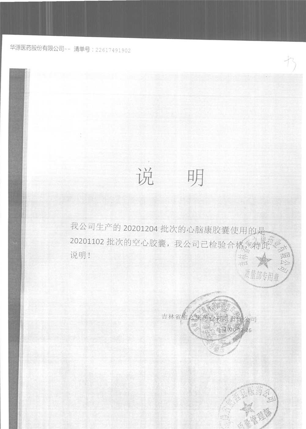| 心脑康胶囊 | 0.25g*12粒*2板 | 20201204(2/3) | 查看详情 |