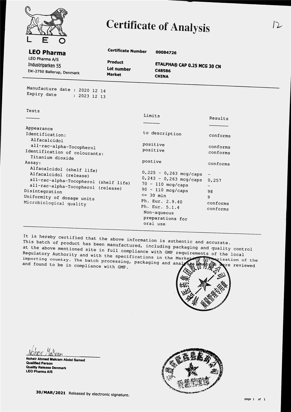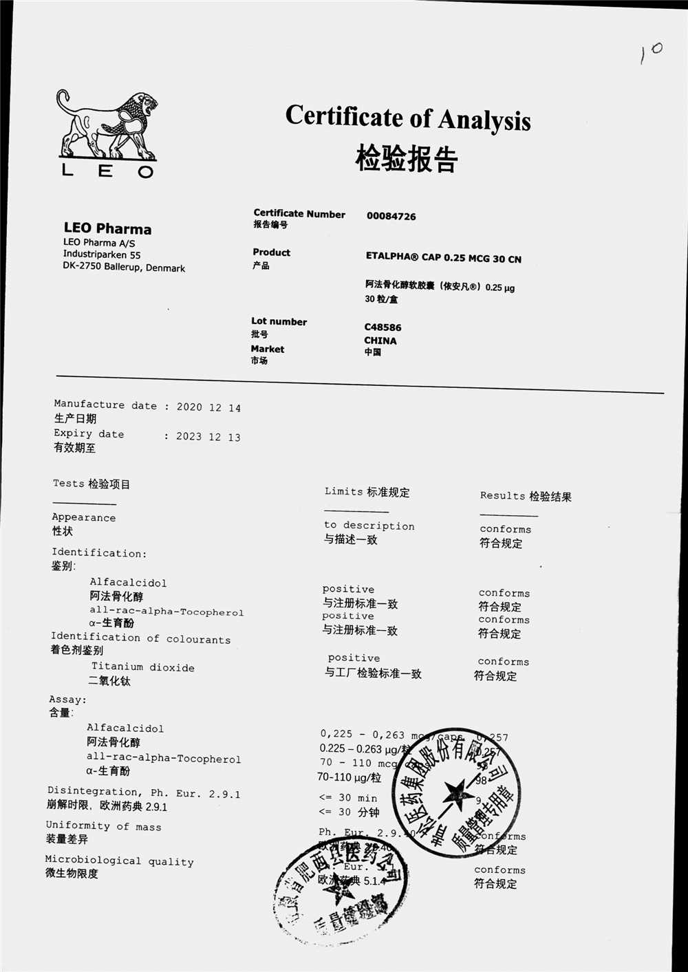 | 阿法骨化醇软胶囊 | 0.25μg*30粒 | C48586(4/5) | 查看详情 |