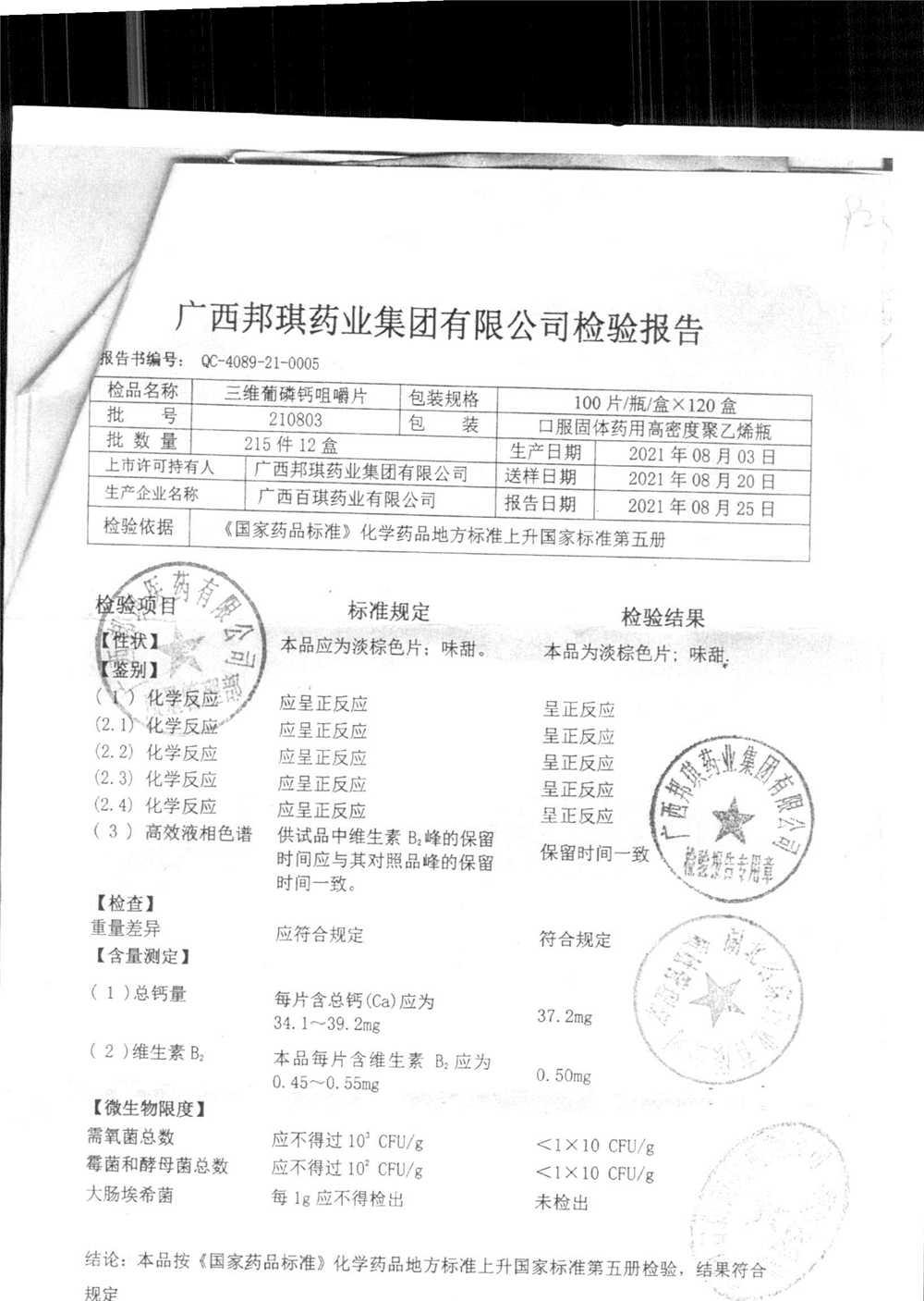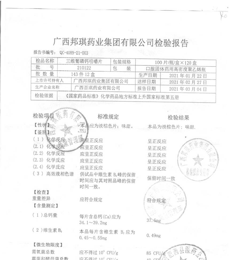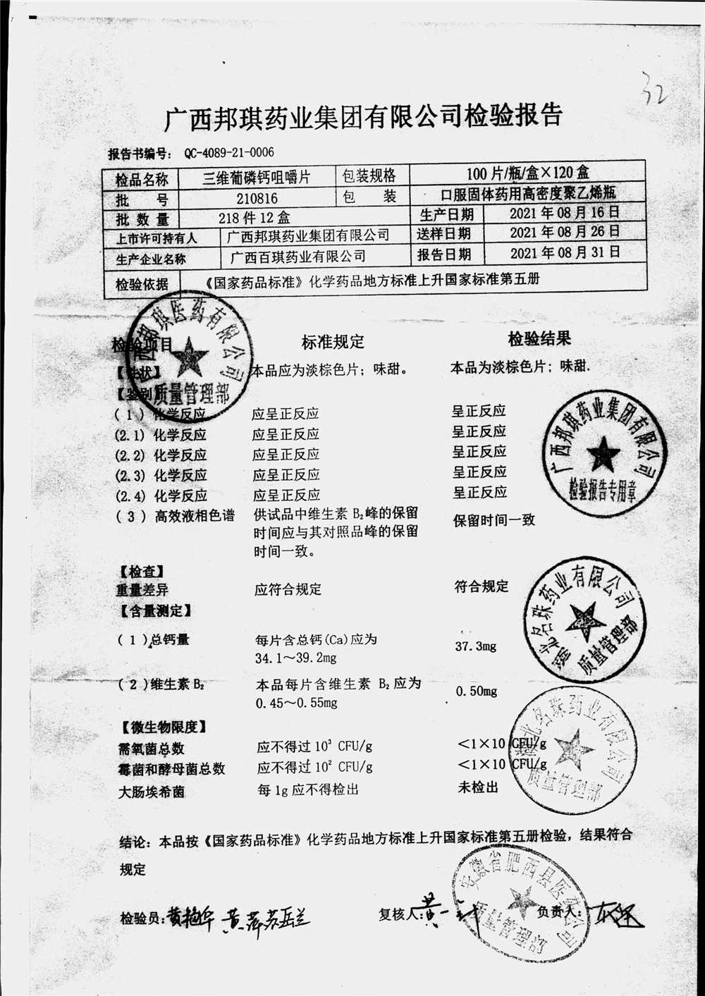 | 三维葡磷钙咀嚼片 | 100片 | 220520 | 查看详情 |