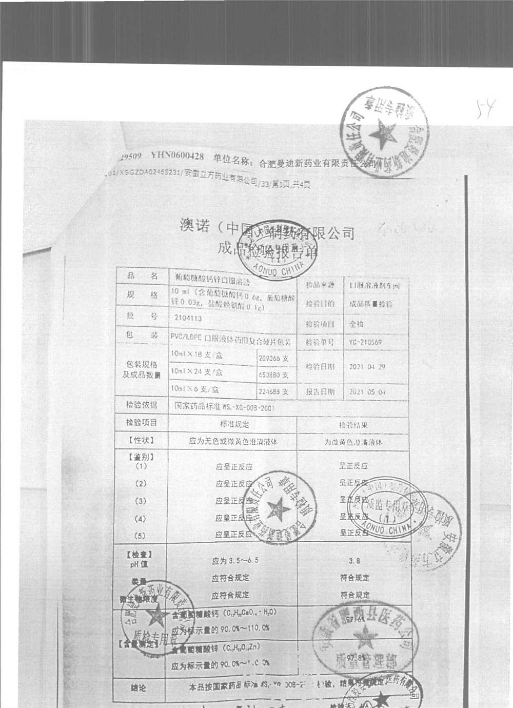 药检报告