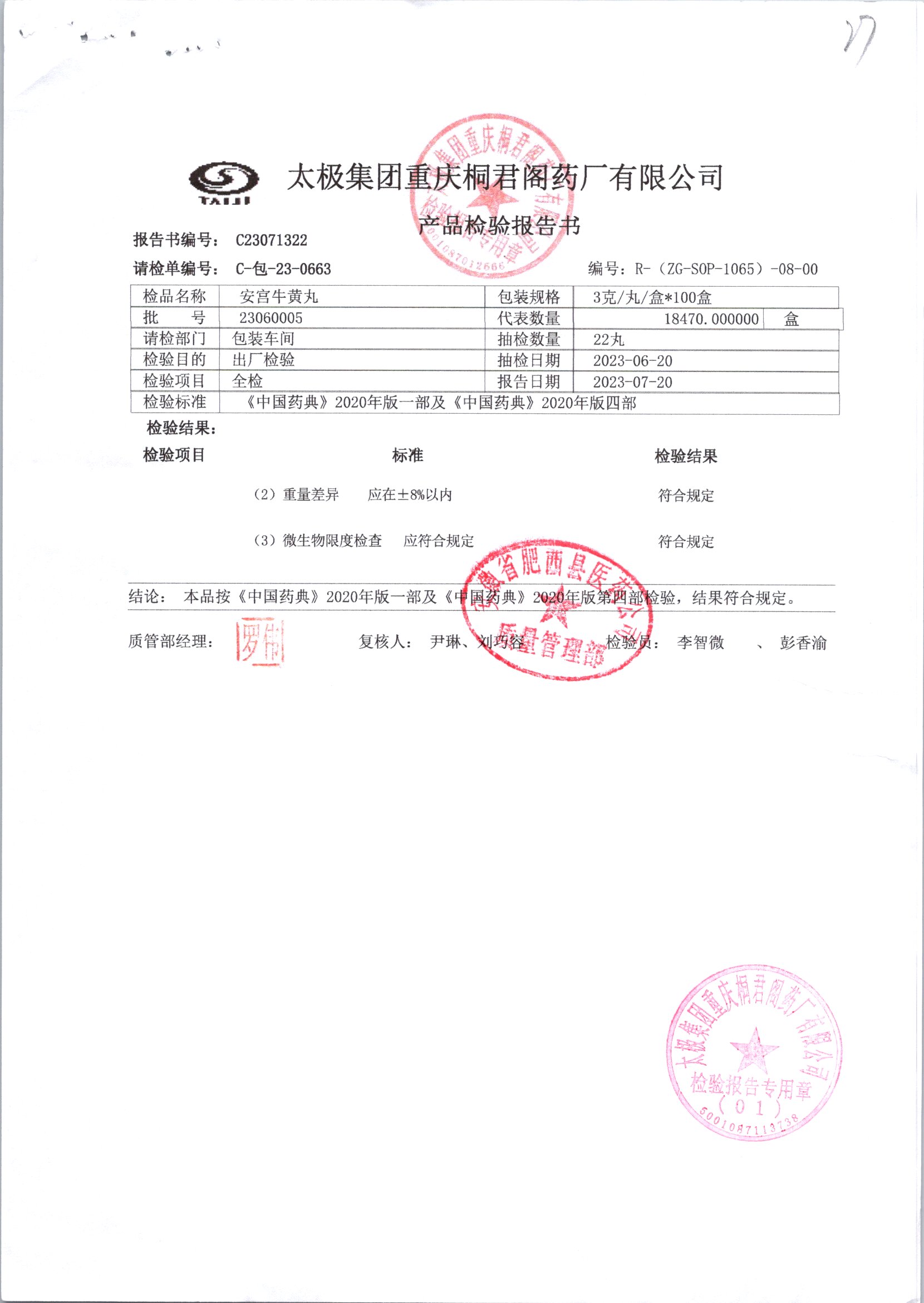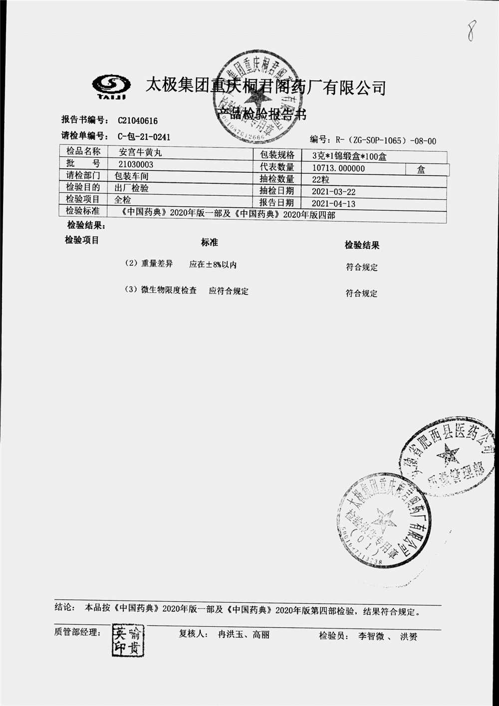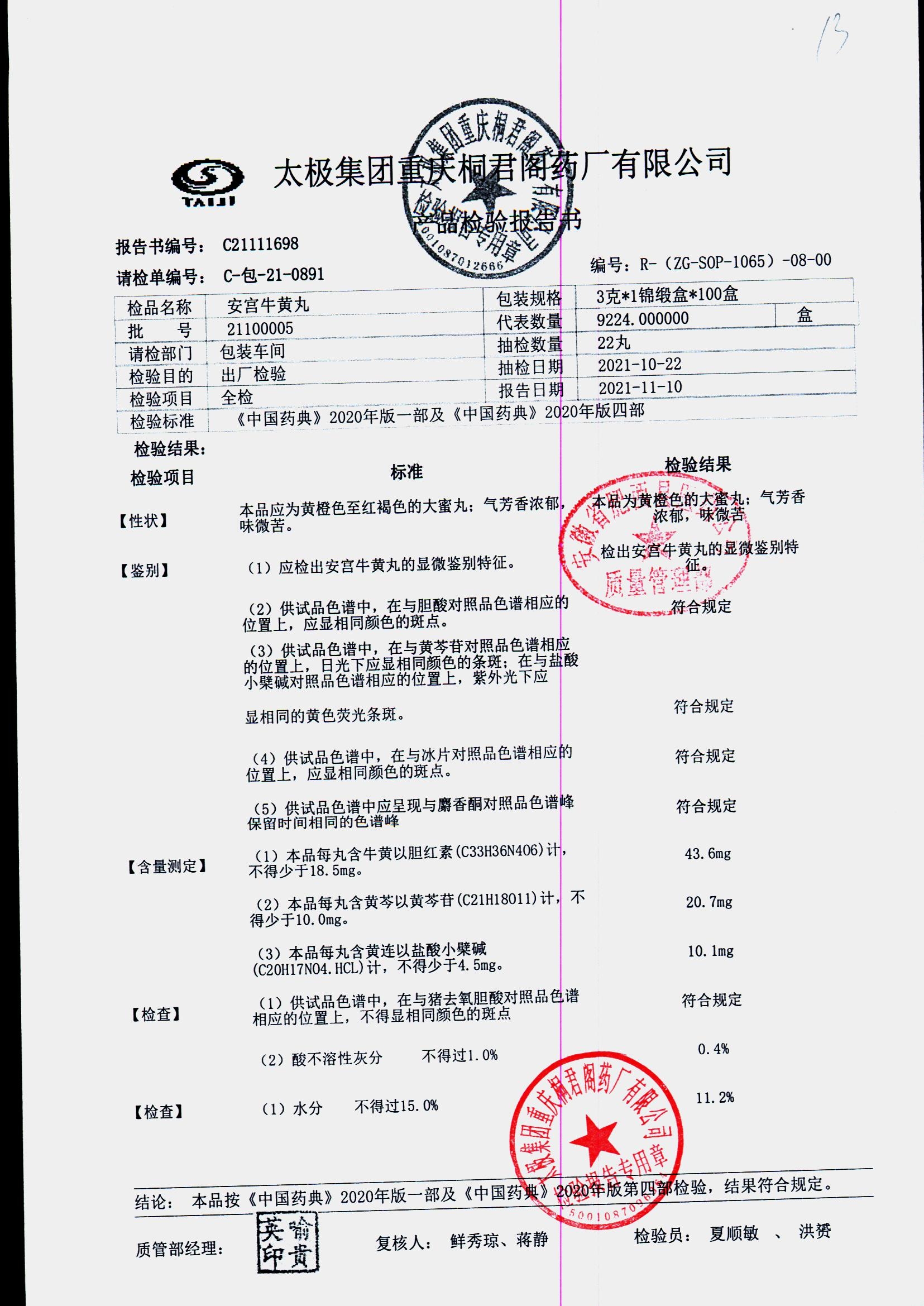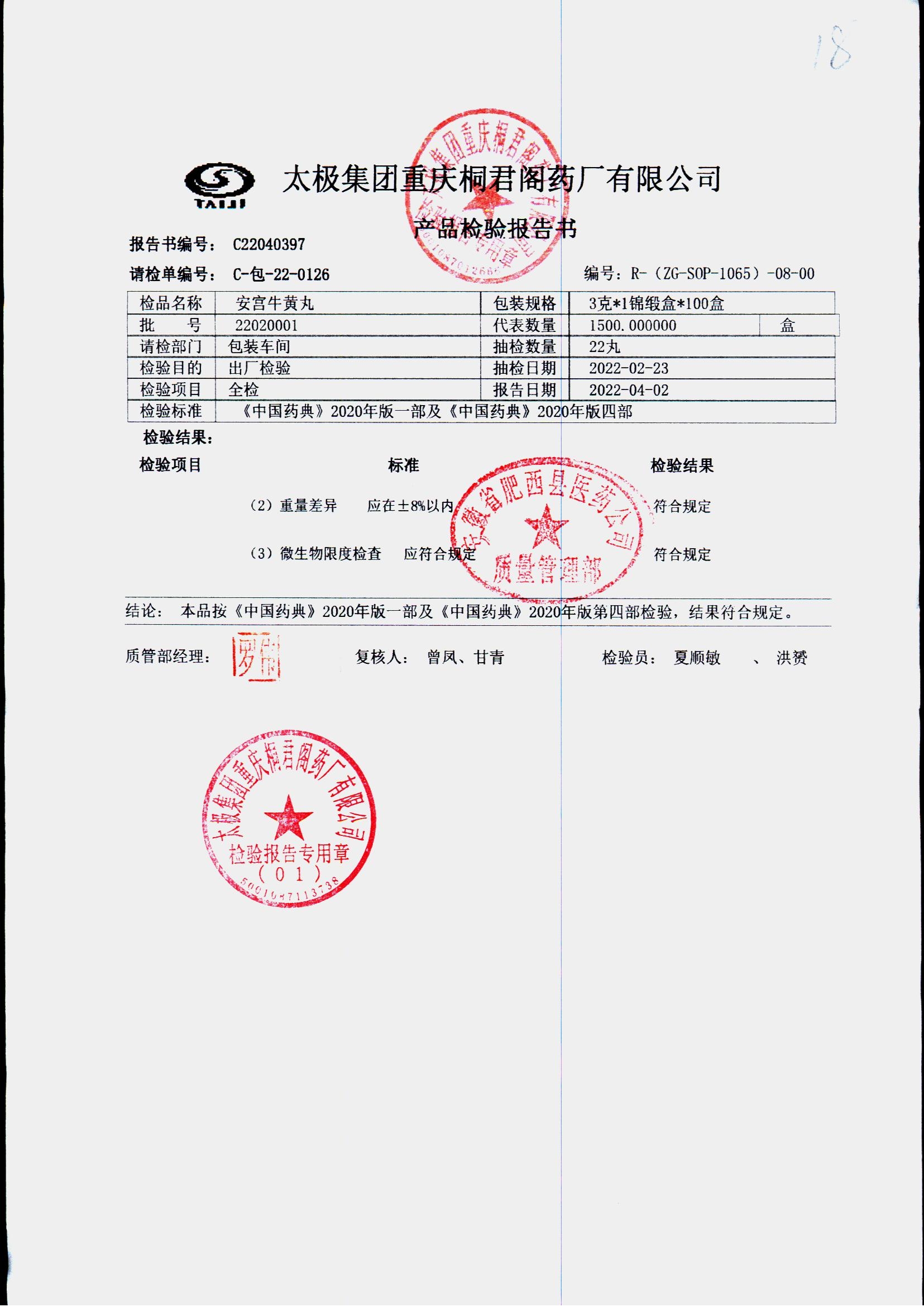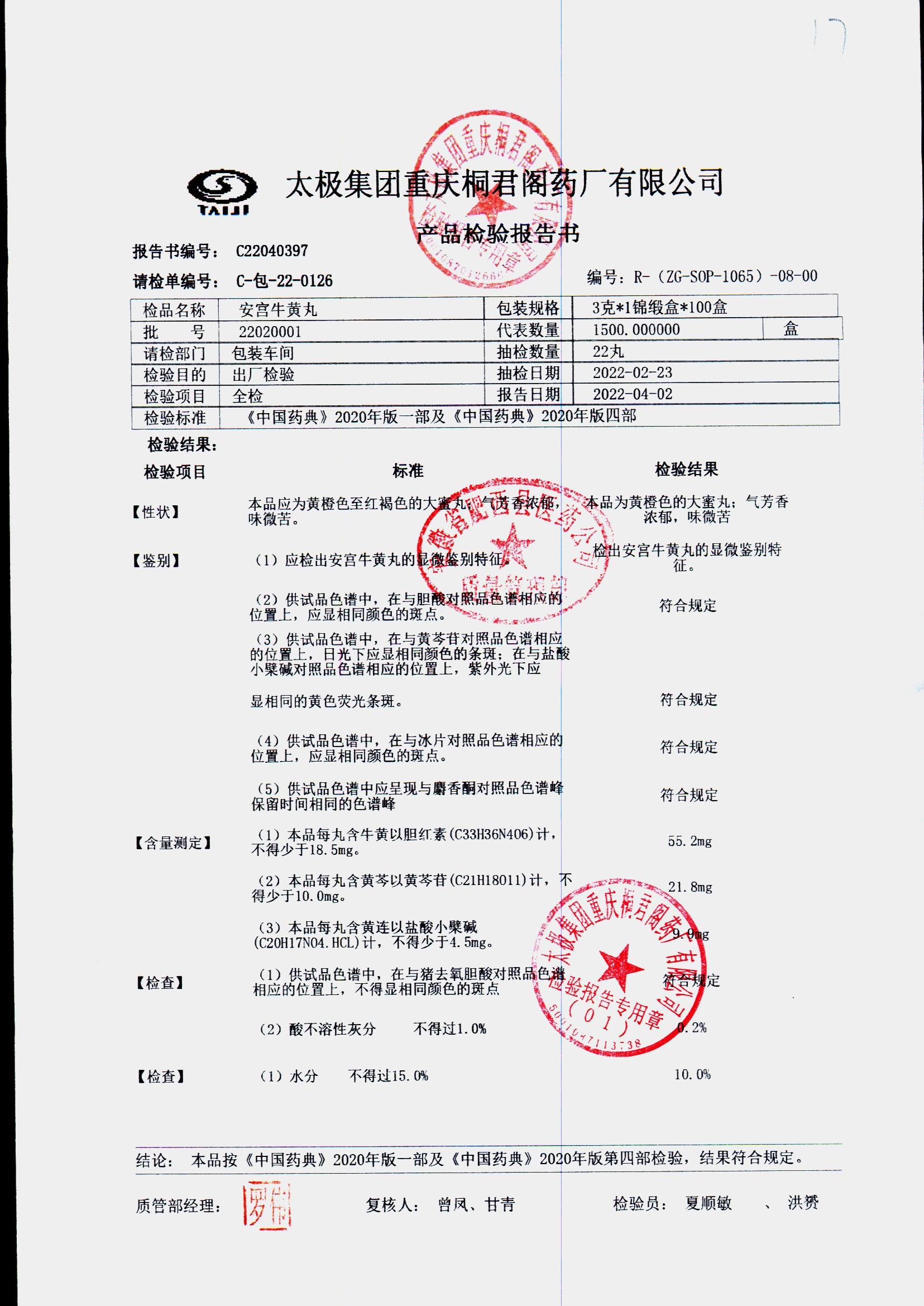 | 安宫牛黄丸 | 每丸重3g*1丸 | 22020001/2 | 查看详情 |