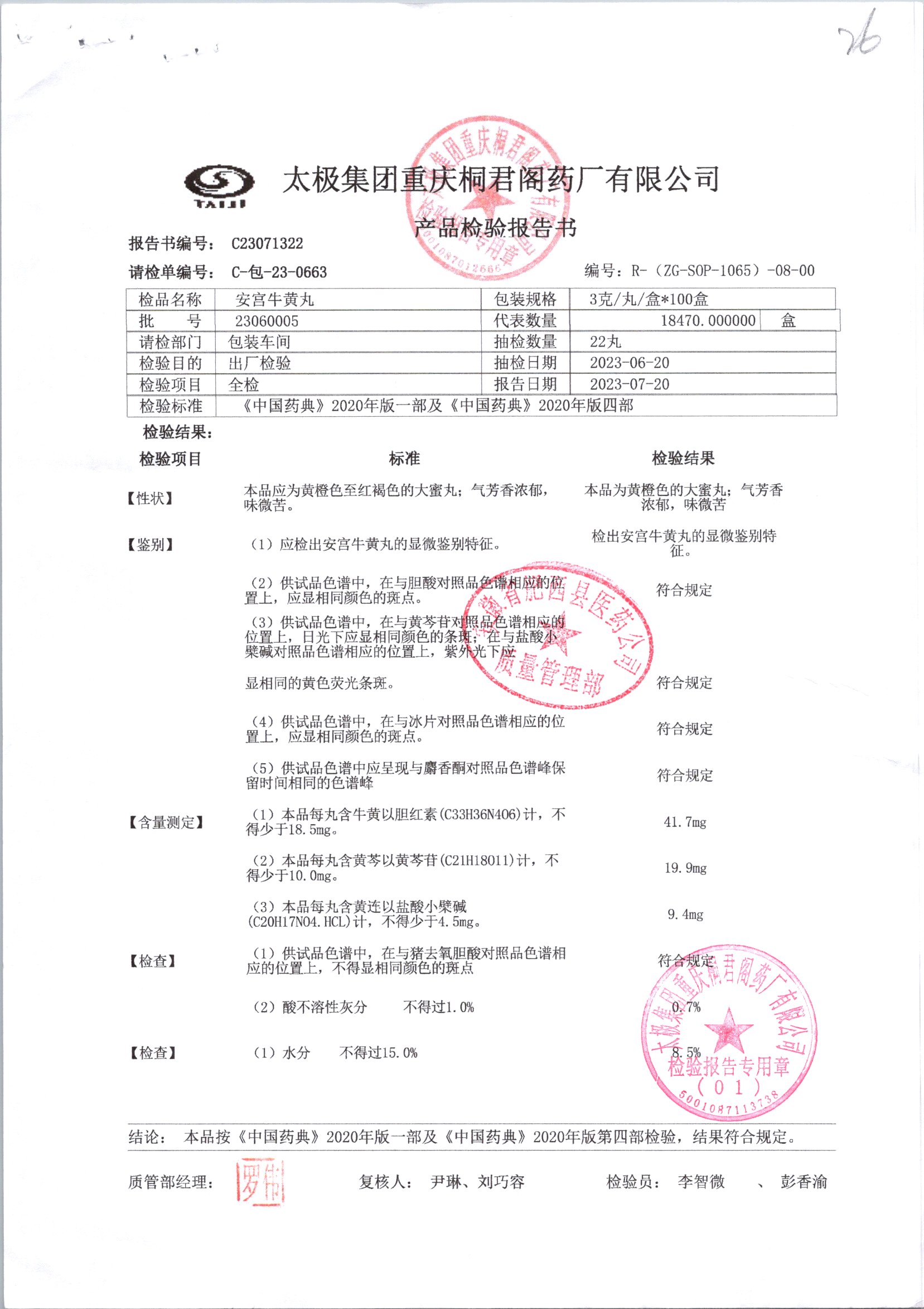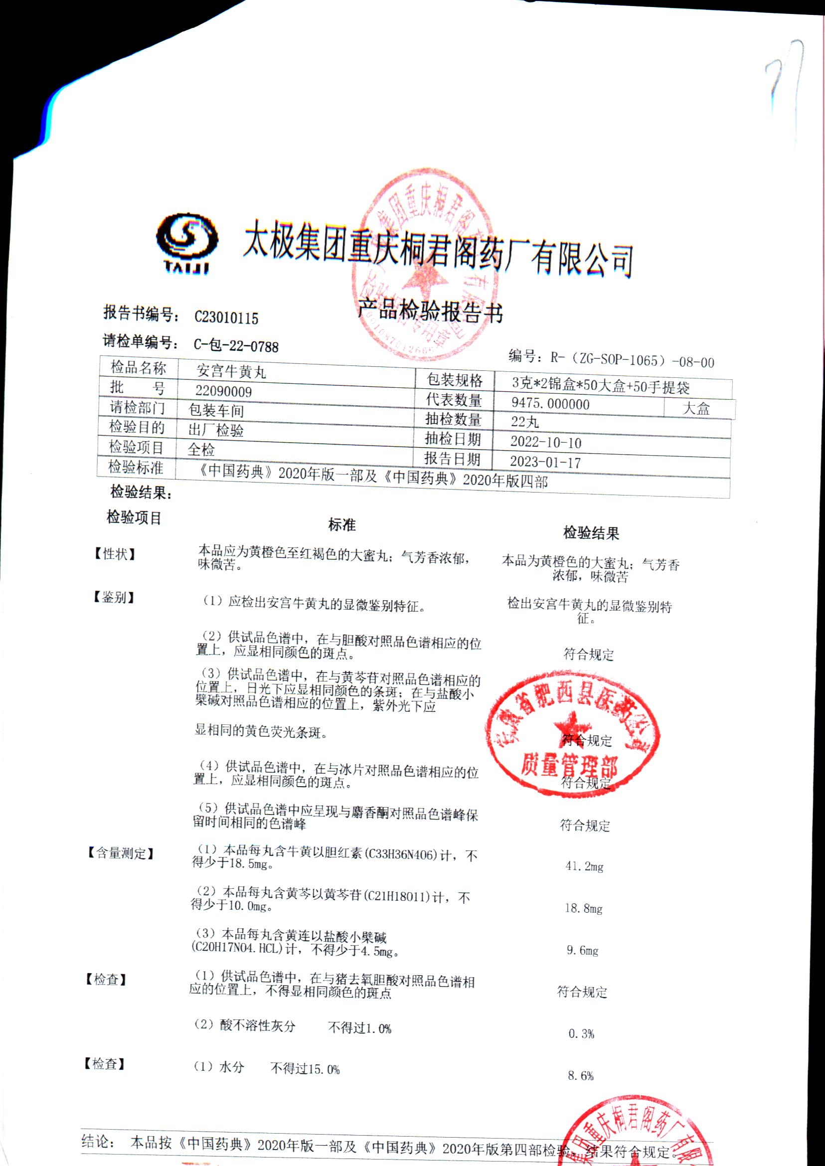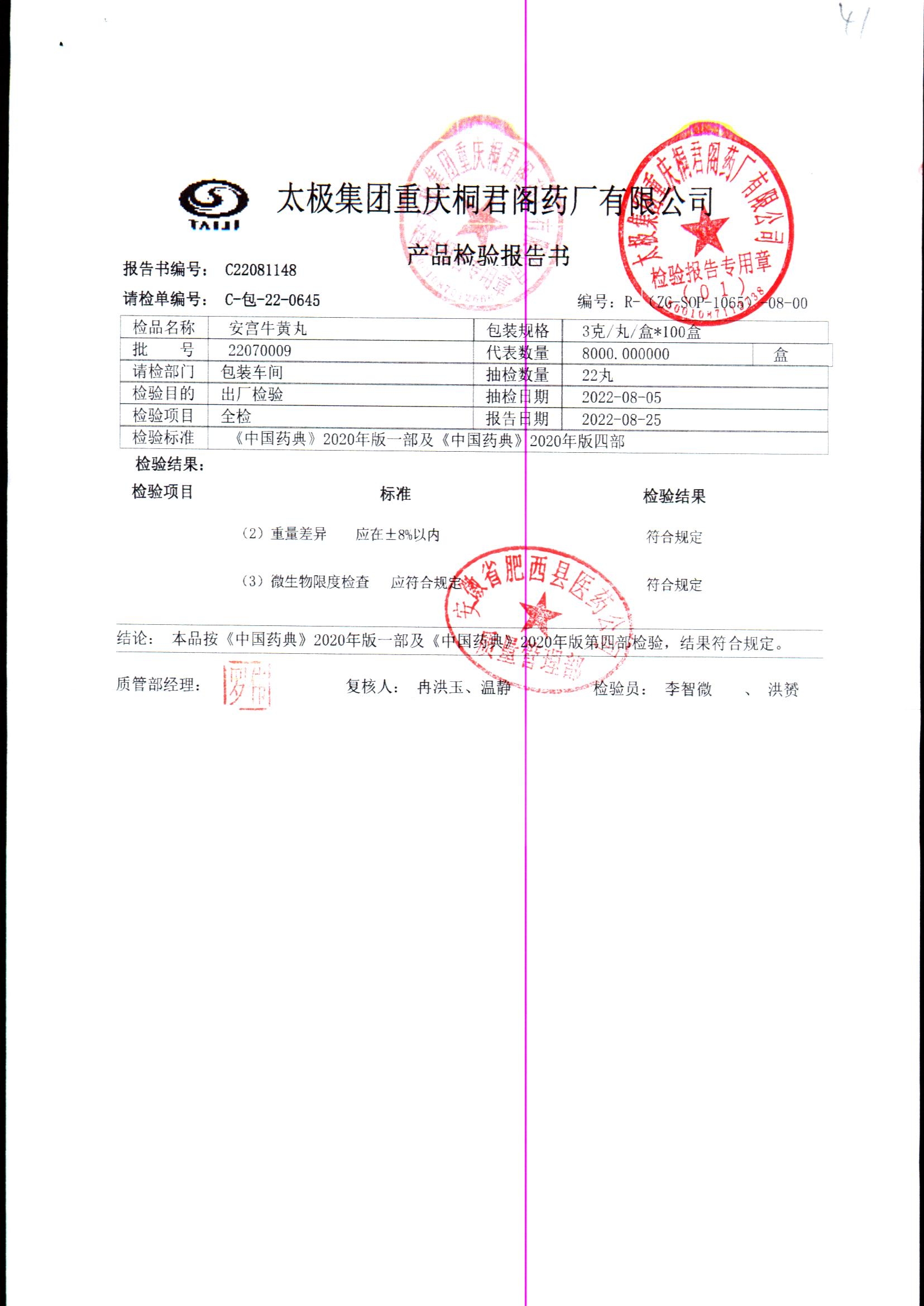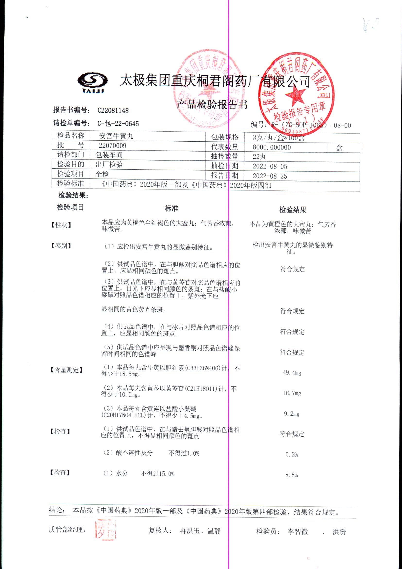 | 安宫牛黄丸 | 每丸重3g*1丸 | 22070009/2 | 查看详情 |