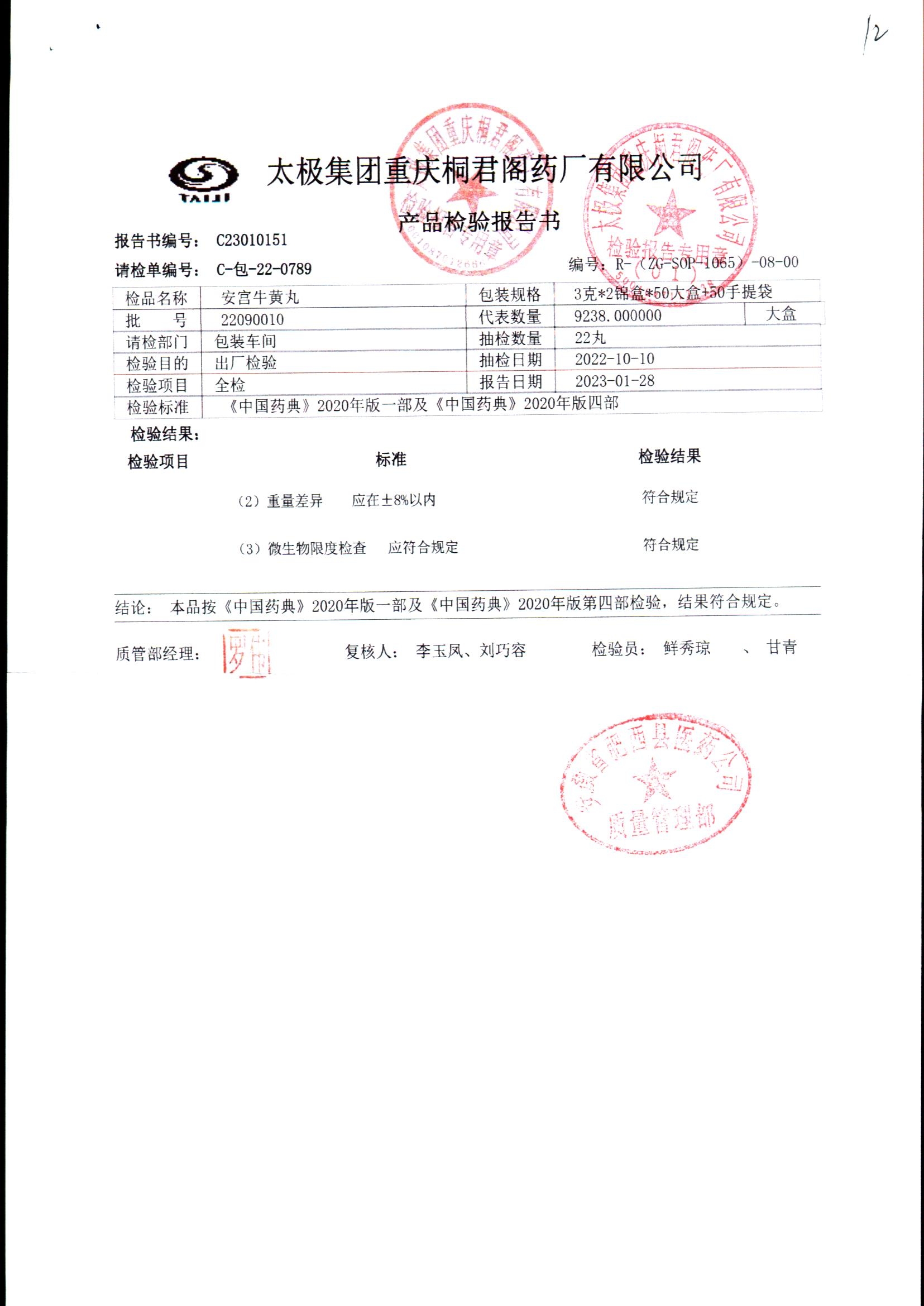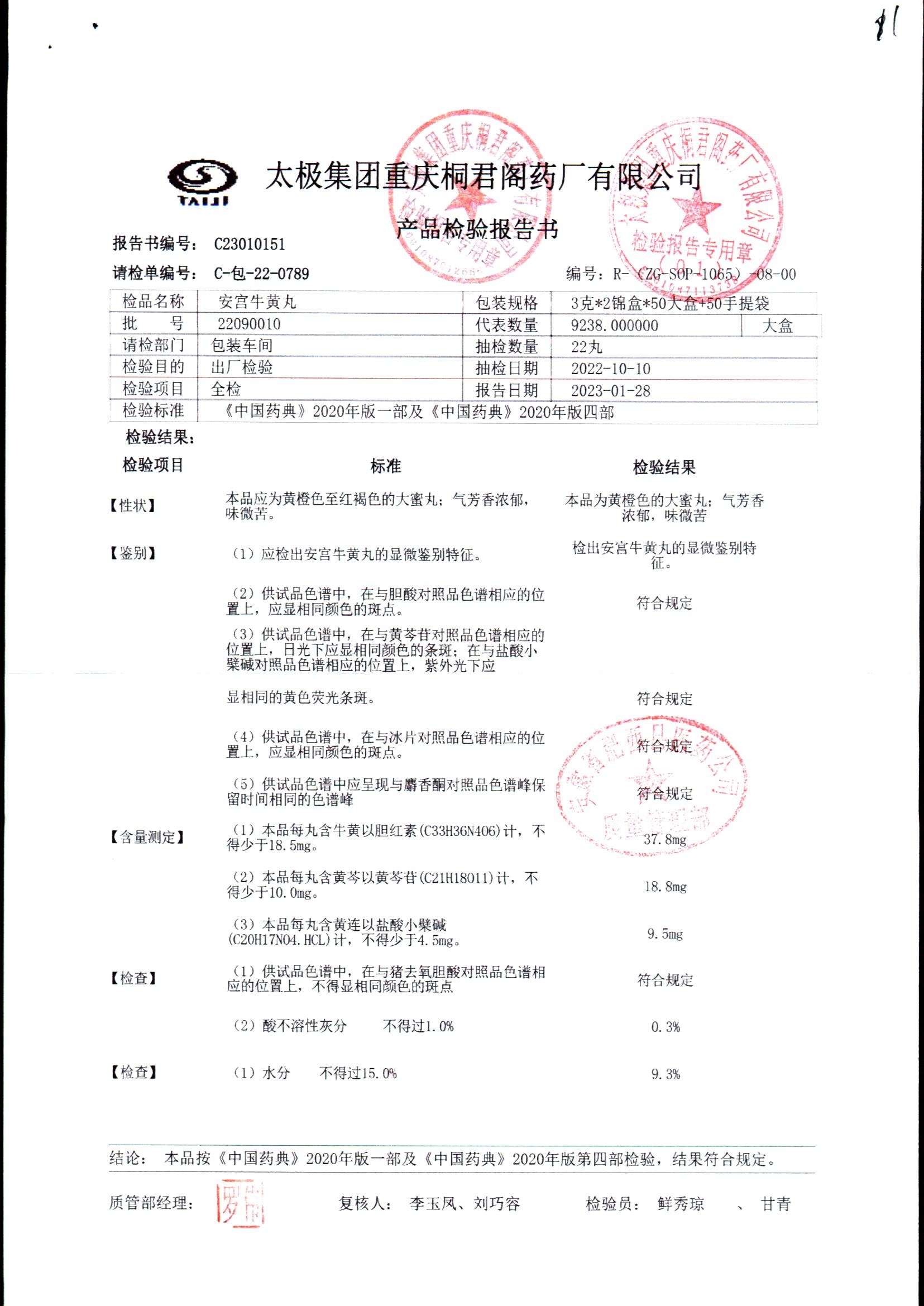 | 安宫牛黄丸 | 每丸重3g*1丸 | 22090009/2 | 查看详情 |