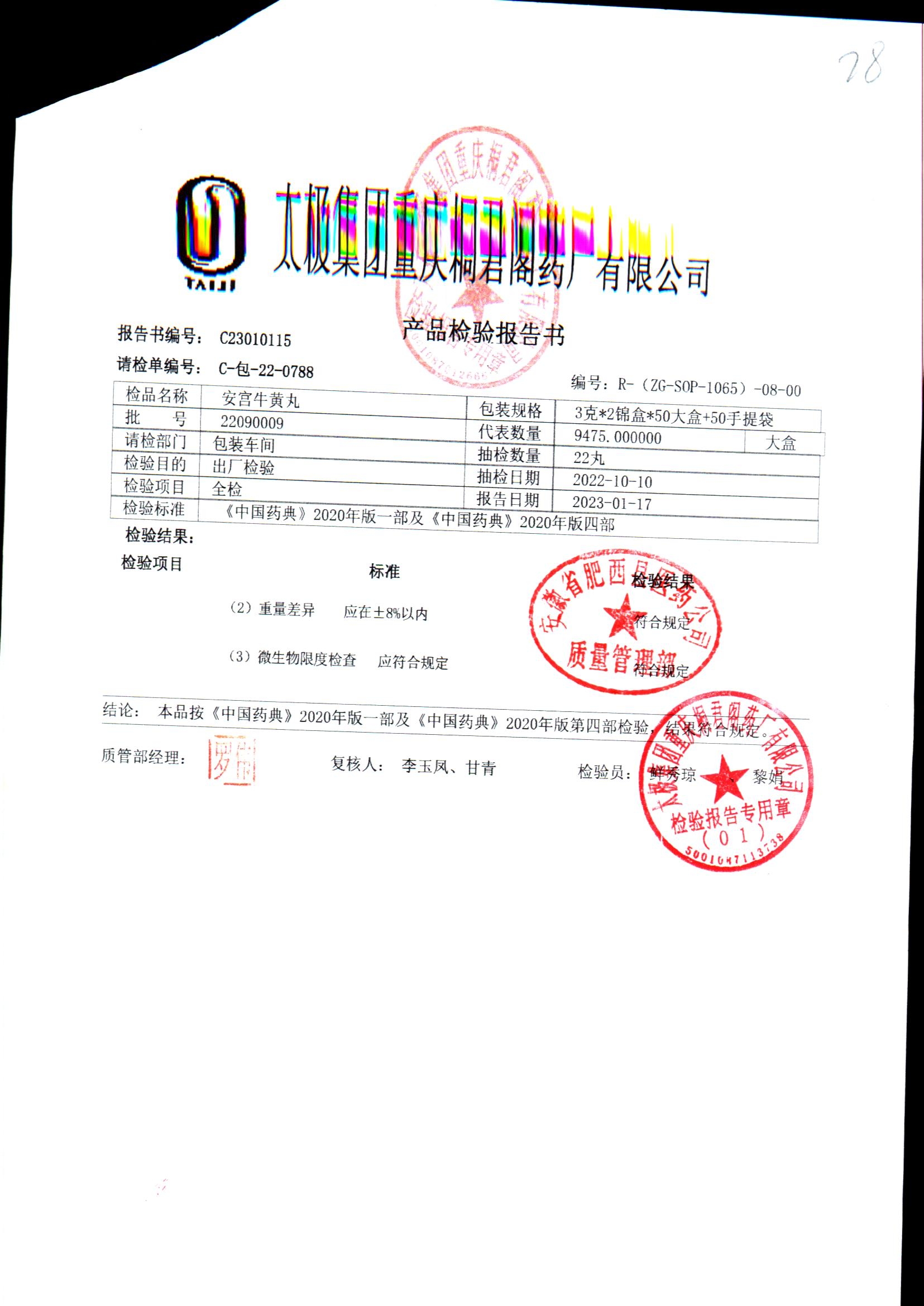 | 安宫牛黄丸 | 每丸重3g*1丸 | 22070009/1 | 查看详情 |