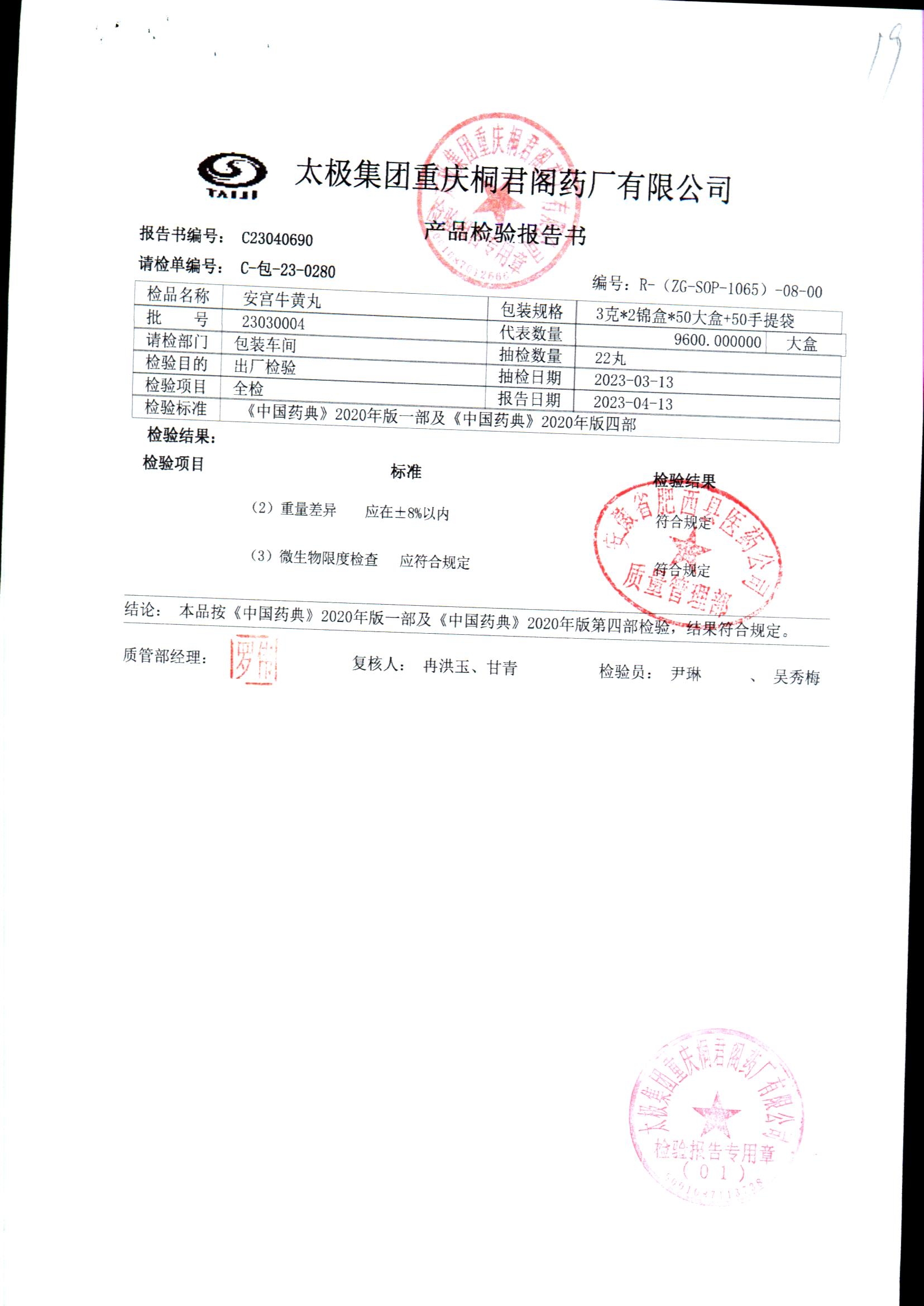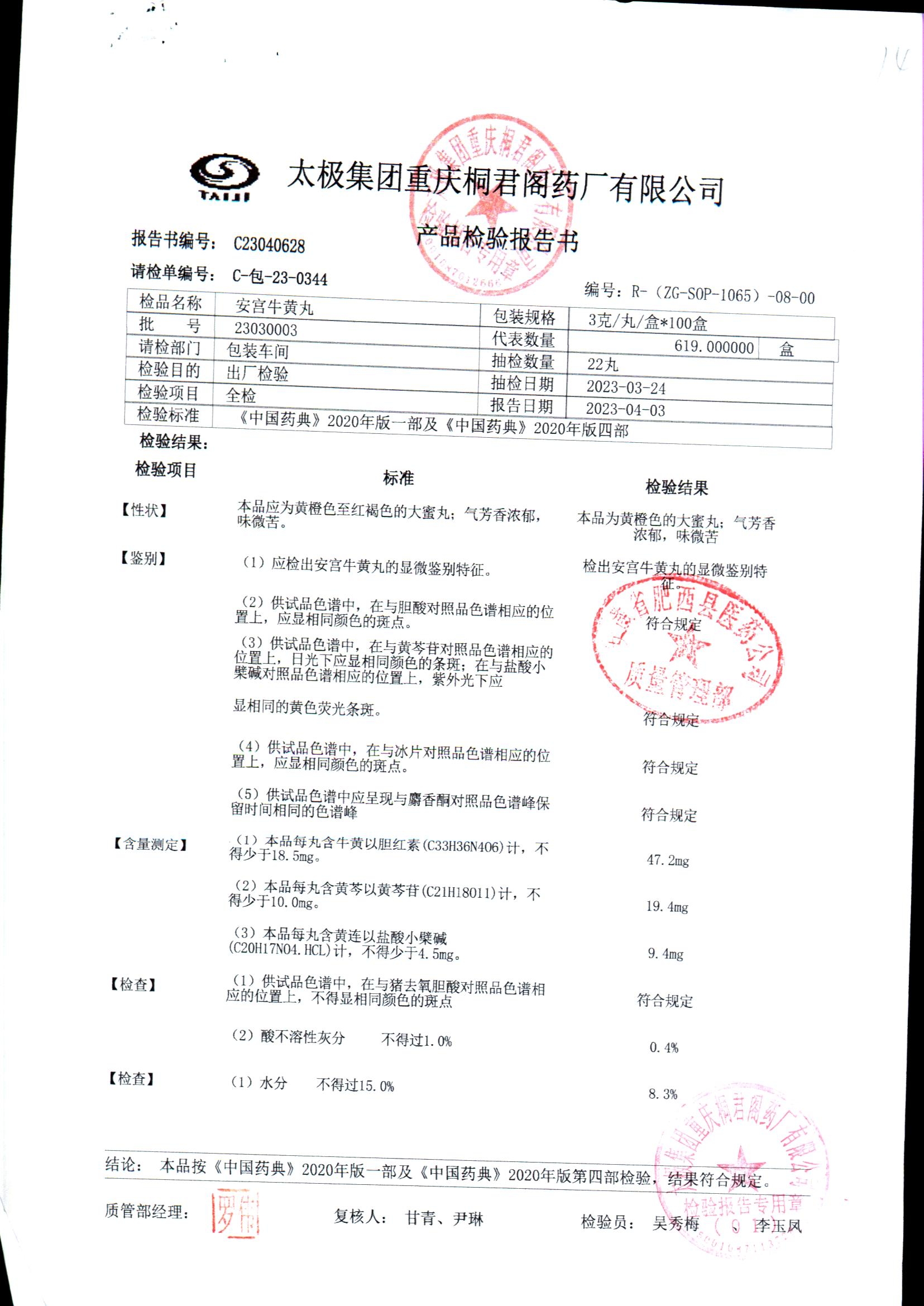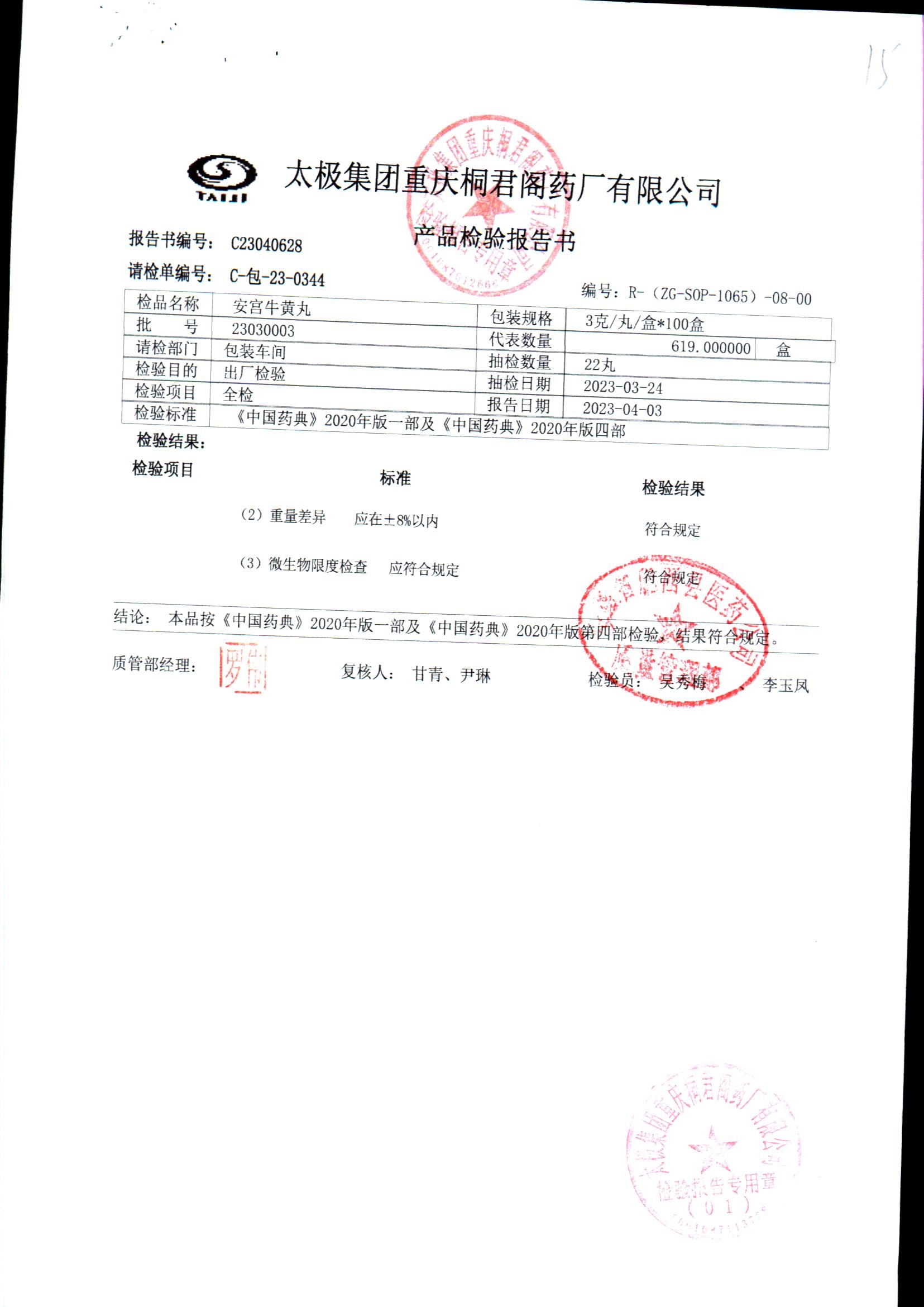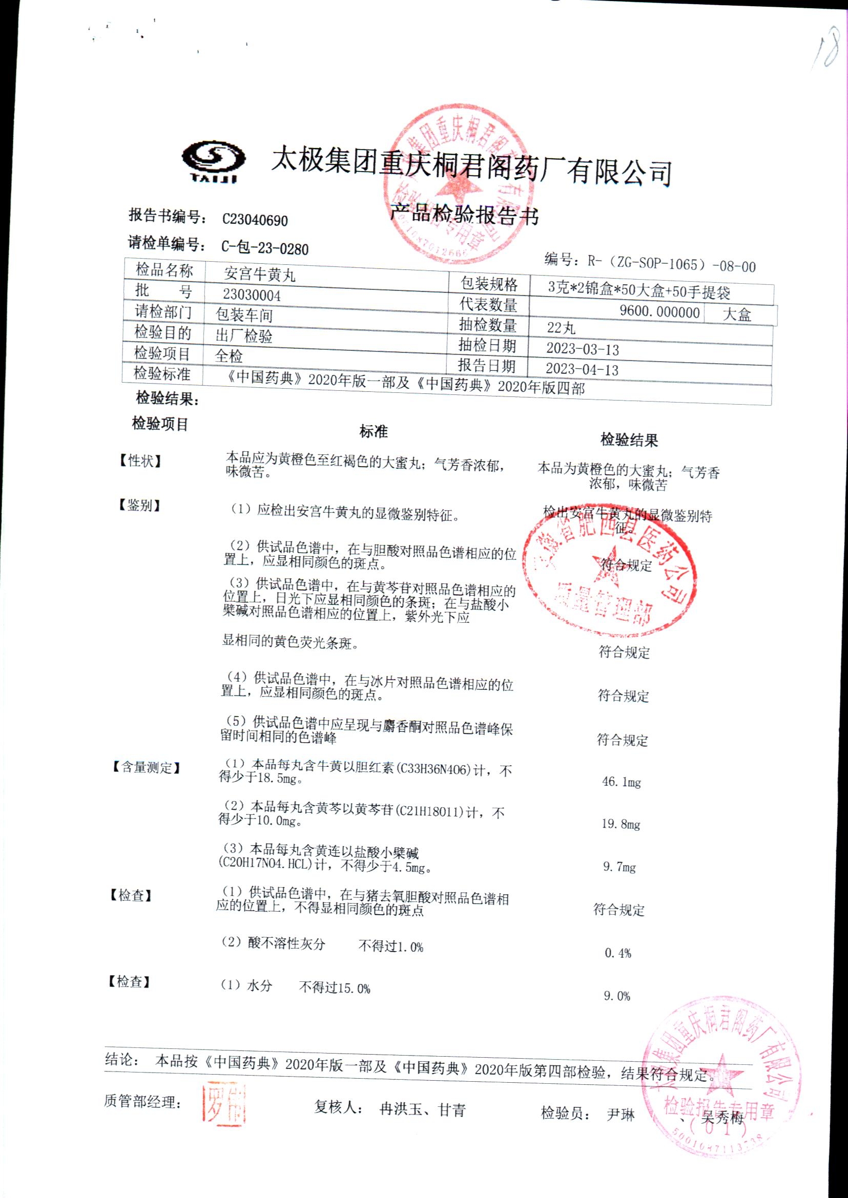 | 安宫牛黄丸 | 每丸重3g*1丸 | 23030004/2 | 查看详情 |