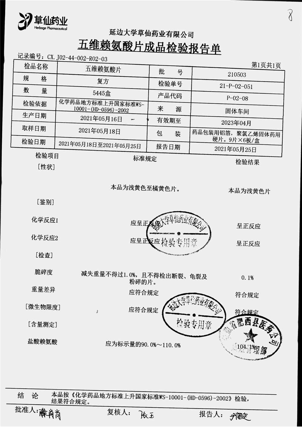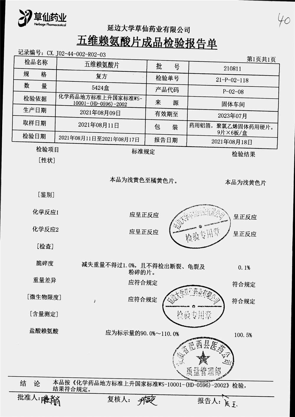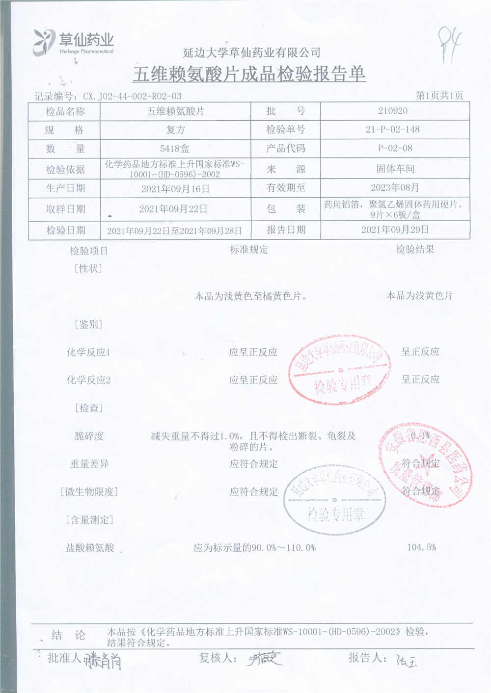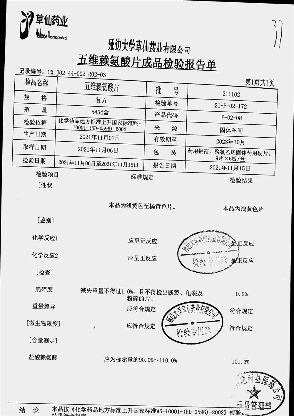 | 五维赖氨酸片 | 9片*6板*3盒 | 210711 | 查看详情 |