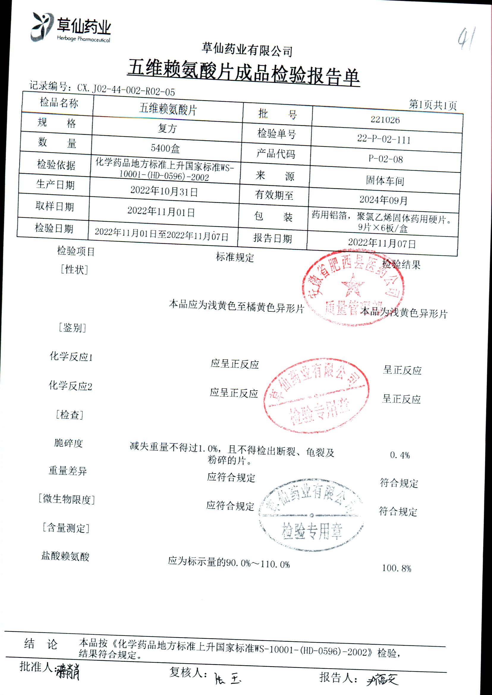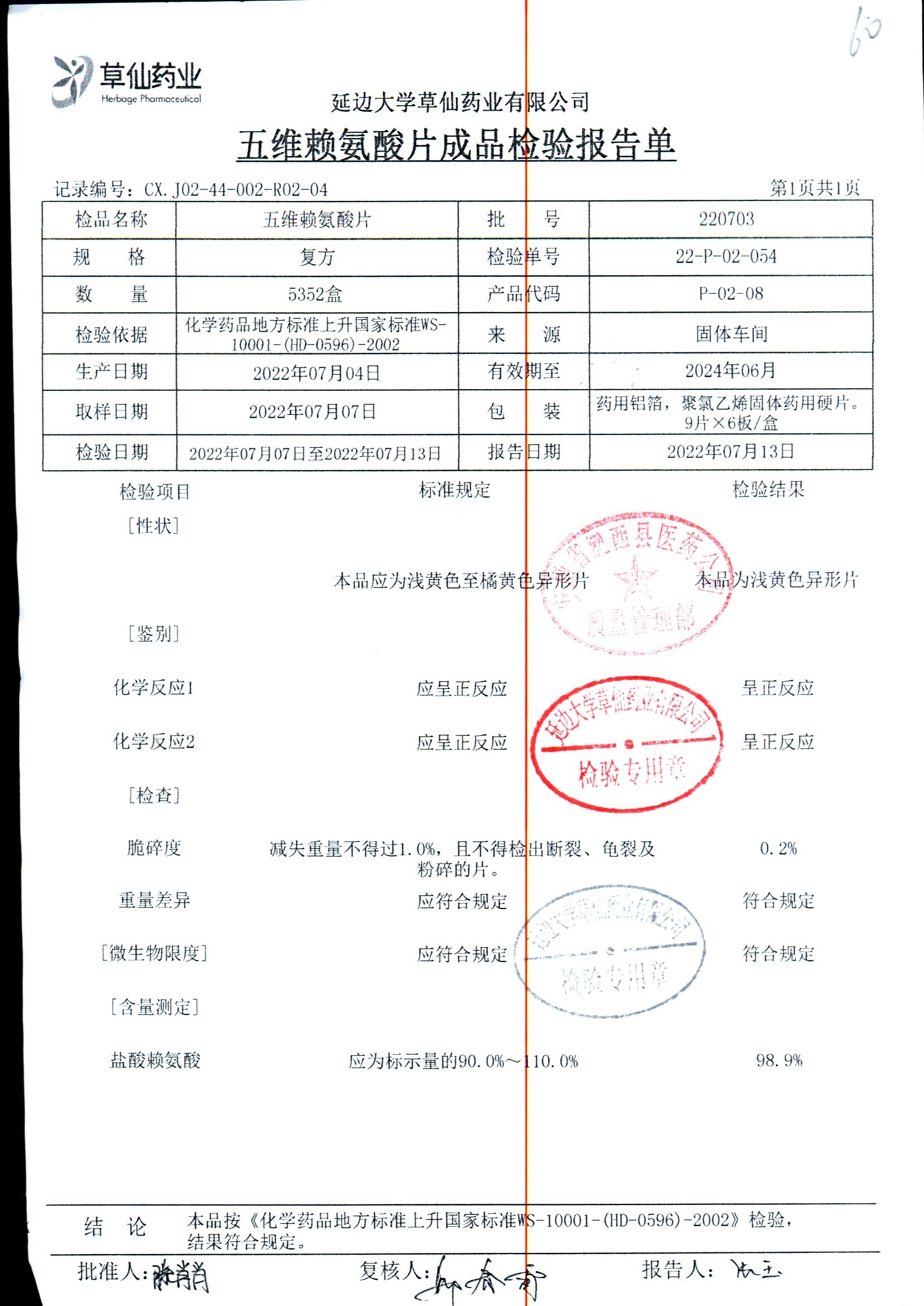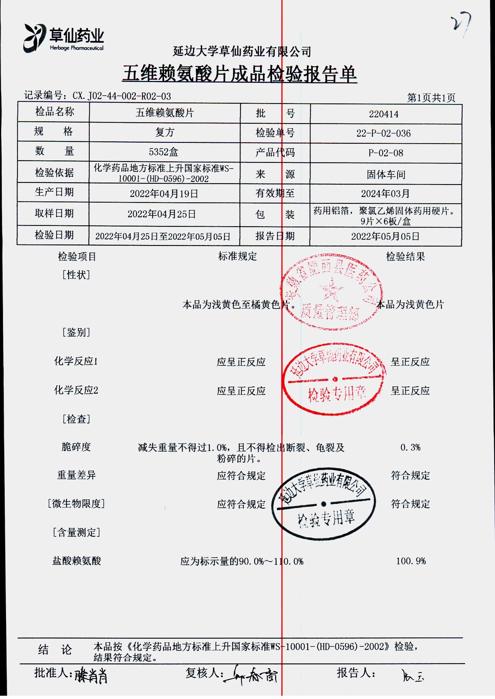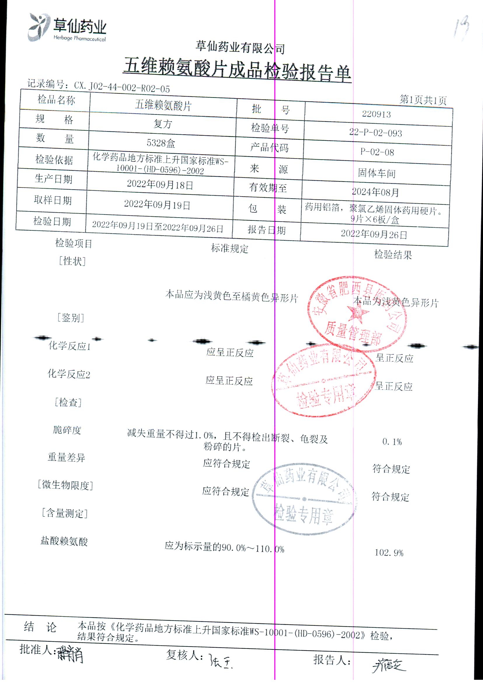 | 五维赖氨酸片 | 9片*6板*3盒 | 220913 | 查看详情 |