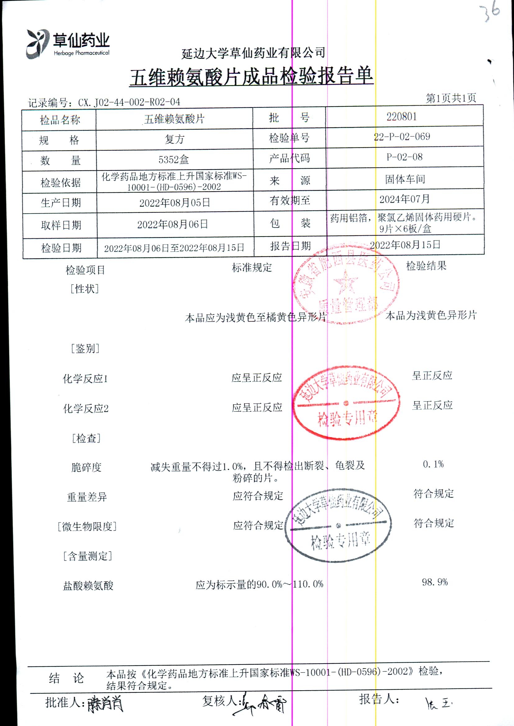 | 五维赖氨酸片 | 9片*6板*3盒 | 220801 | 查看详情 |
