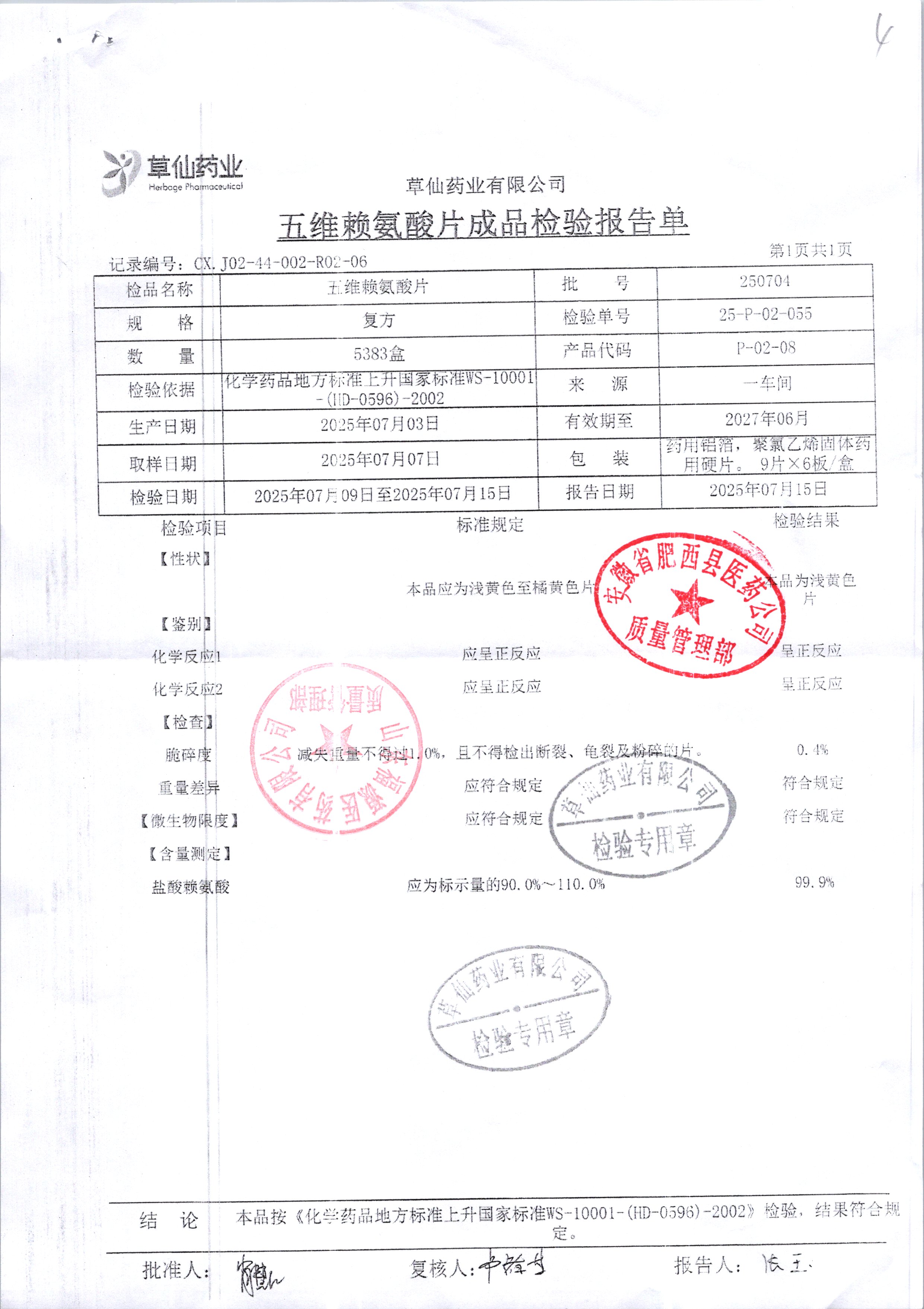 | 五维赖氨酸片 | 9片*6板*3盒 | 250704 | 查看详情 |