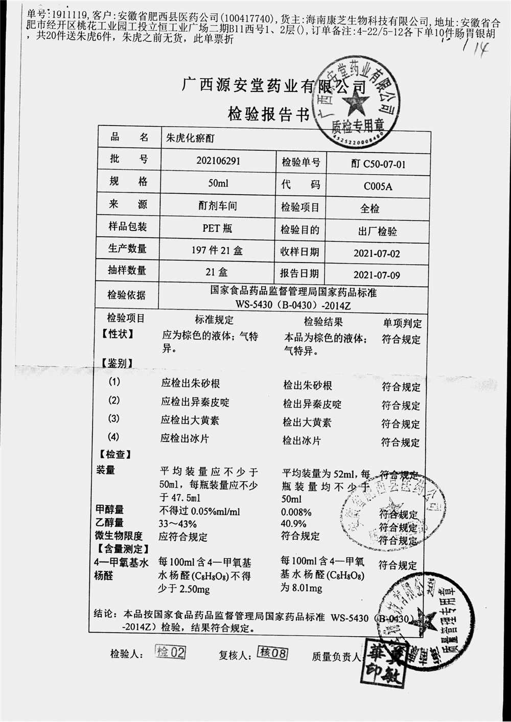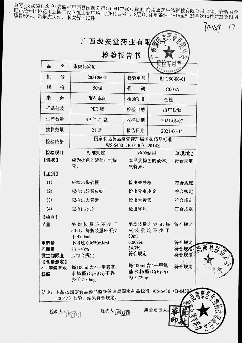 | 朱虎化瘀酊 | 50ml | 202106301 | 查看详情 |