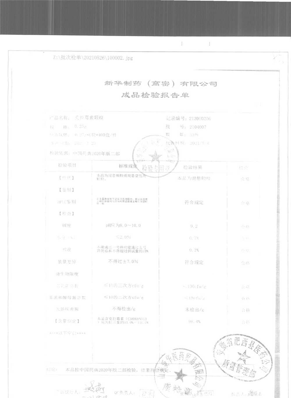 药检报告