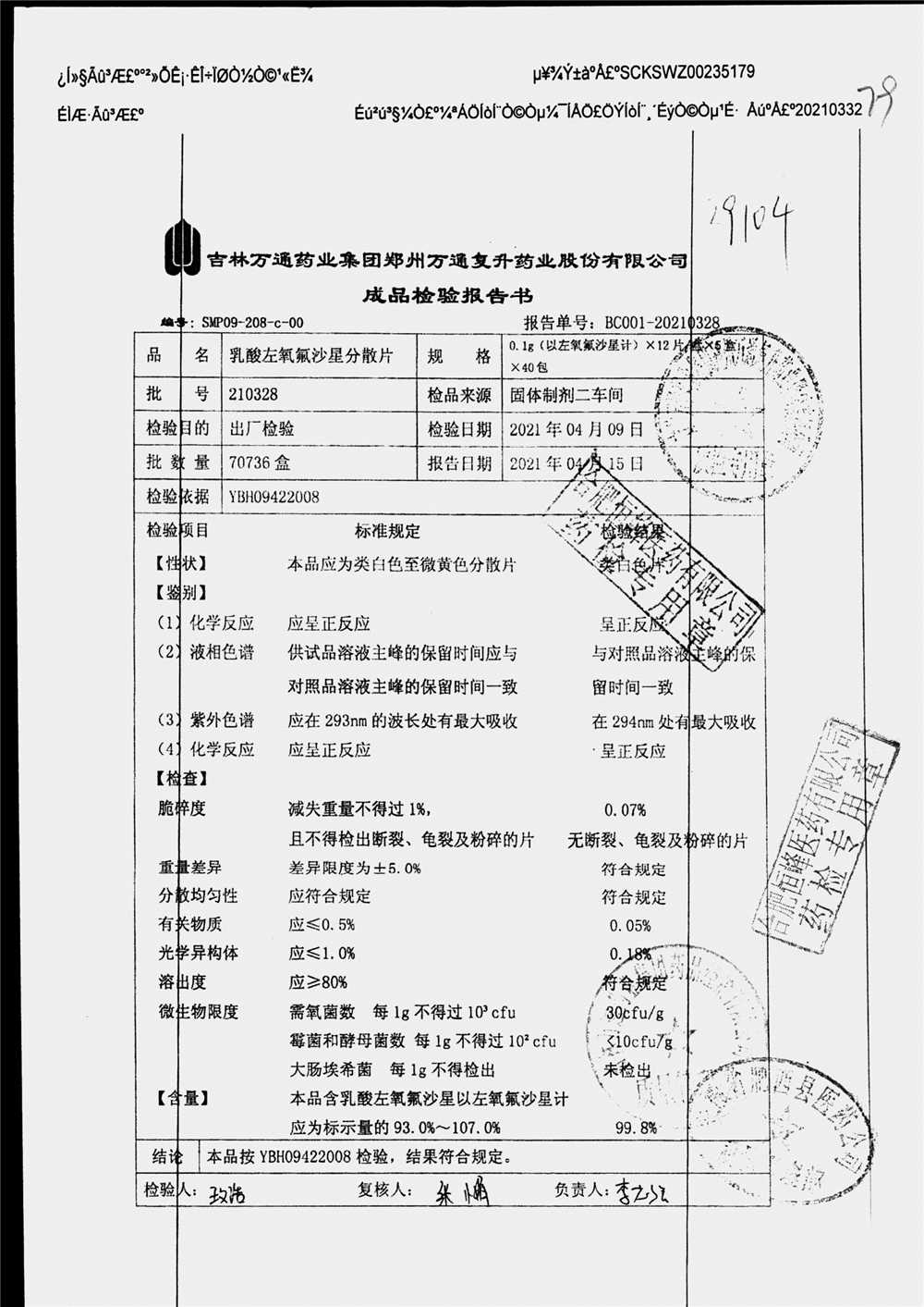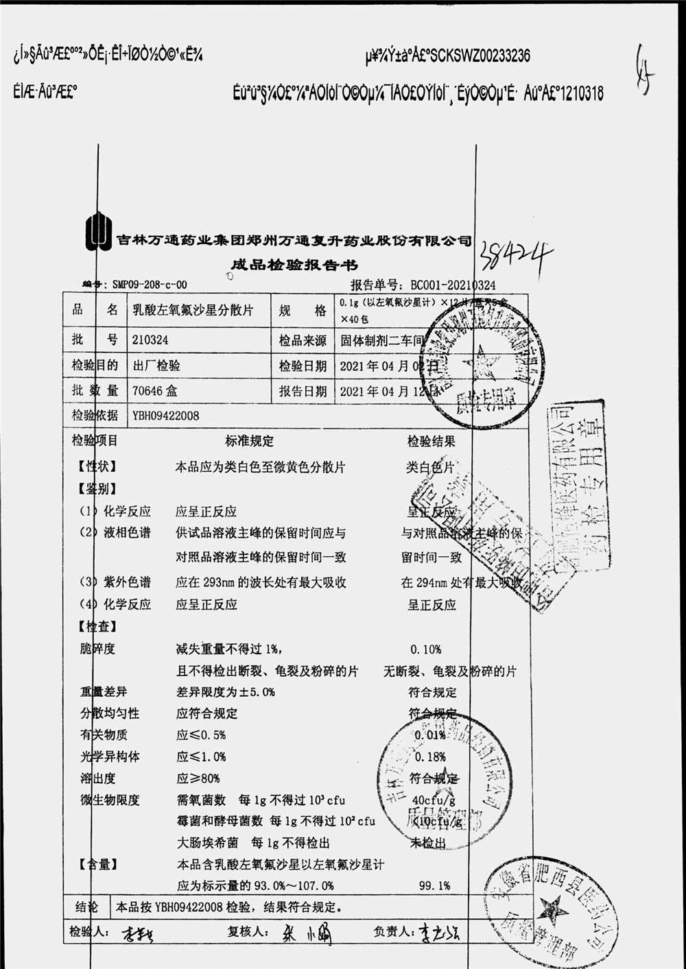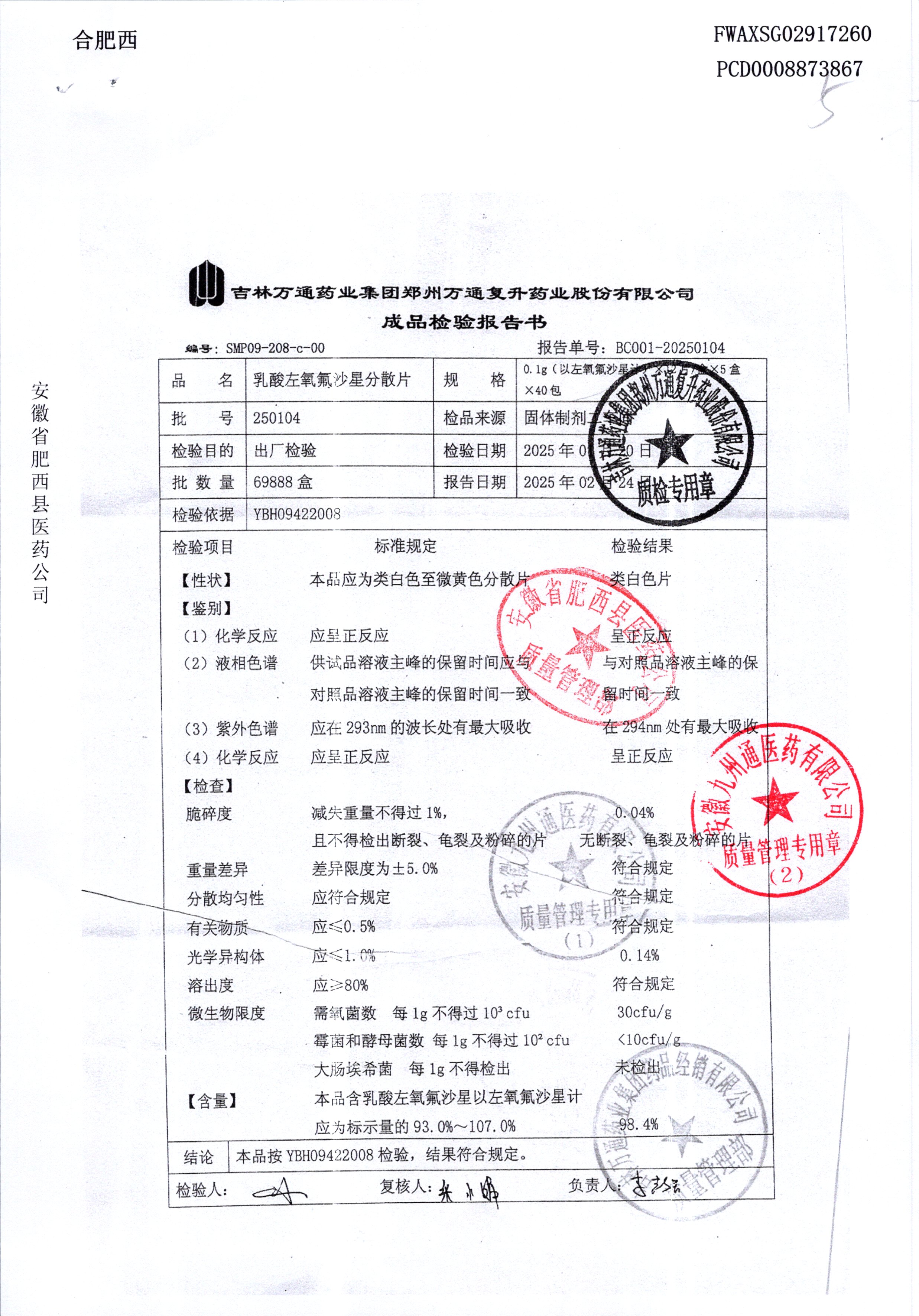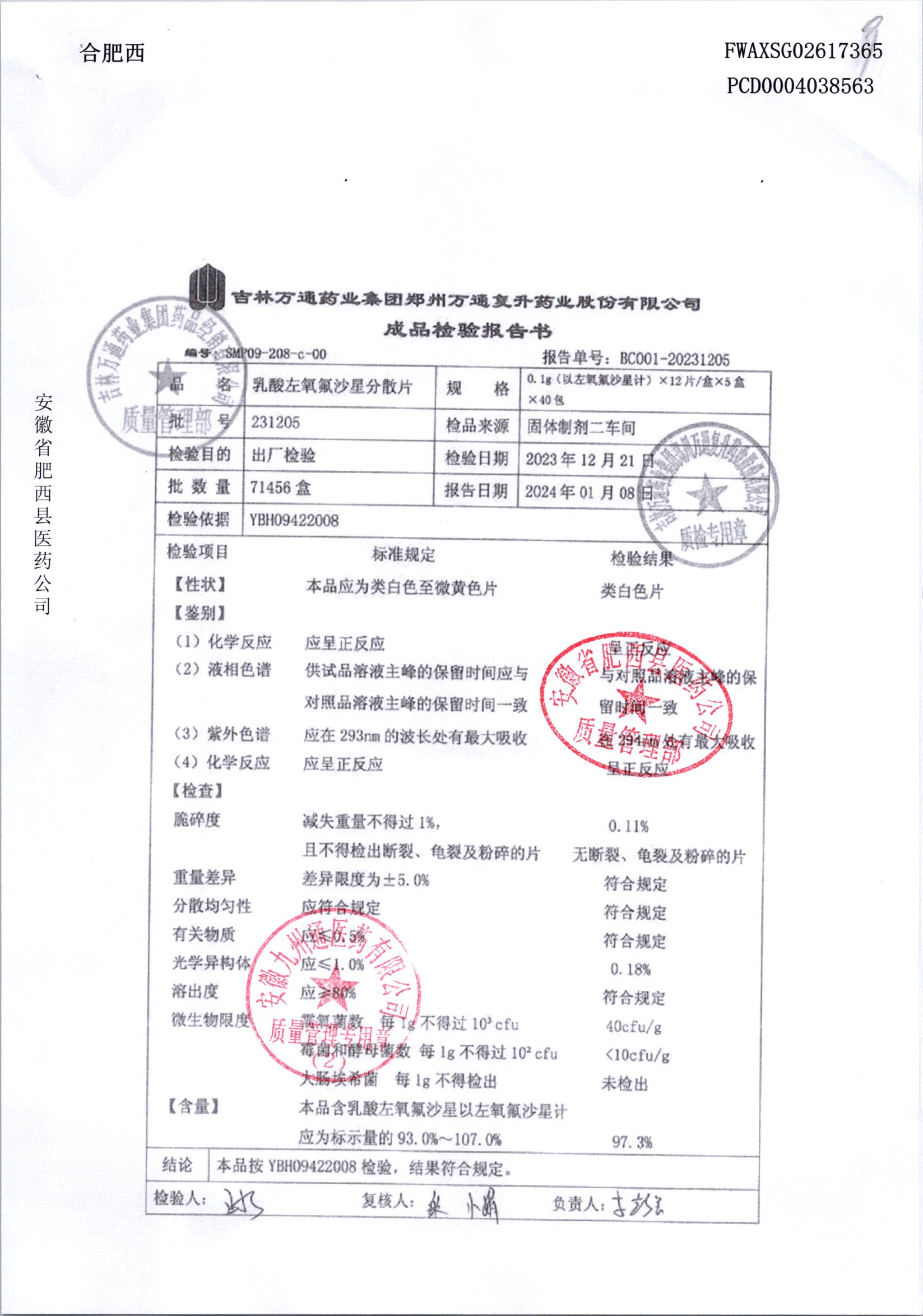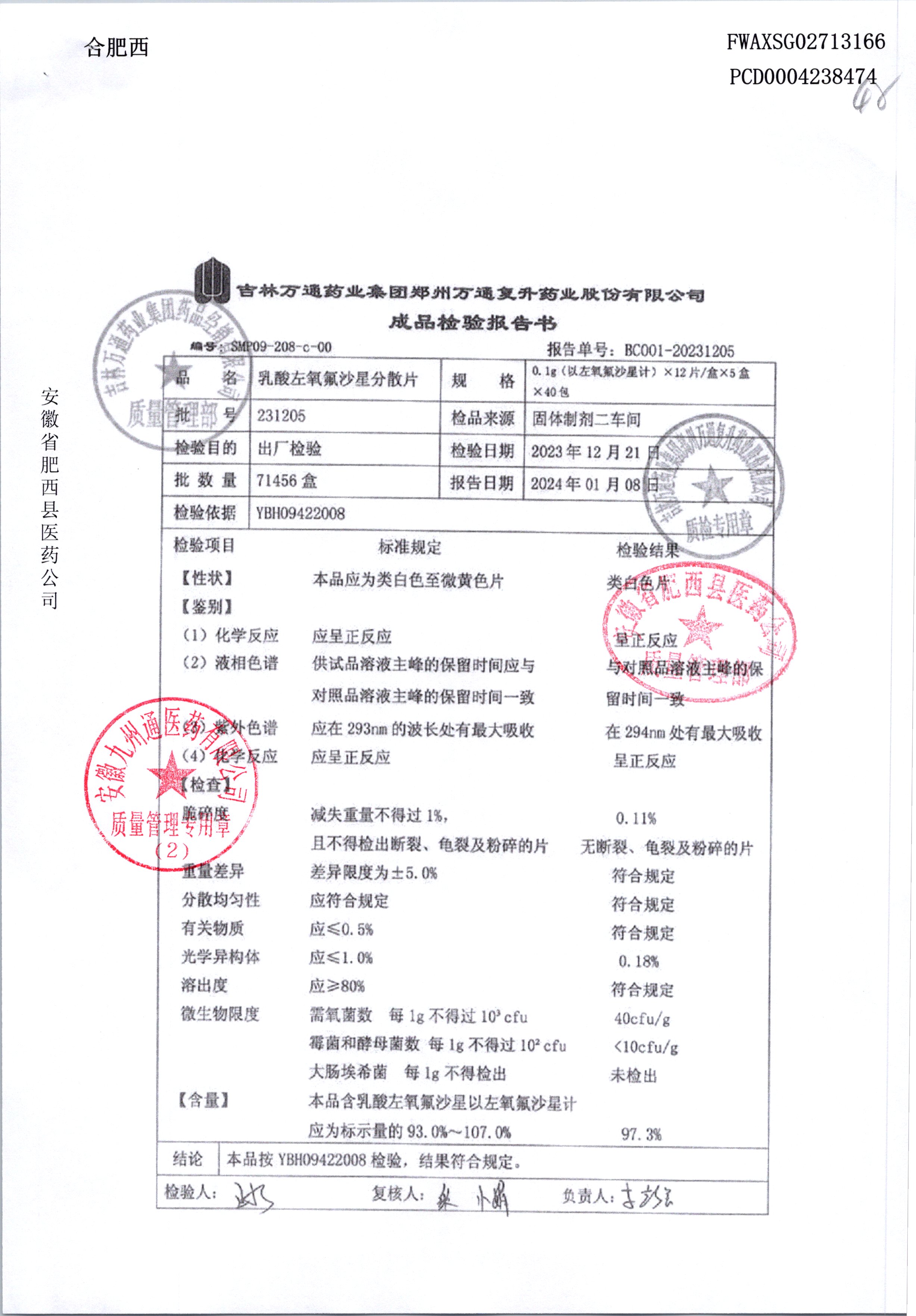 | 乳酸左氧氟沙星分散片 | 0.1g*12*5 | 240403 | 查看详情 |