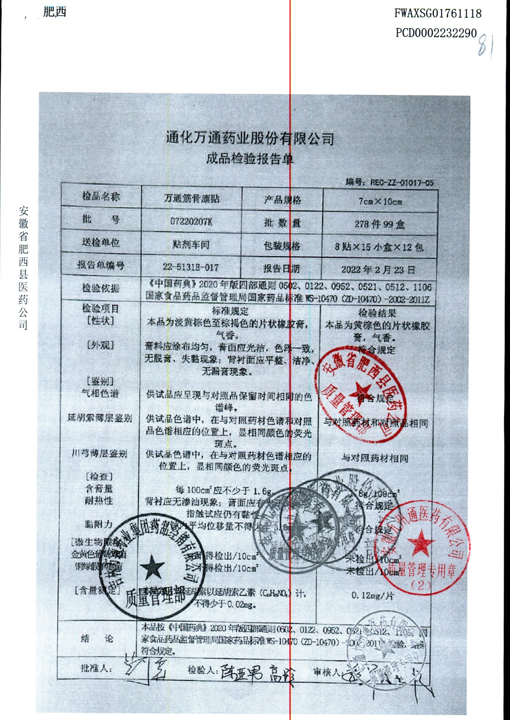 | 万通筋骨康贴 | 7cm×10cm*2贴*4袋 | 07220607K | 查看详情 |