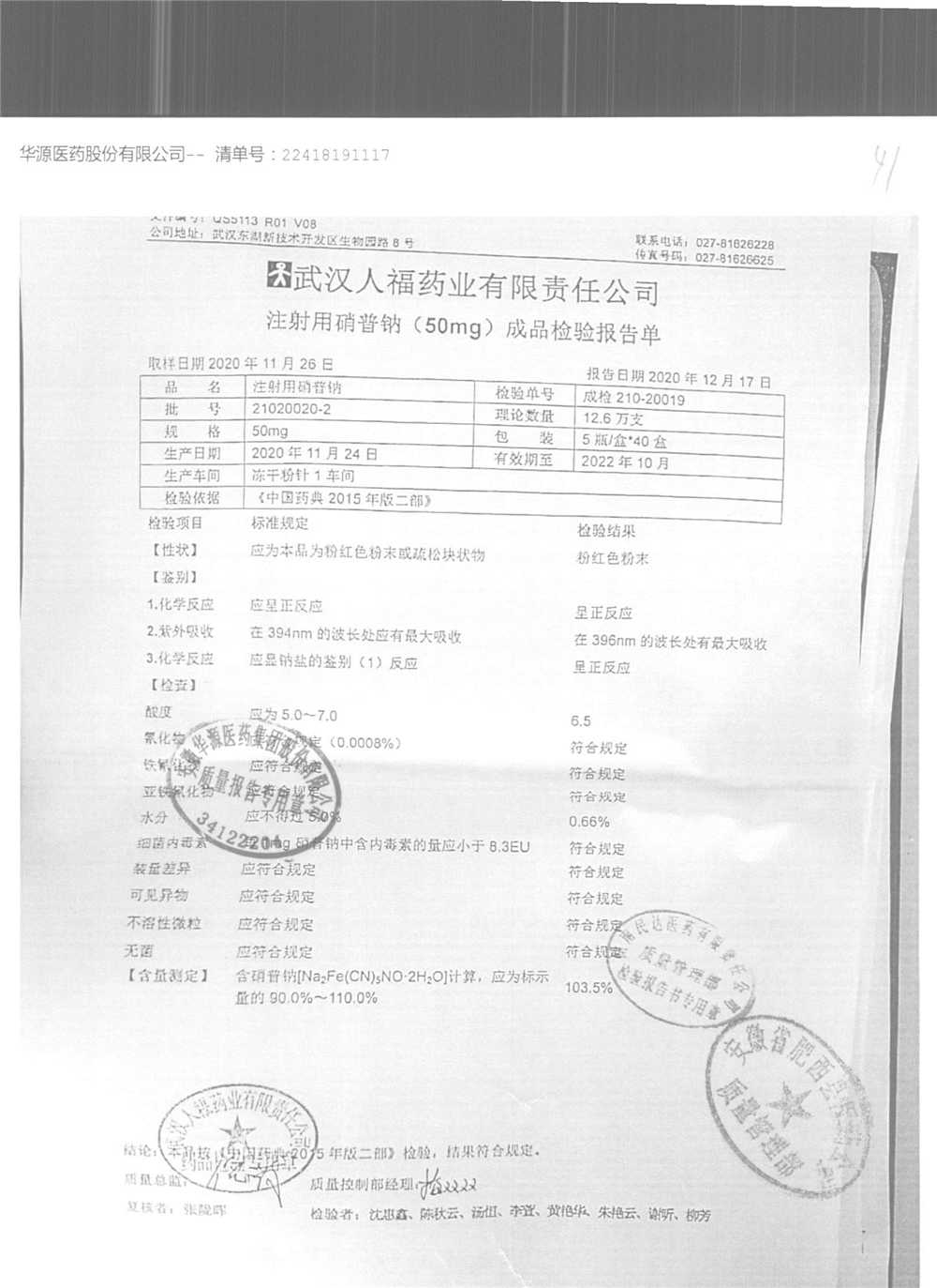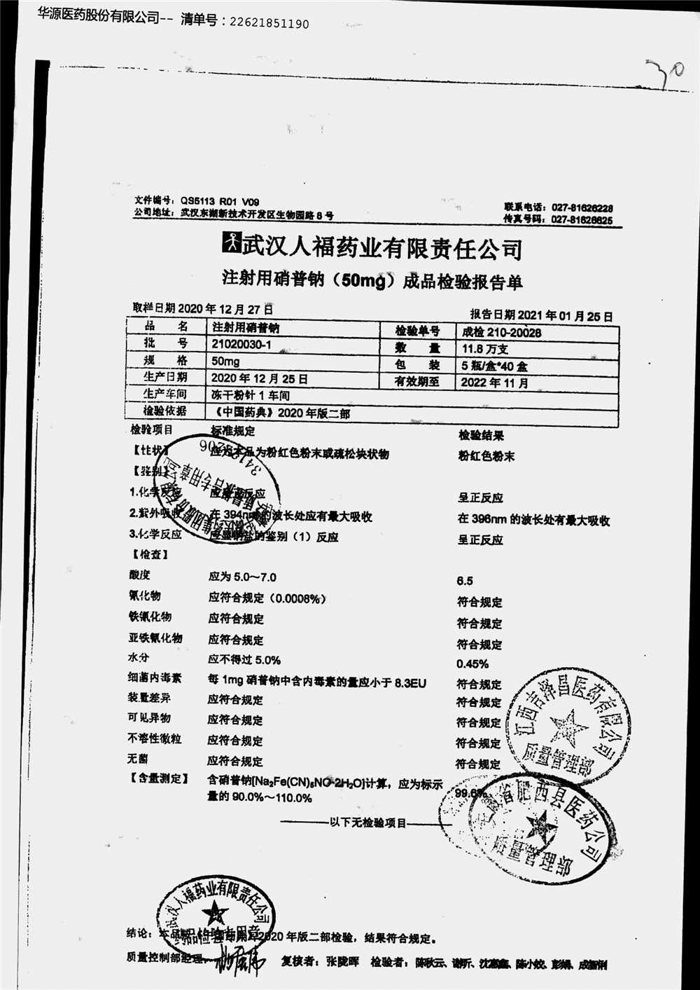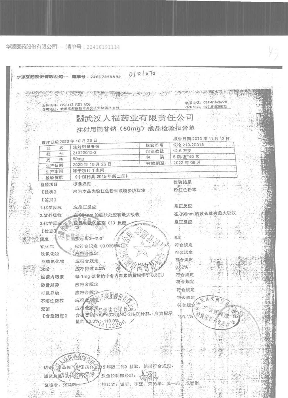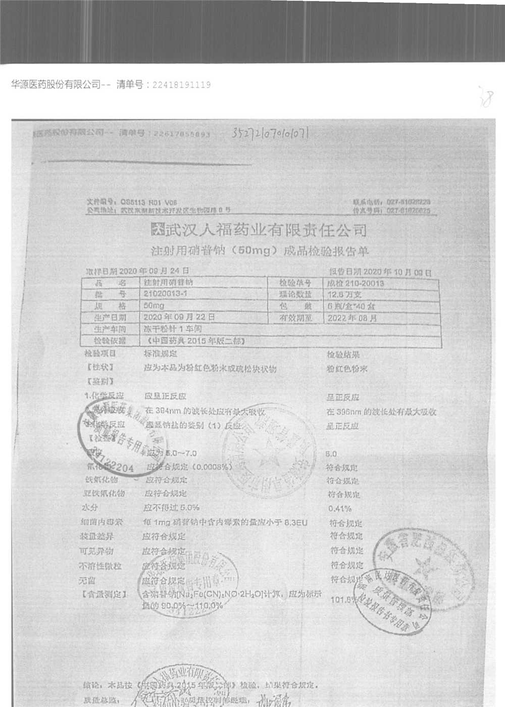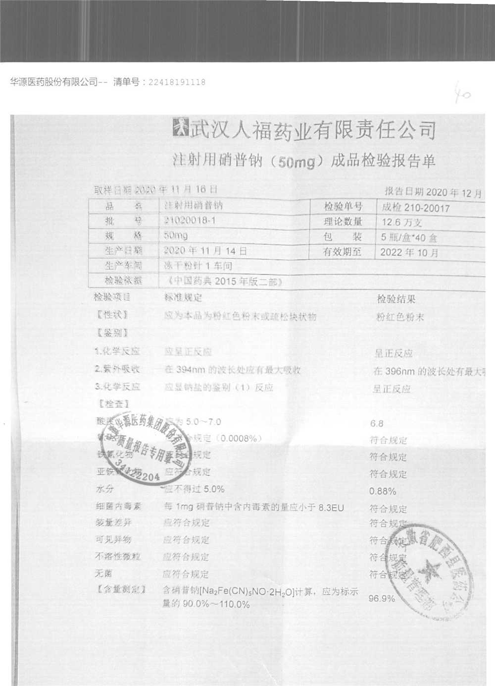 | 注射用硝普钠 | 50mg*5支 | 21020018-1 | 查看详情 |