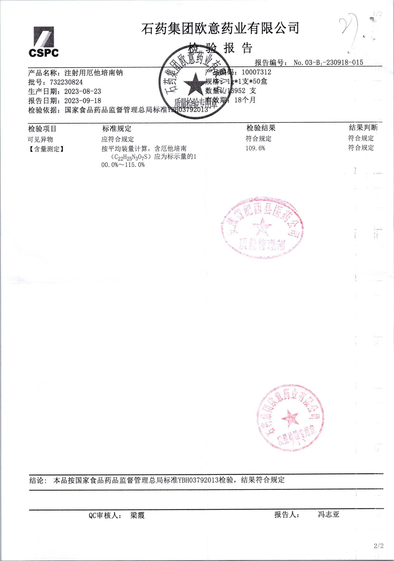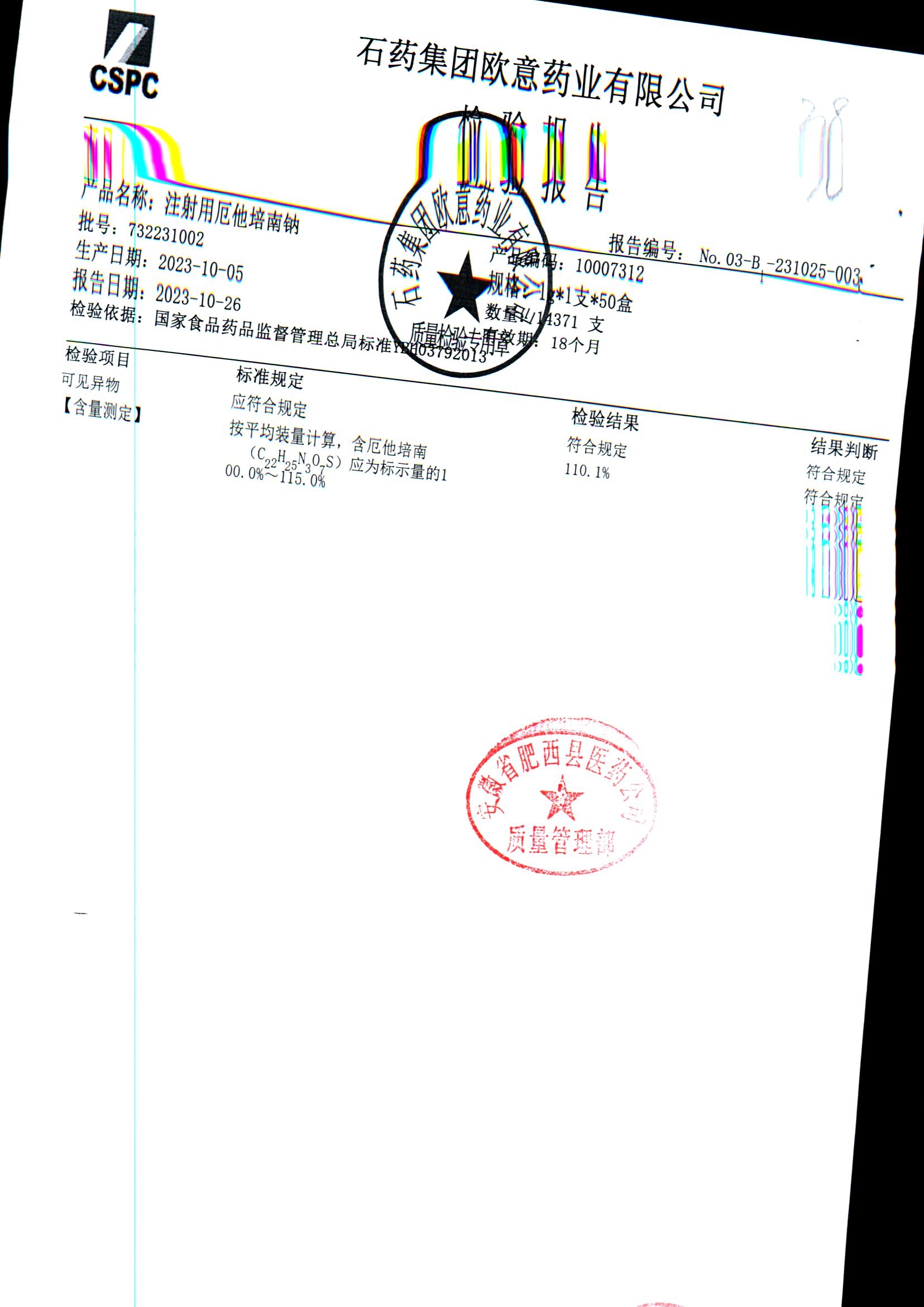 | 名称 | 规格 | 批号 | 药检报告 |