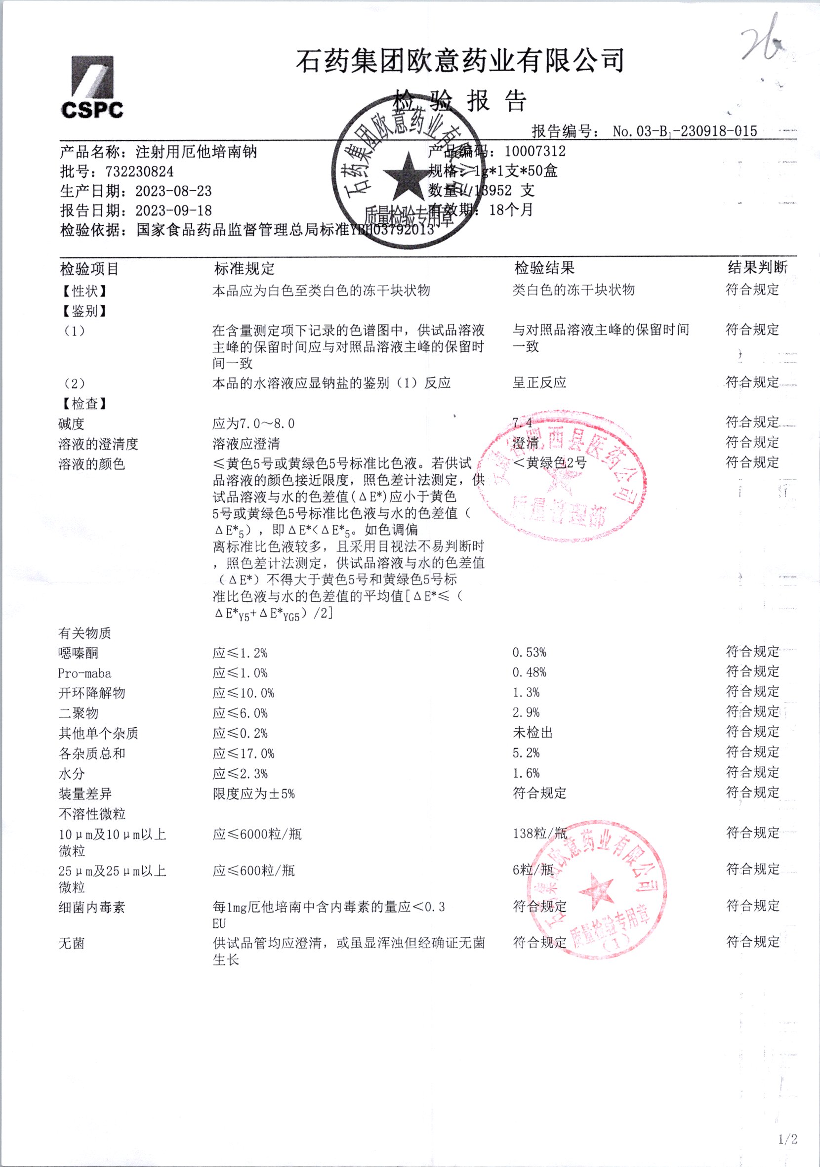 | 注射用厄他培南钠 | 1.0g(以厄他培南计)/瓶 | 732230821/1 | 查看详情 |