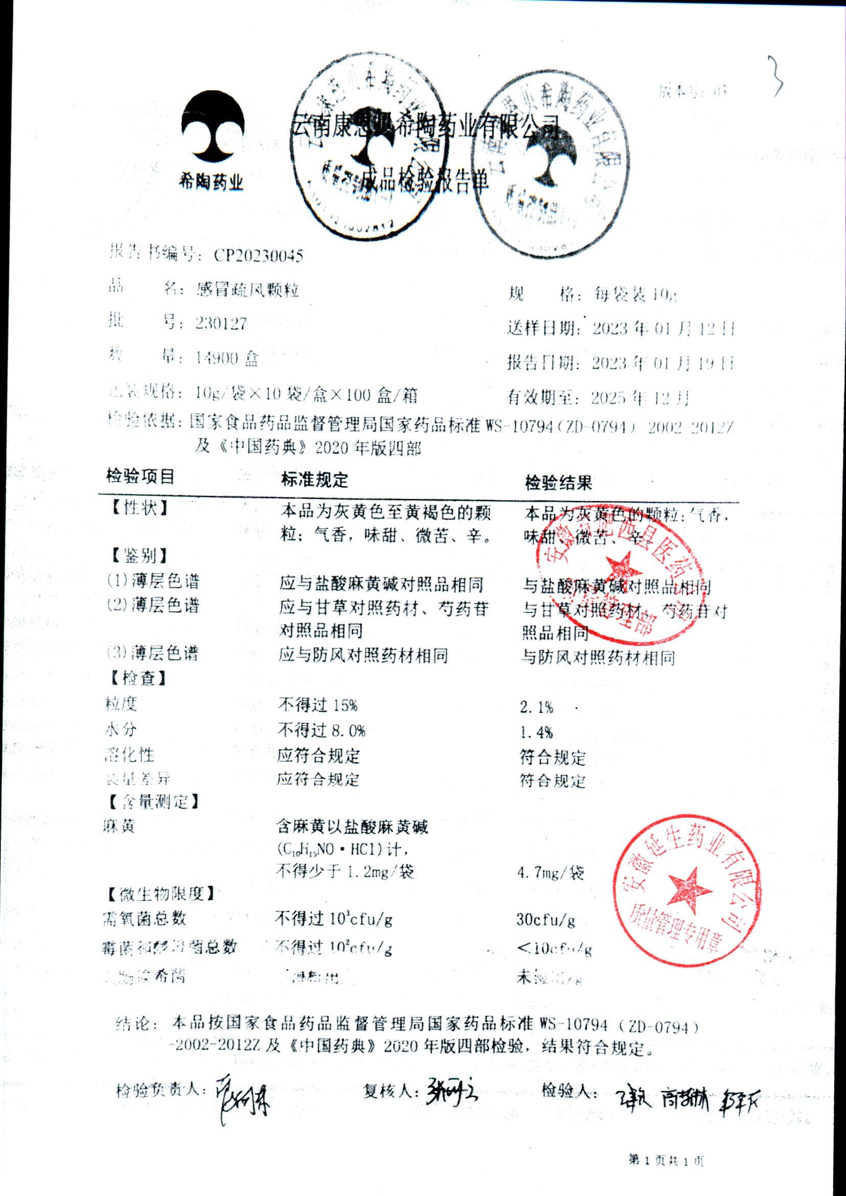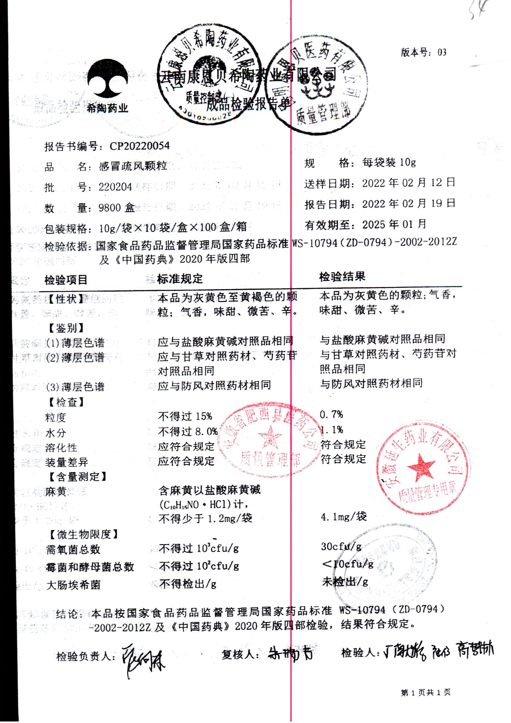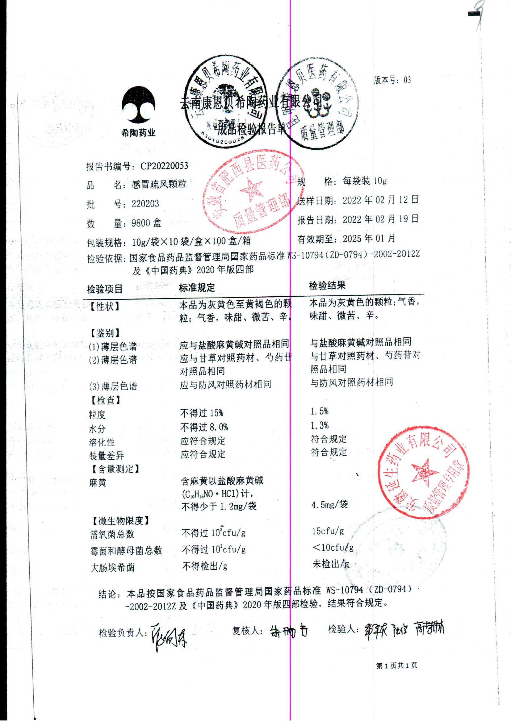 感冒疏风颗粒 | 10g*10袋 | 220204 | 查看详情 |