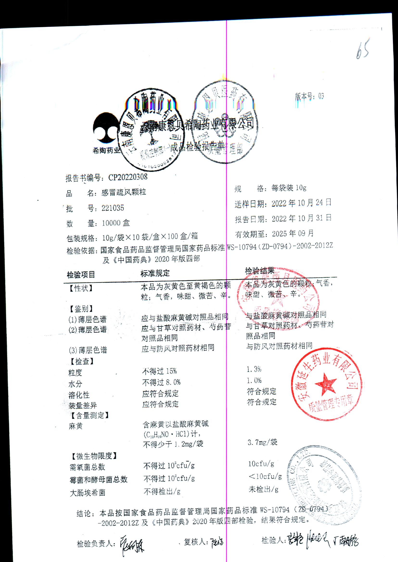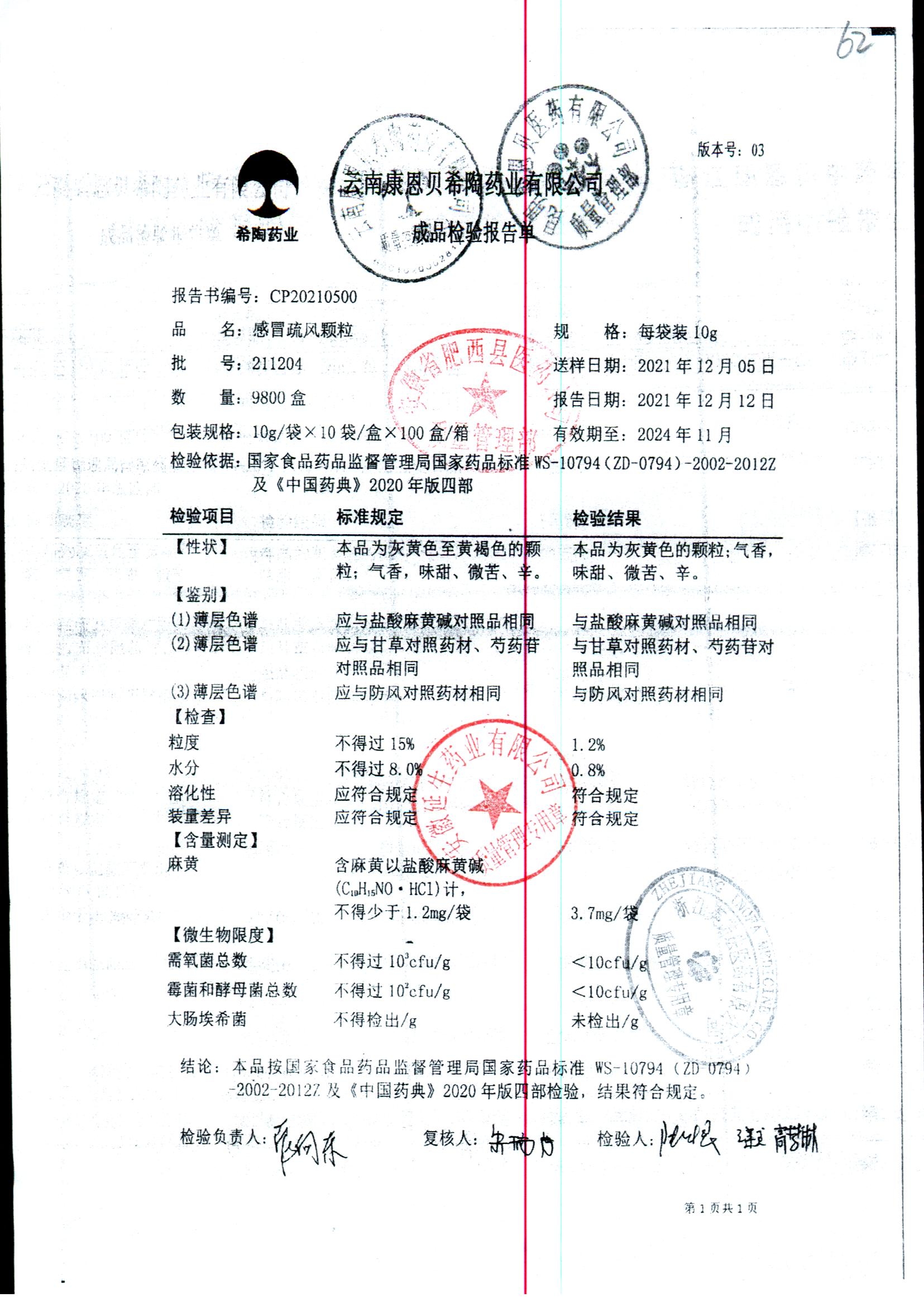 感冒疏风颗粒 | 10g*10袋 | 211204 | 查看详情 |