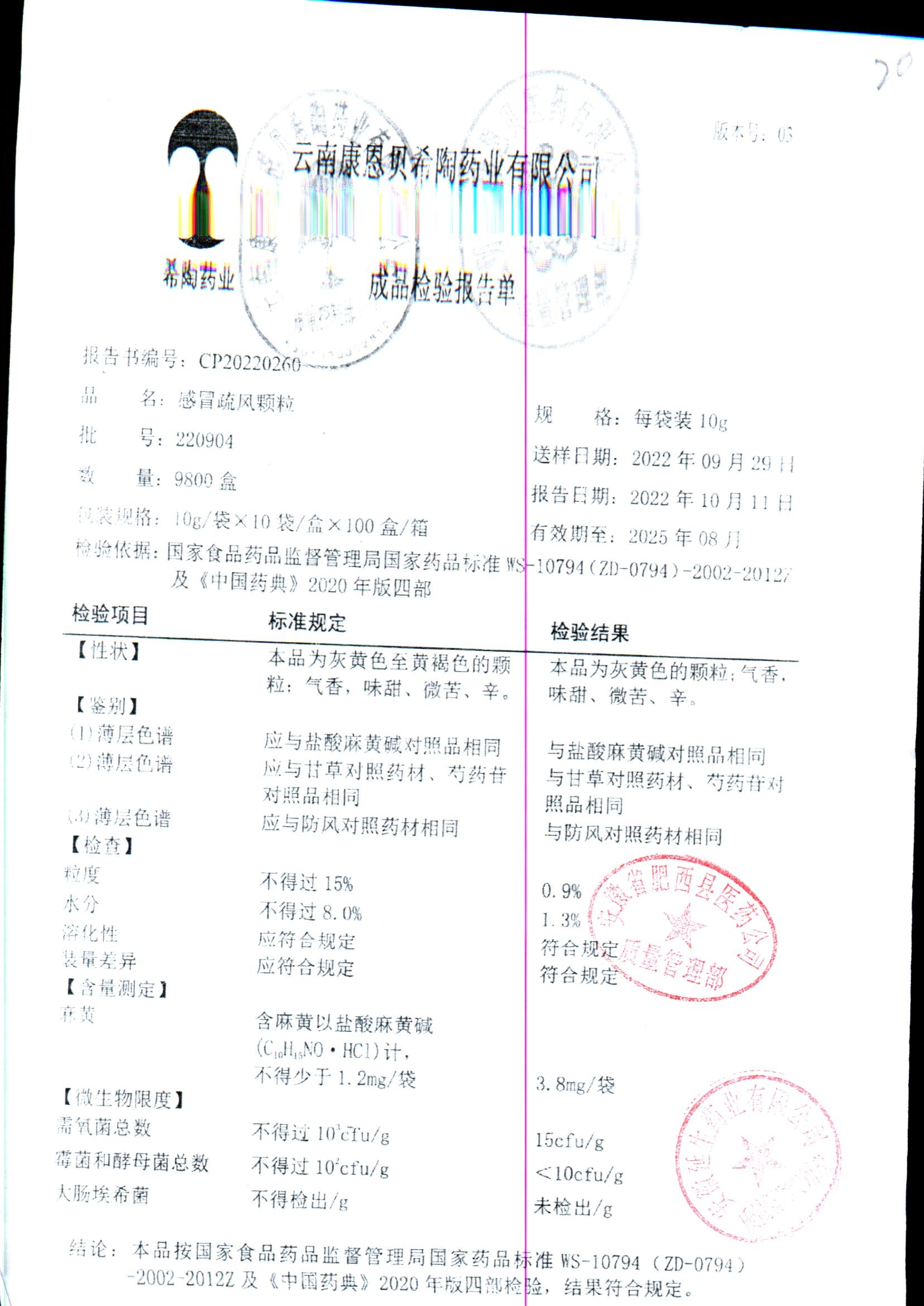 感冒疏风颗粒 | 10g*10袋 | 220904 | 查看详情 |